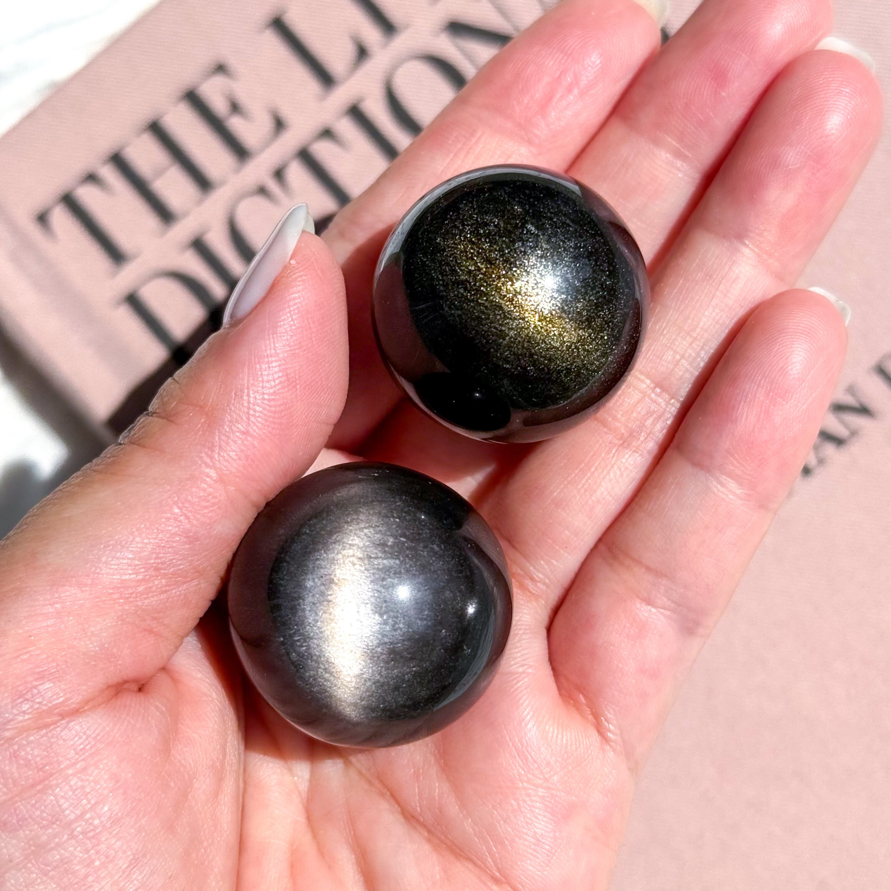 <SET> Gold & Silver Sheen Obsidian Sphere 2 ✧ オブジディアン