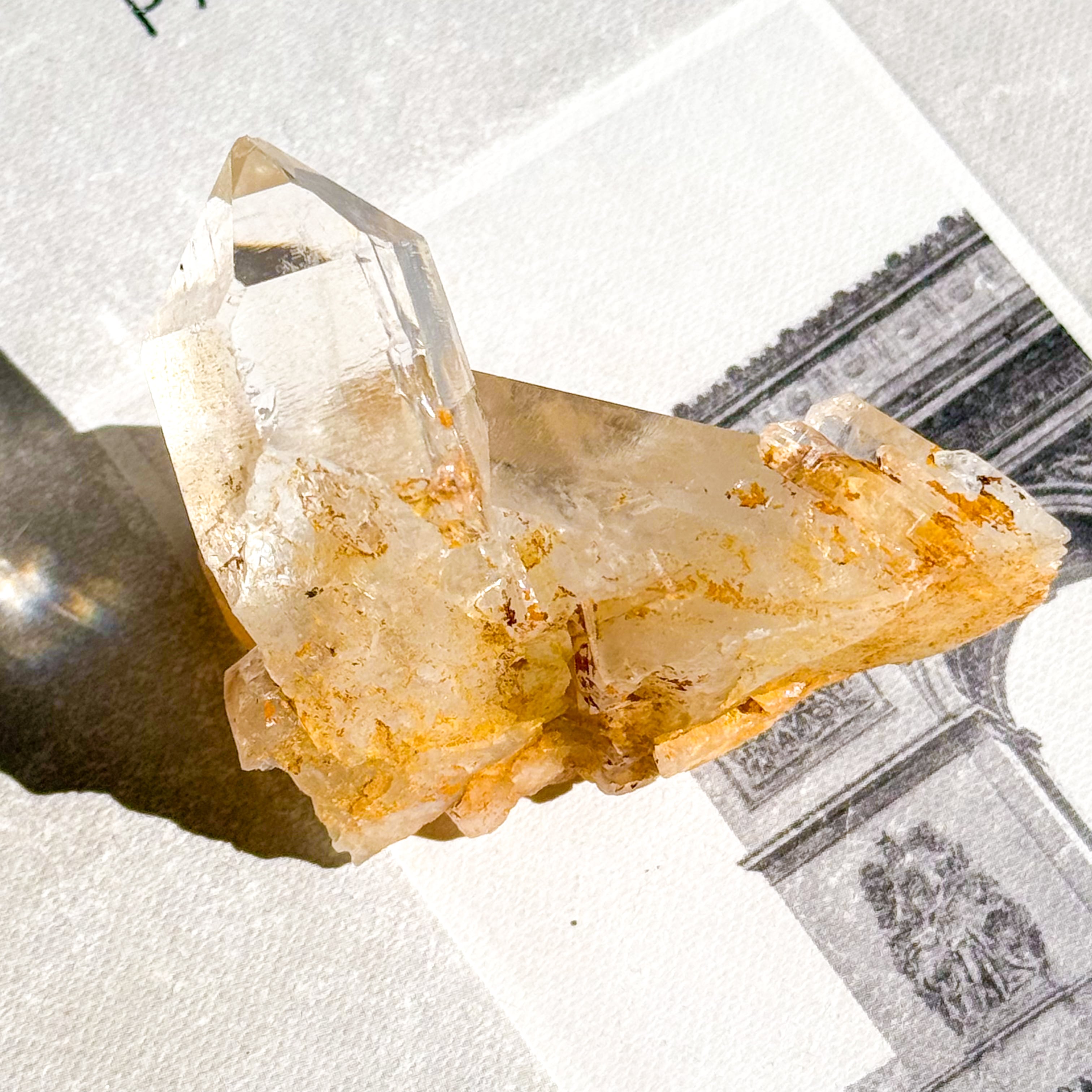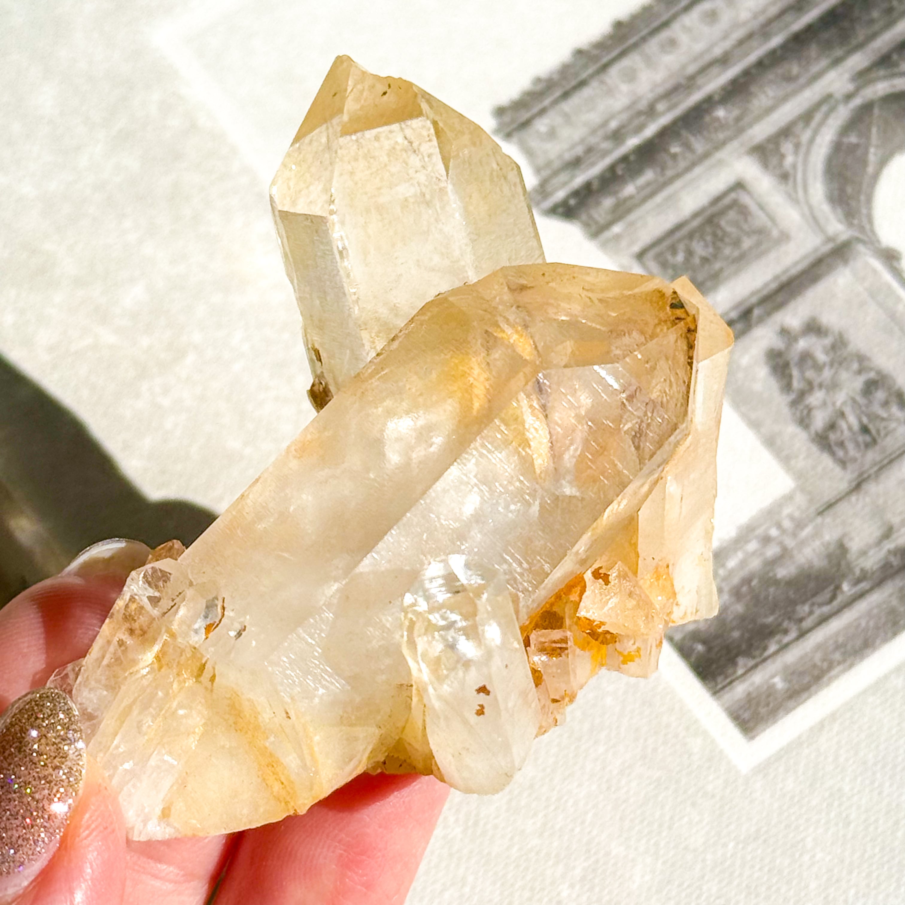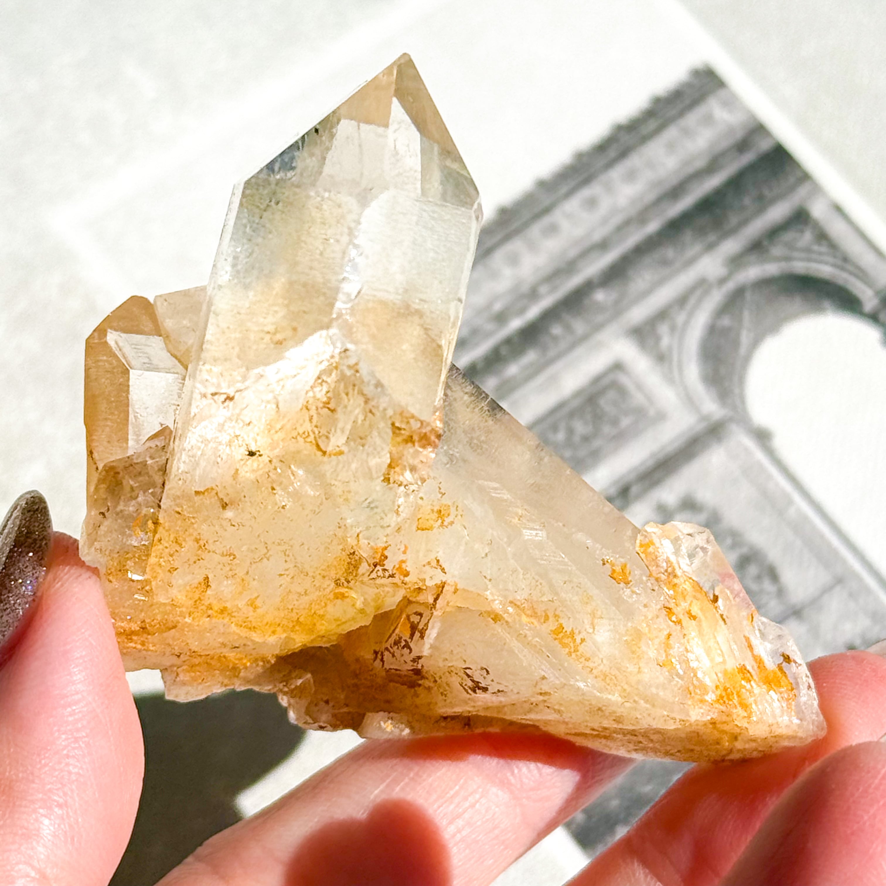 鉄分などの成分が薄く水晶の表面を覆うことで、金色や黄色に見える水晶です。