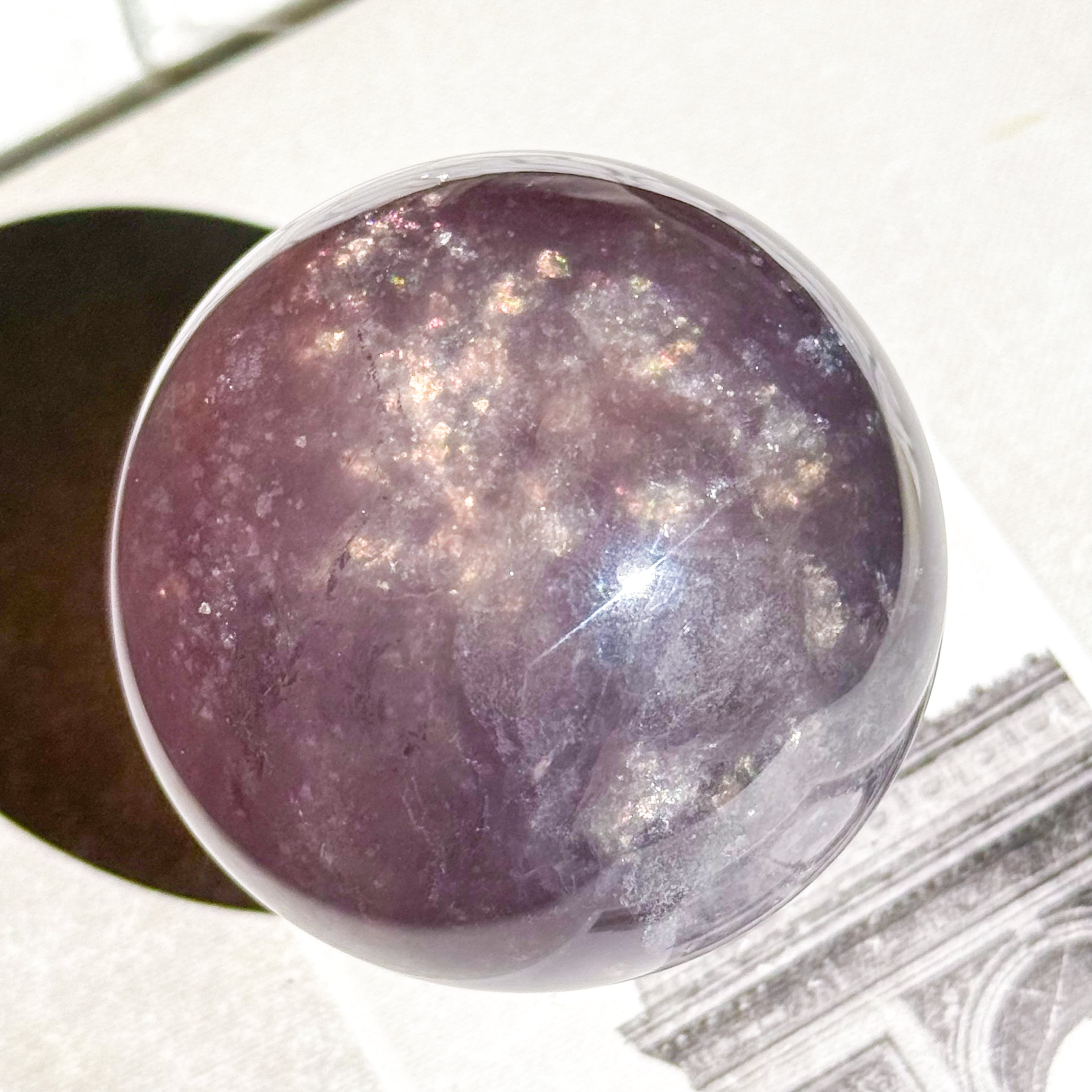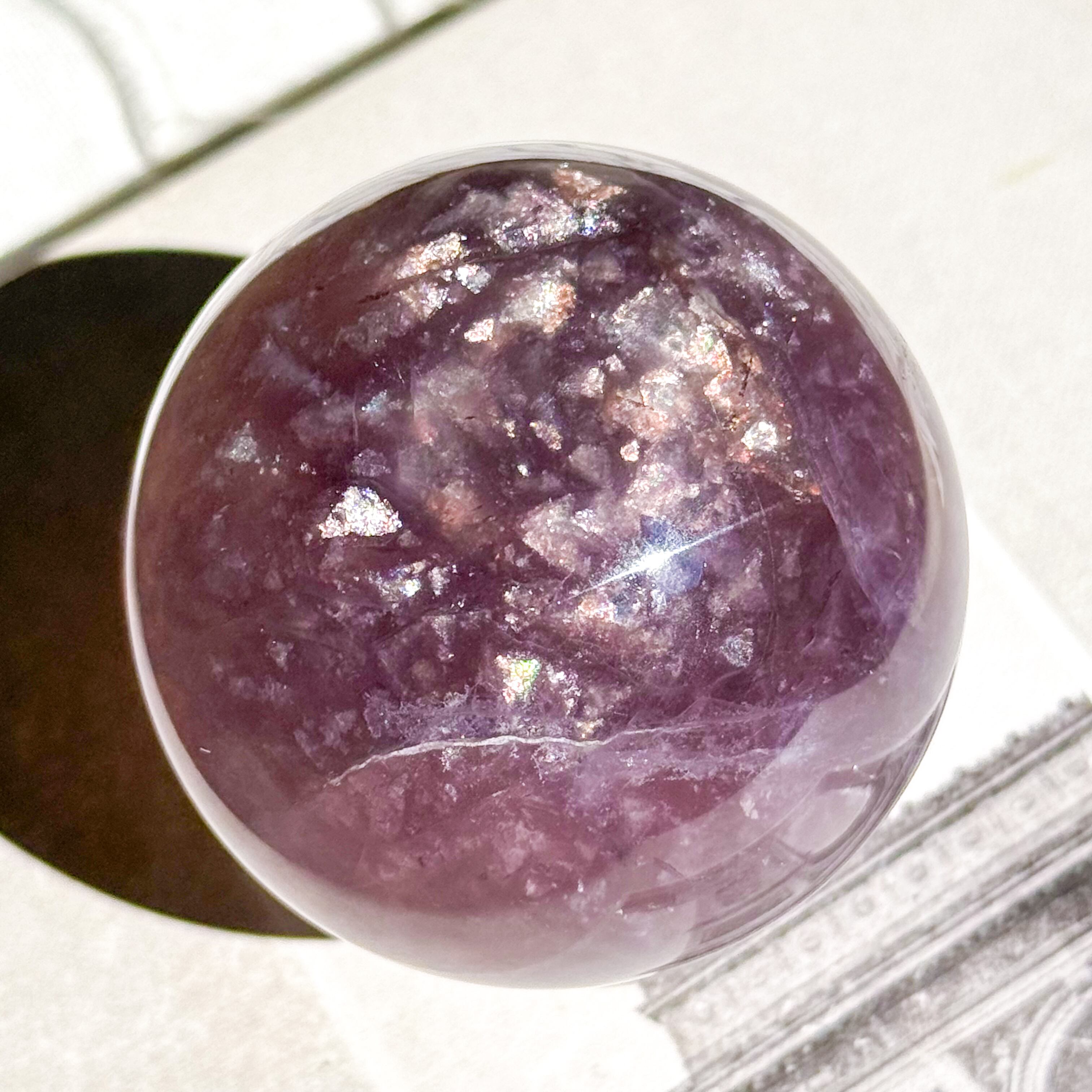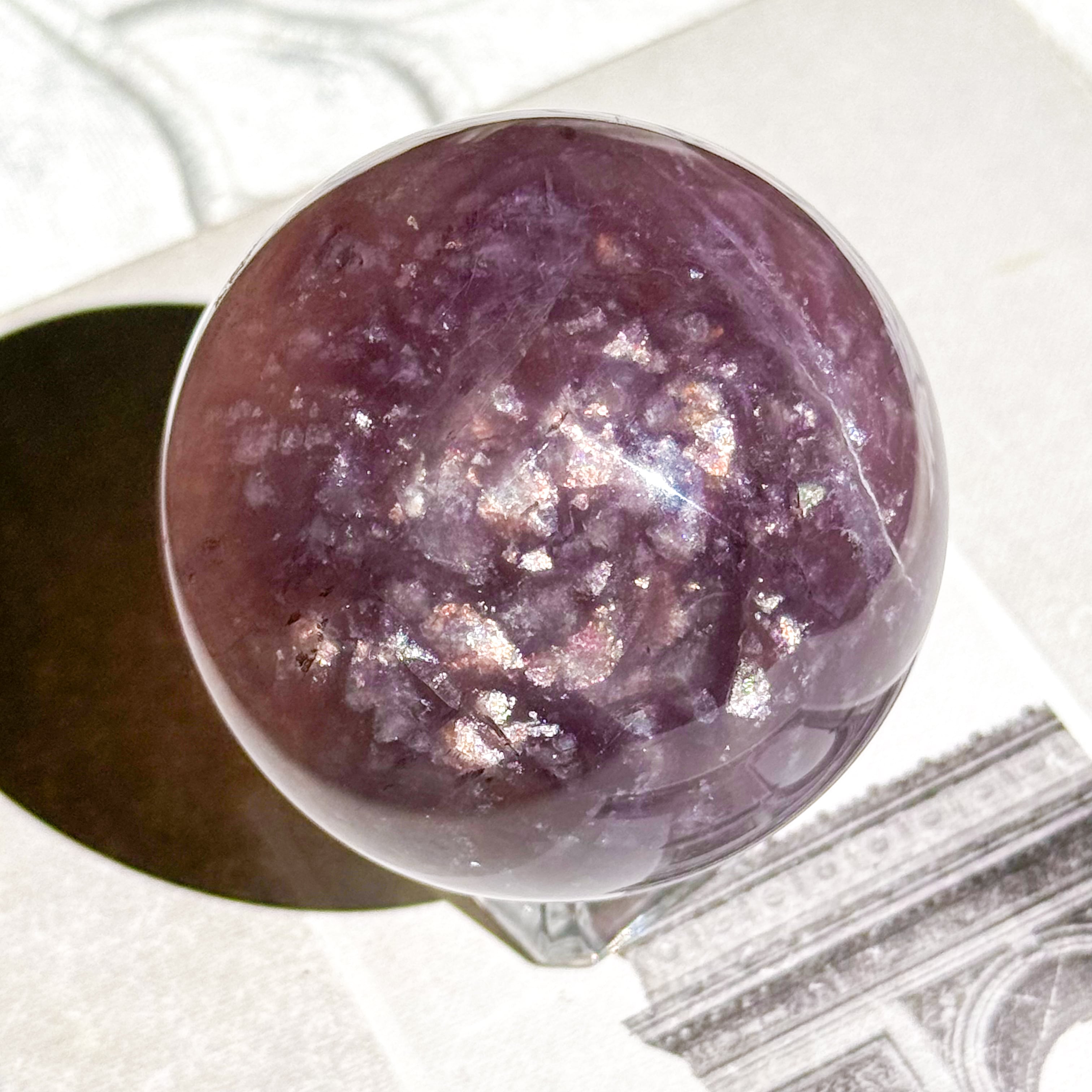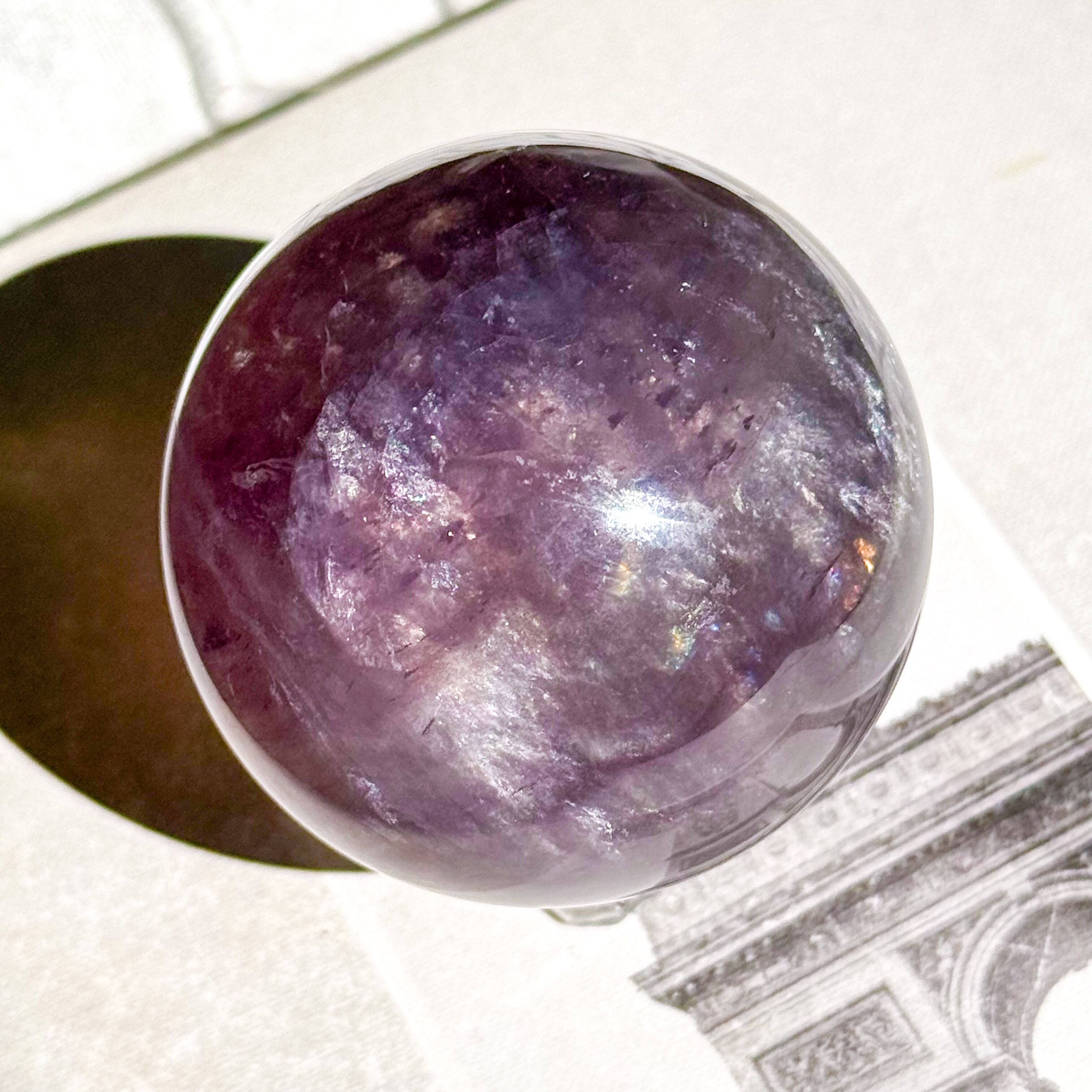 マイカ入りパープルのフローライトスフィア。