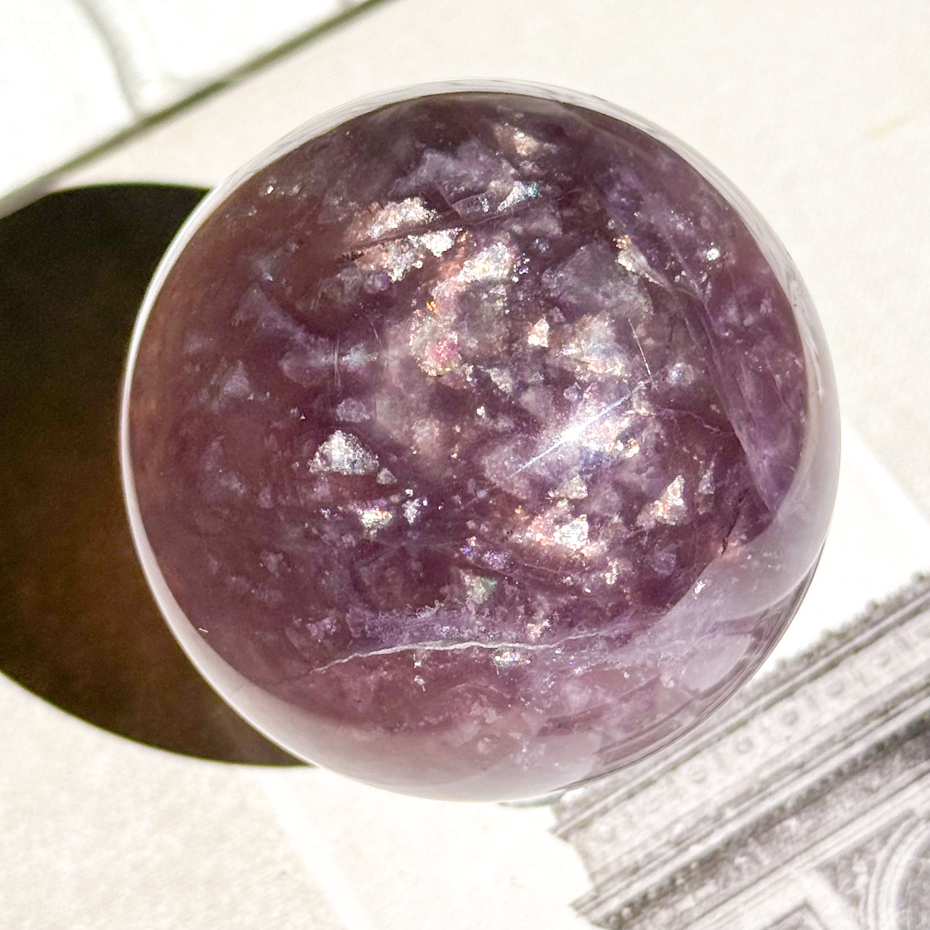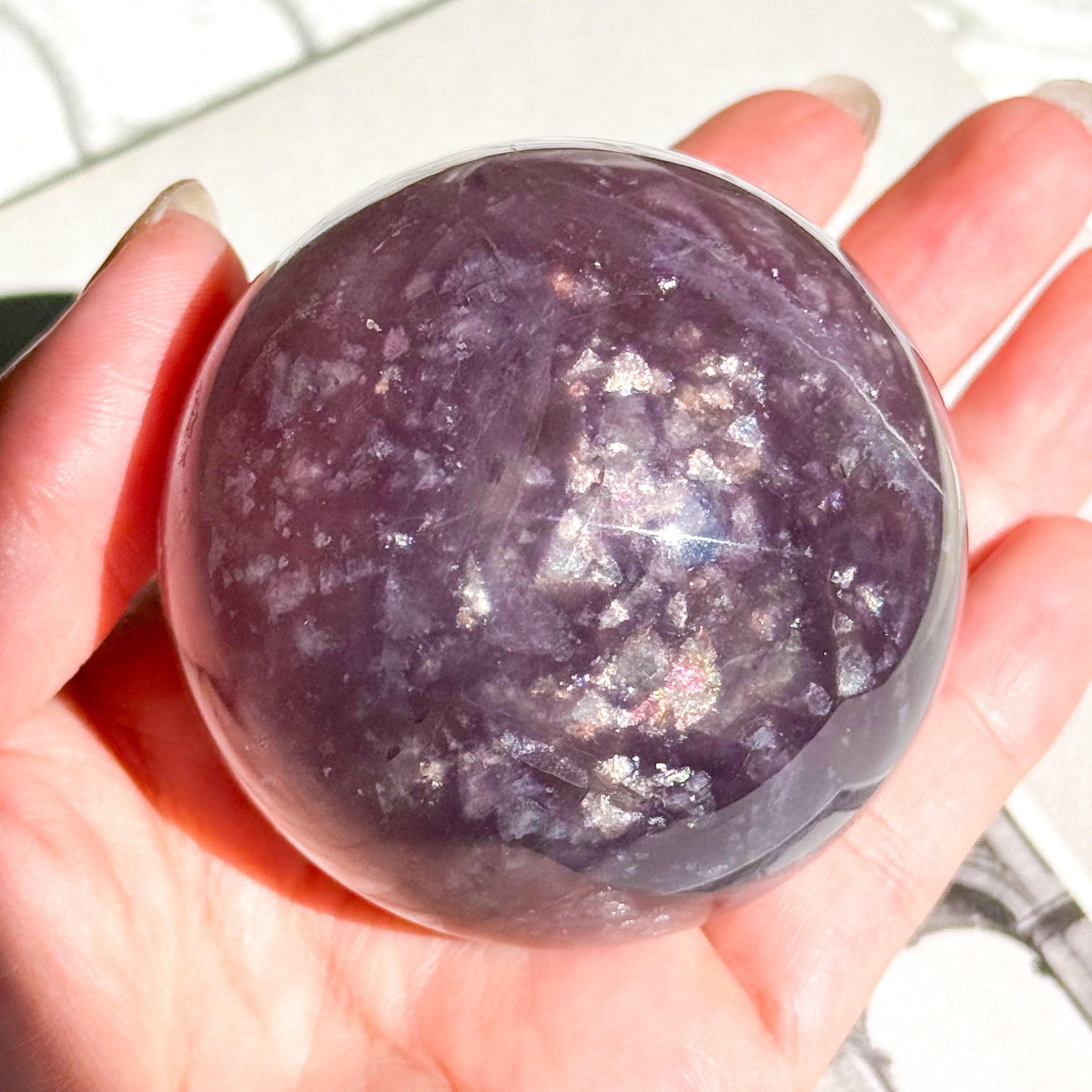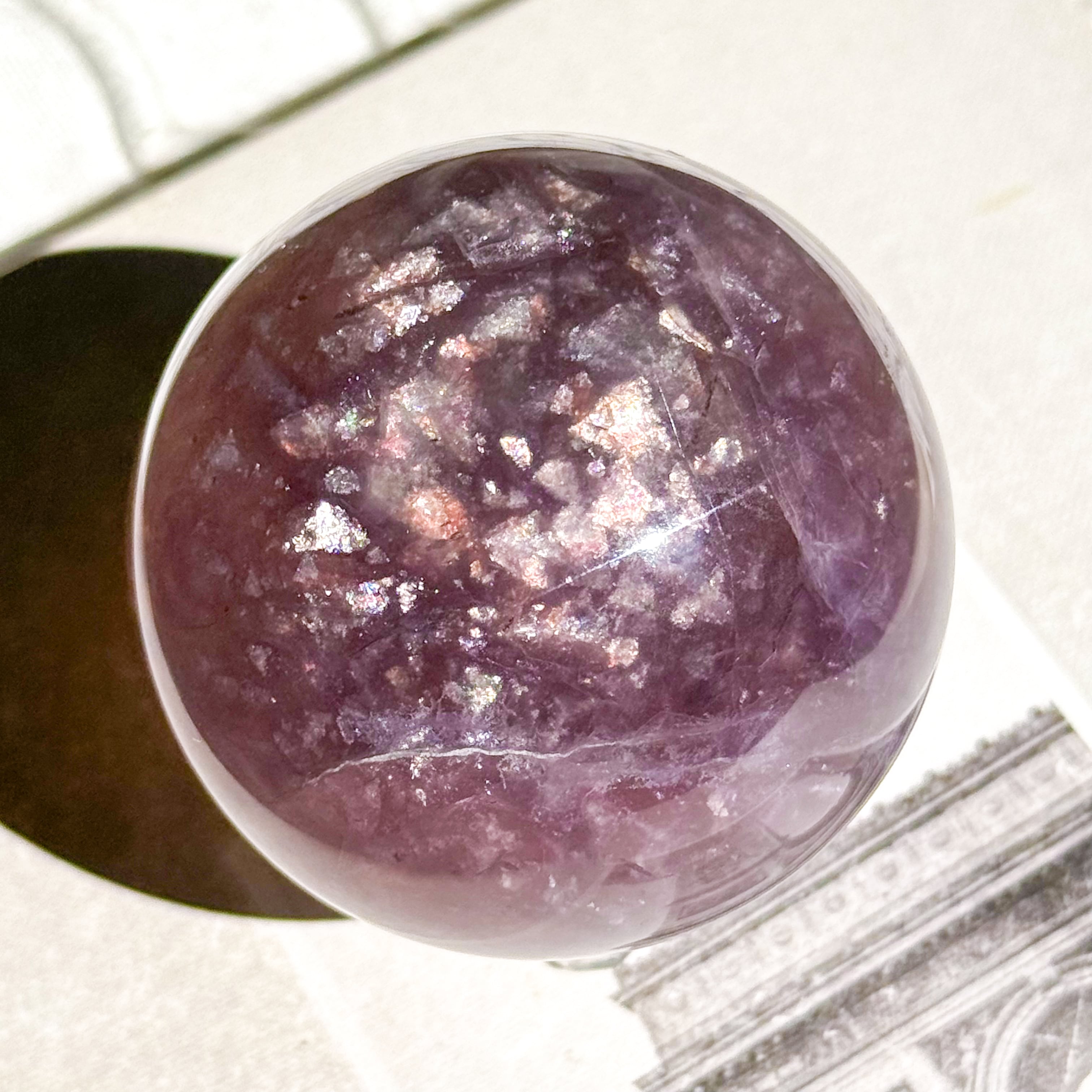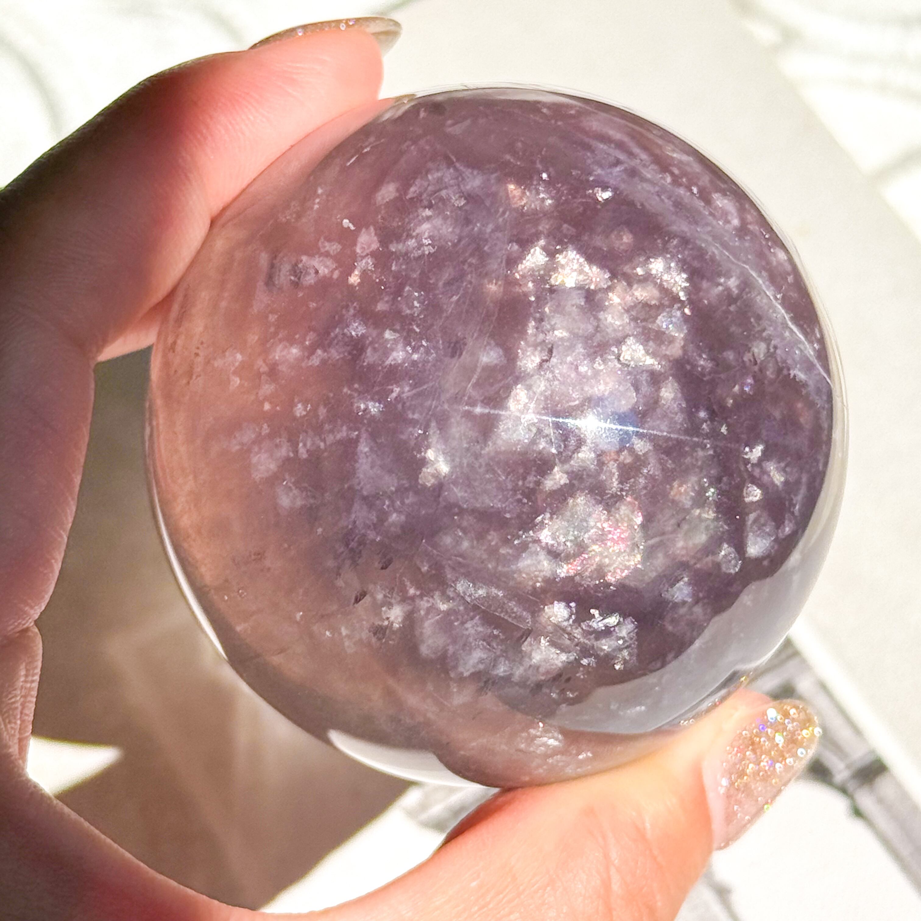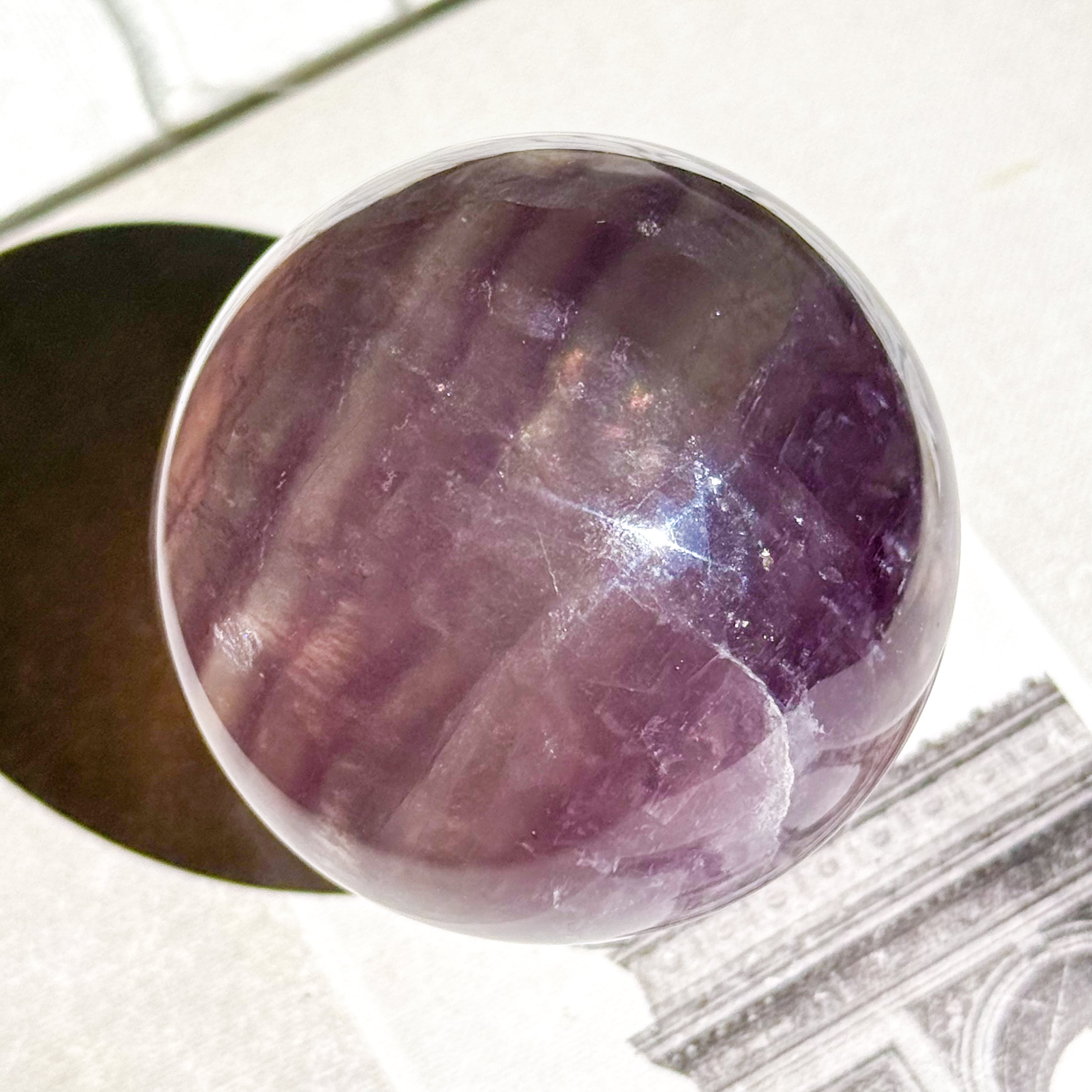 マイカ入りパープルのフローライトスフィア。