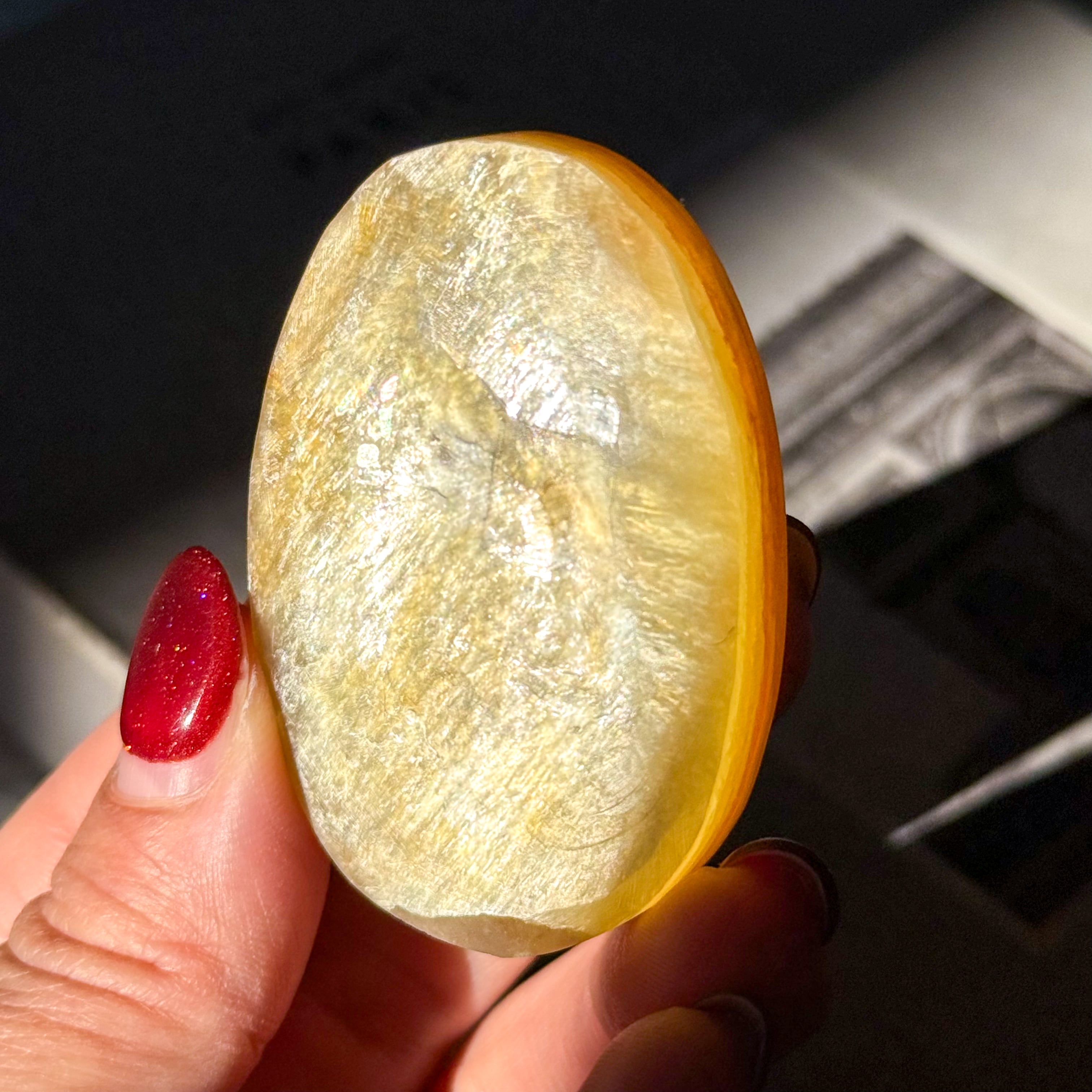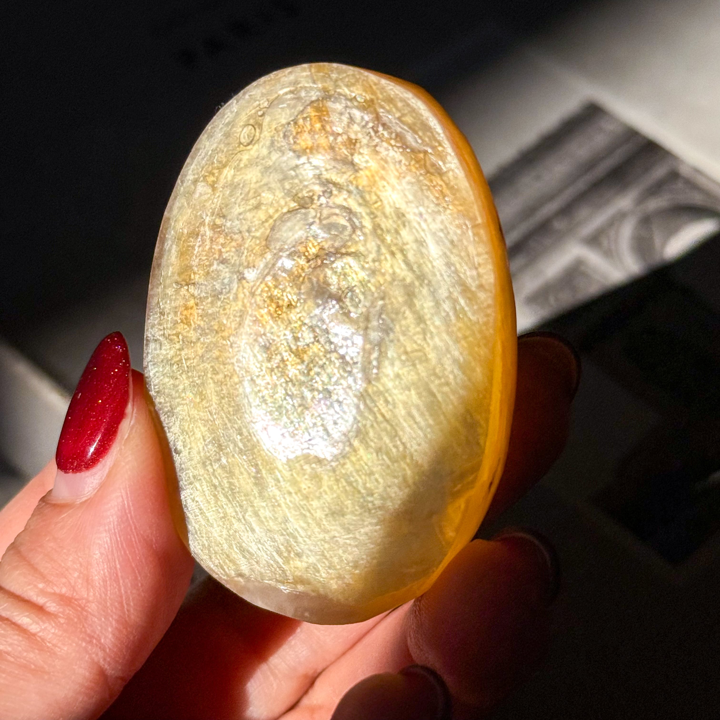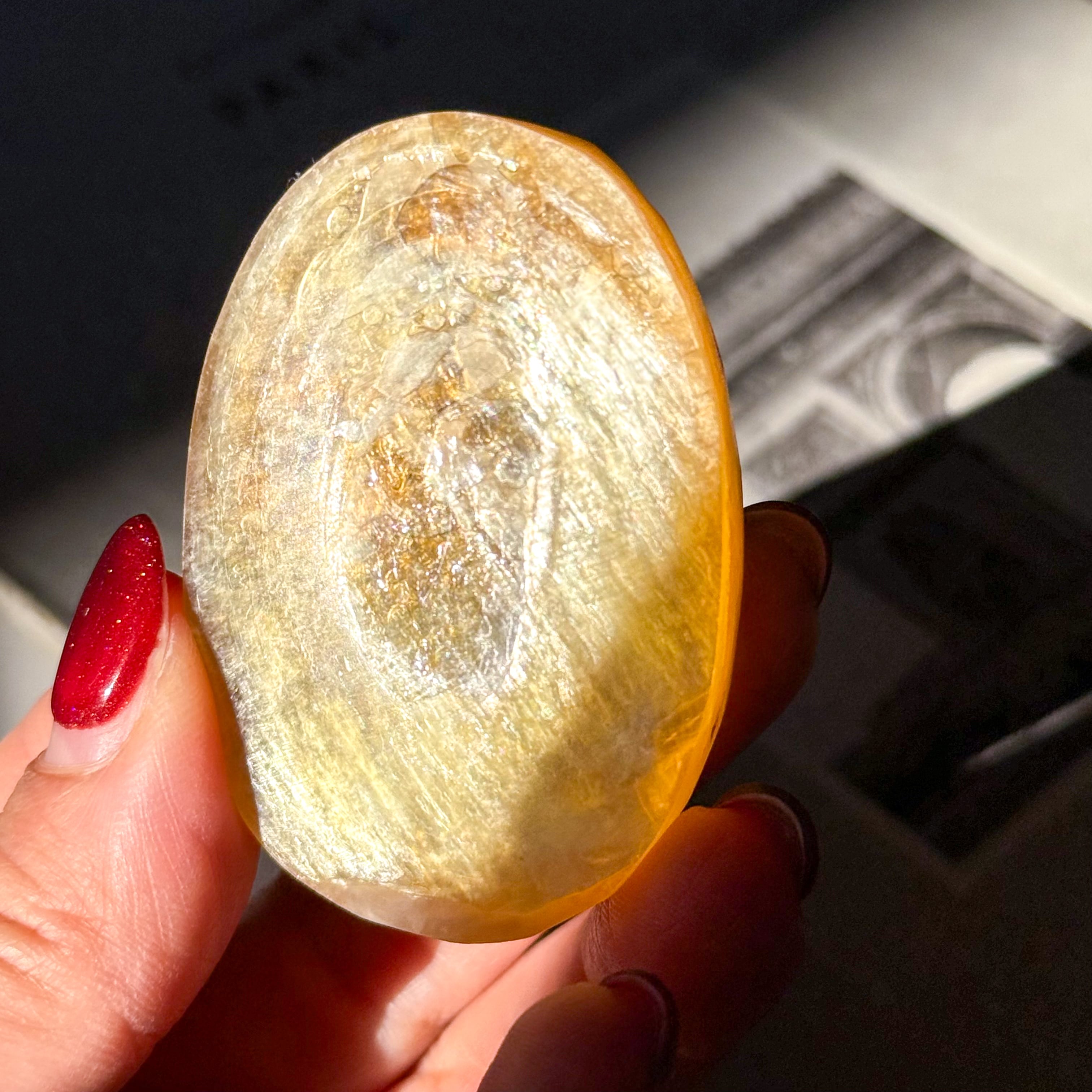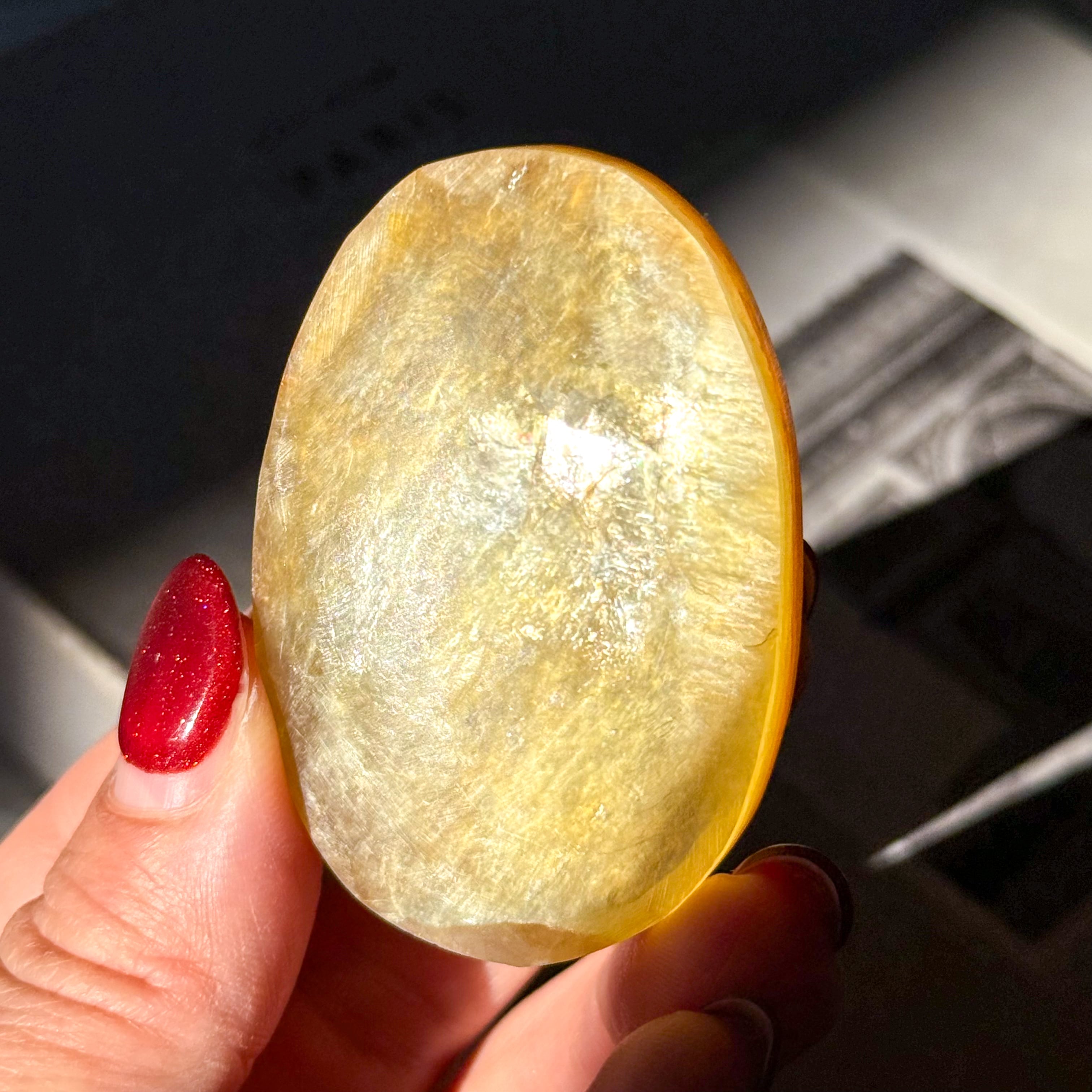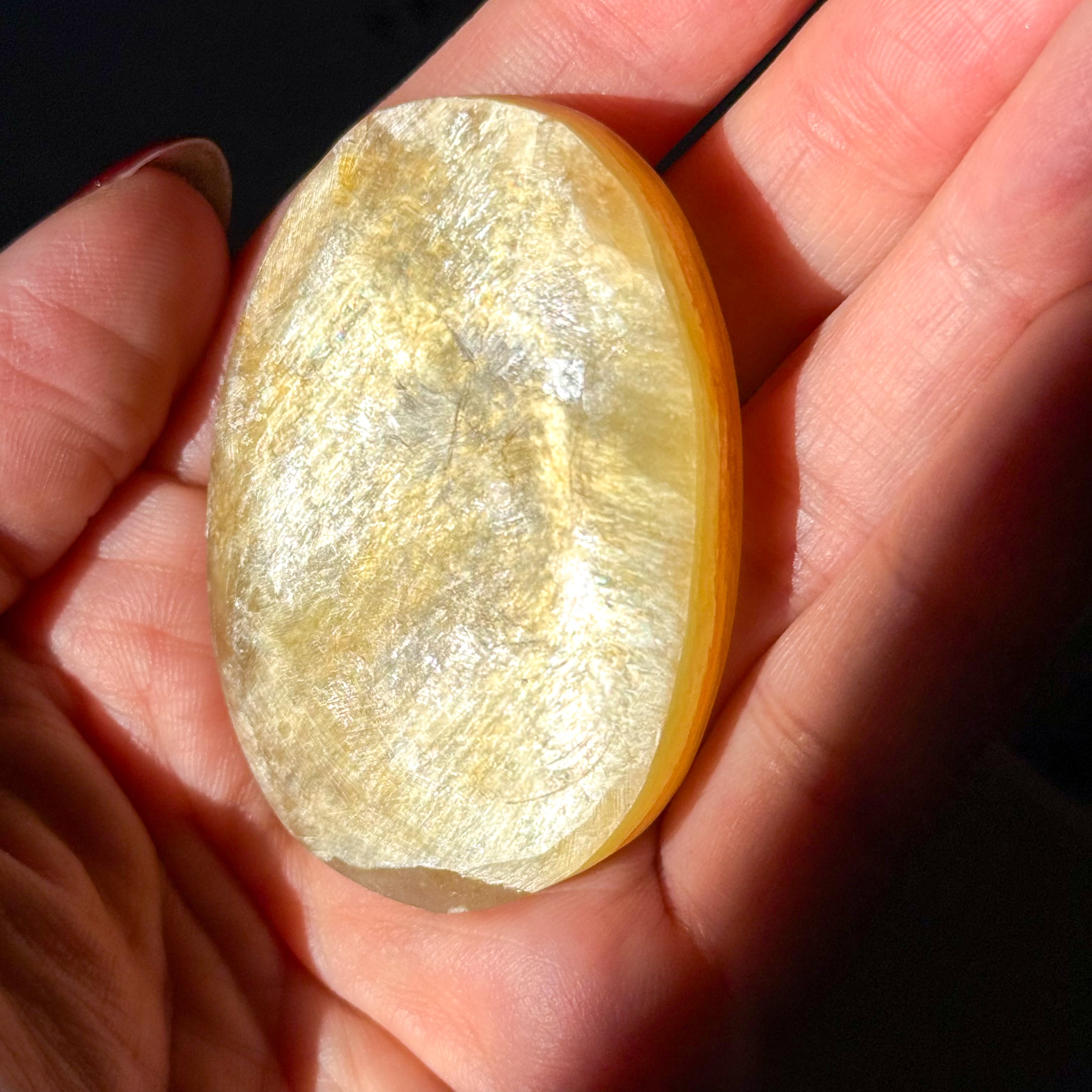 ゴールドマイカ。めずらしいマイカ(雲母)のパームストーンタイプが入荷しました。