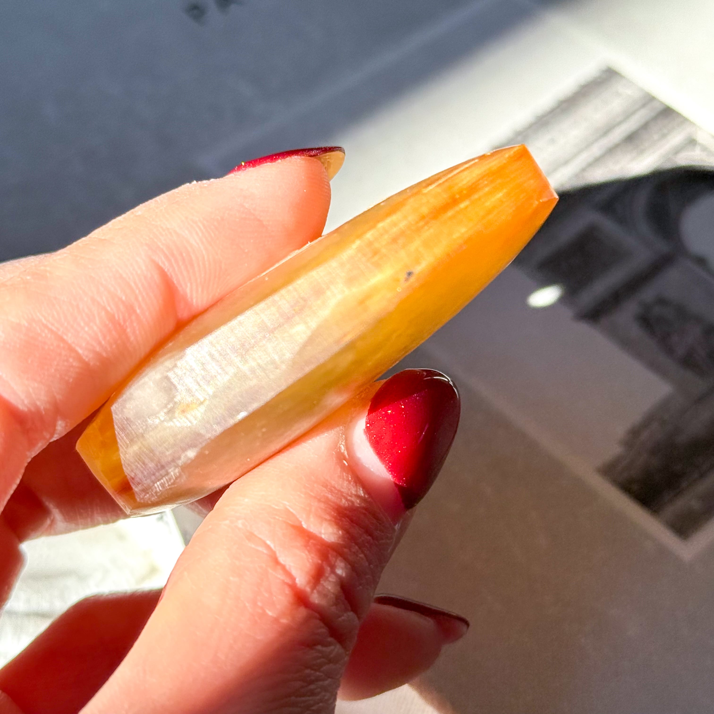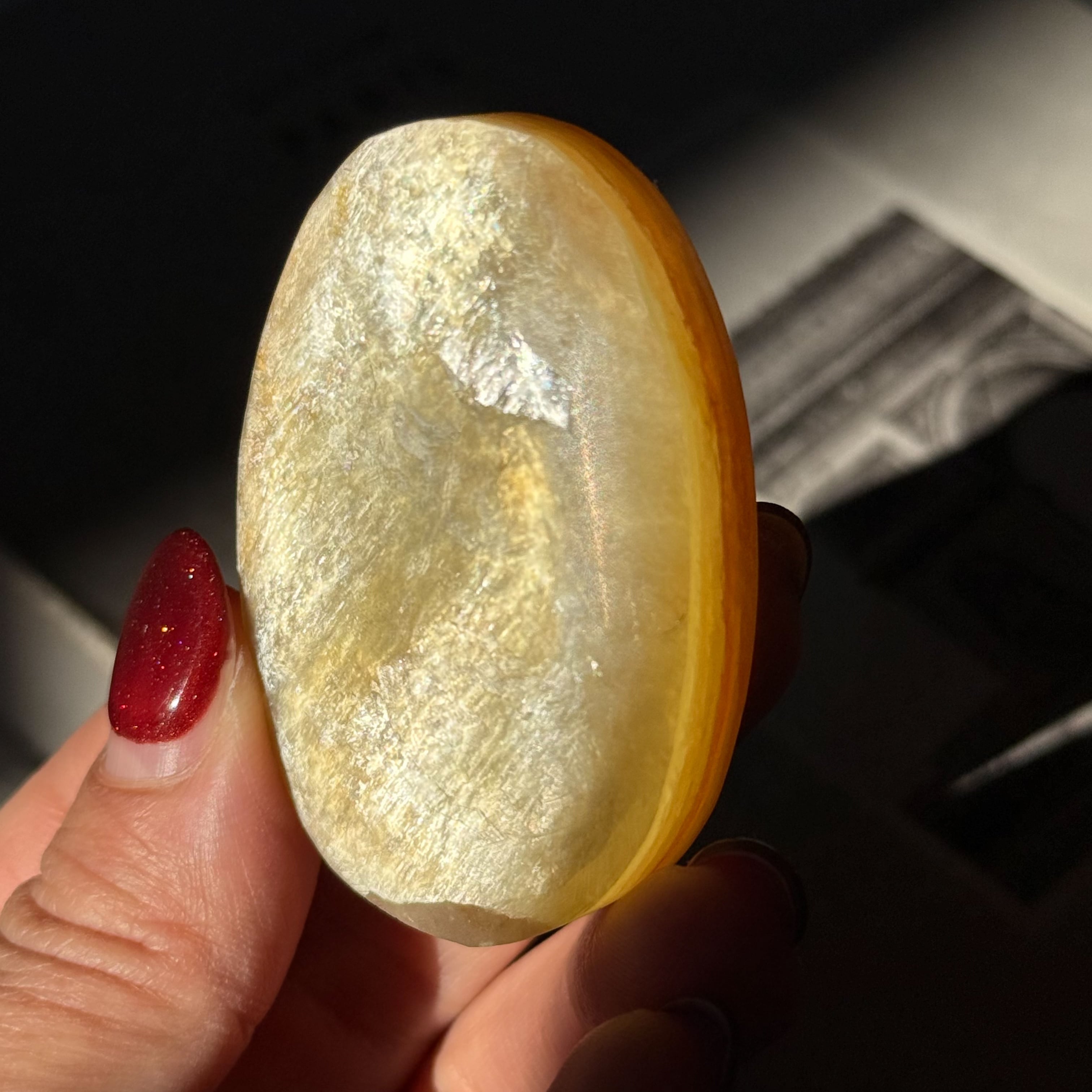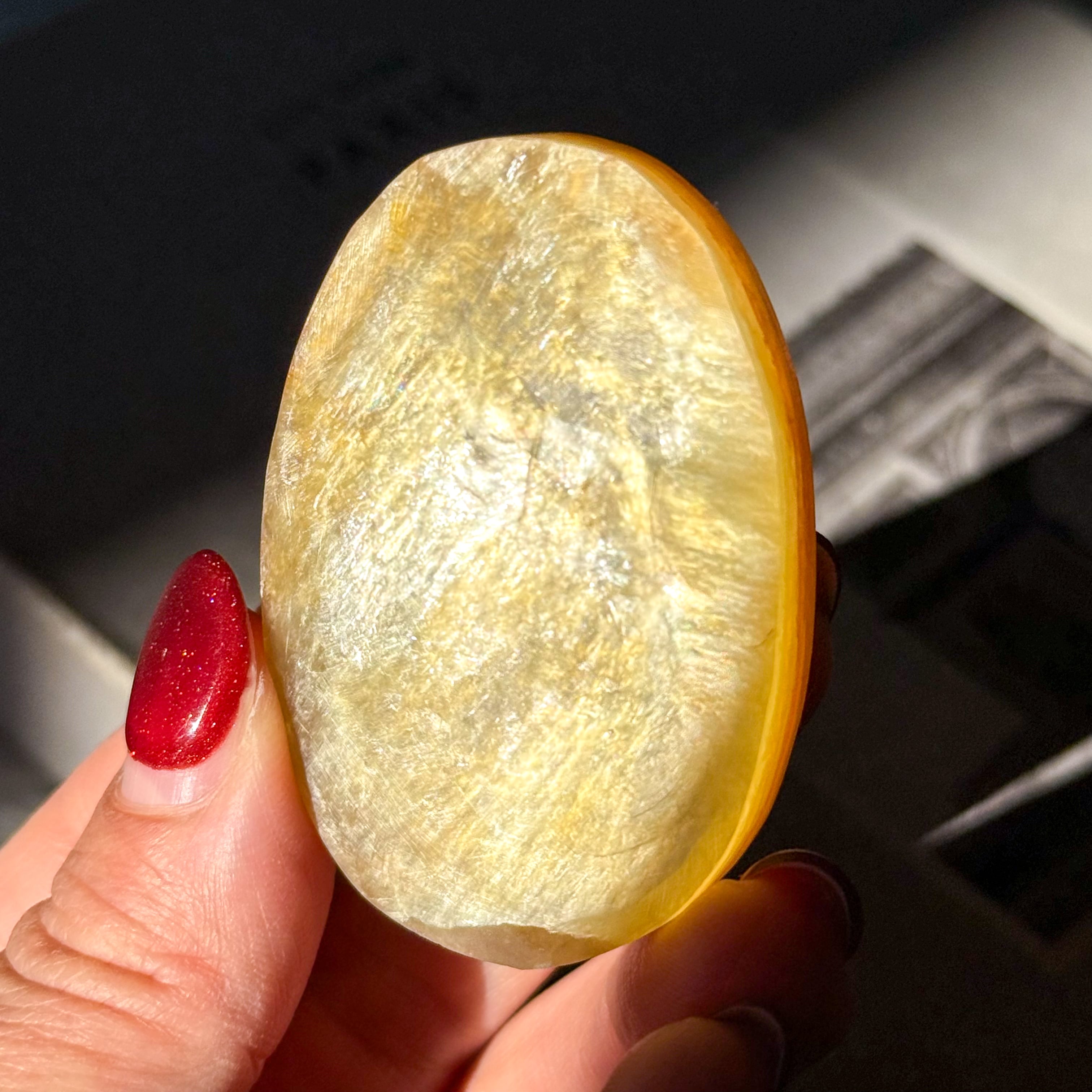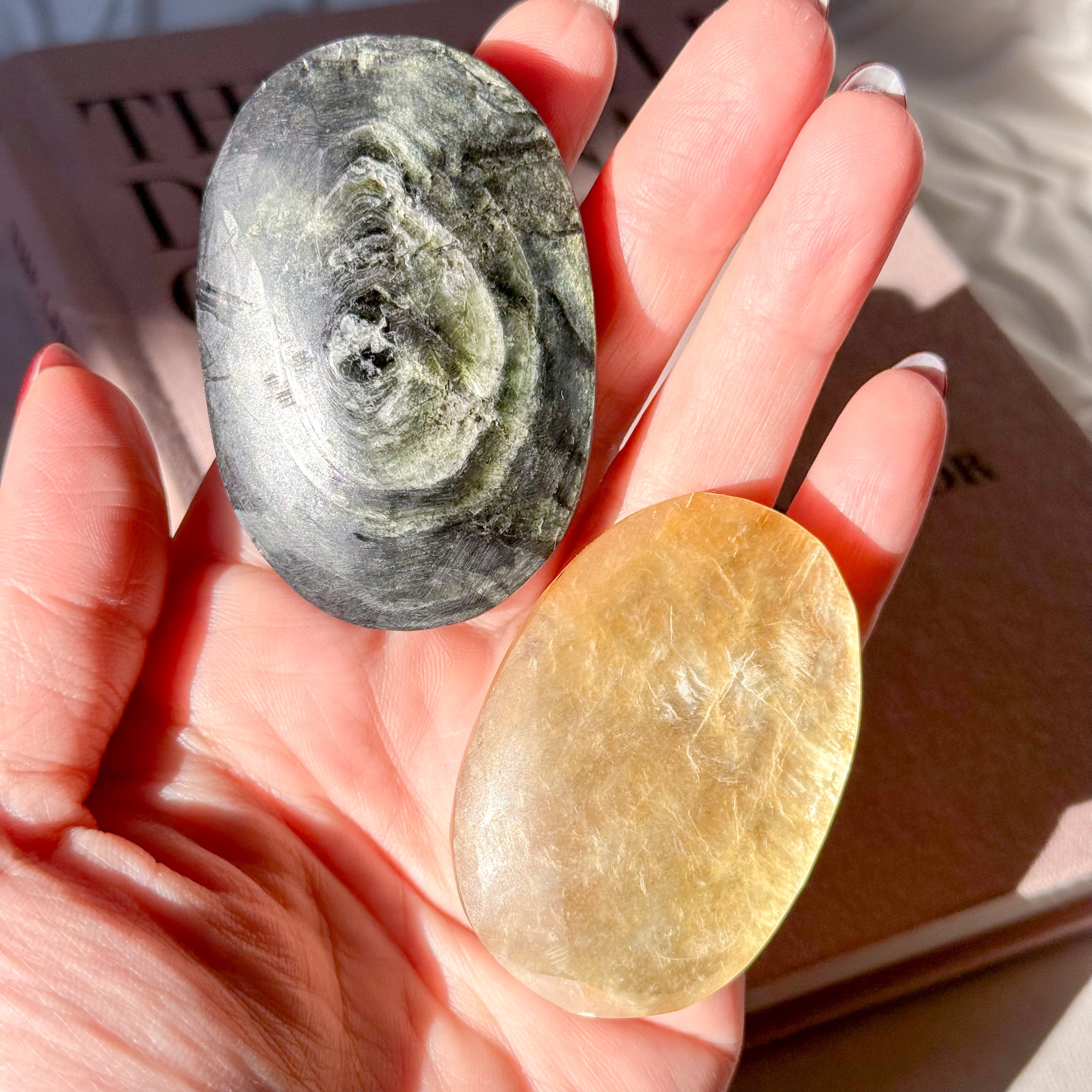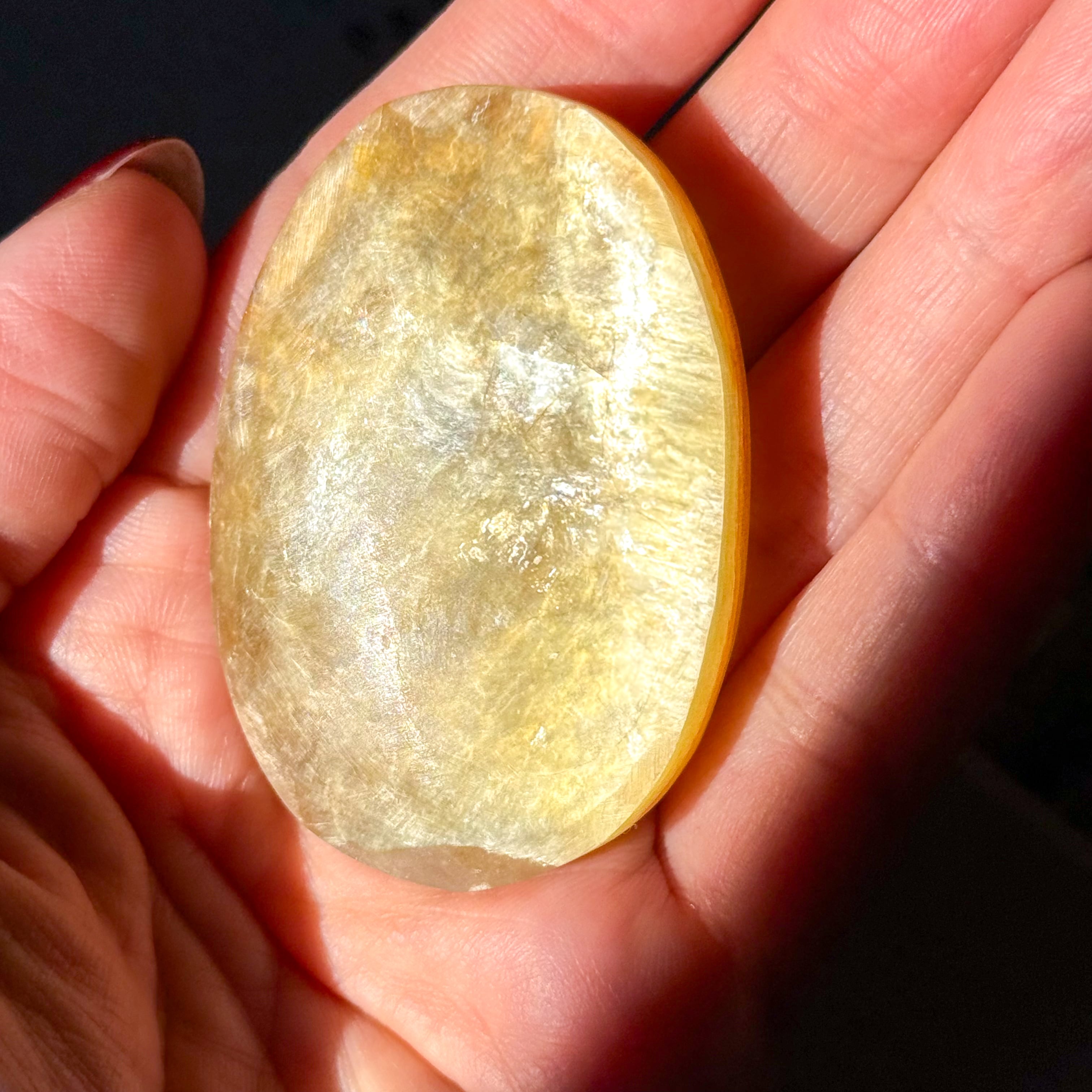 ゴールドマイカ。めずらしいマイカ(雲母)のパームストーンタイプが入荷しました。