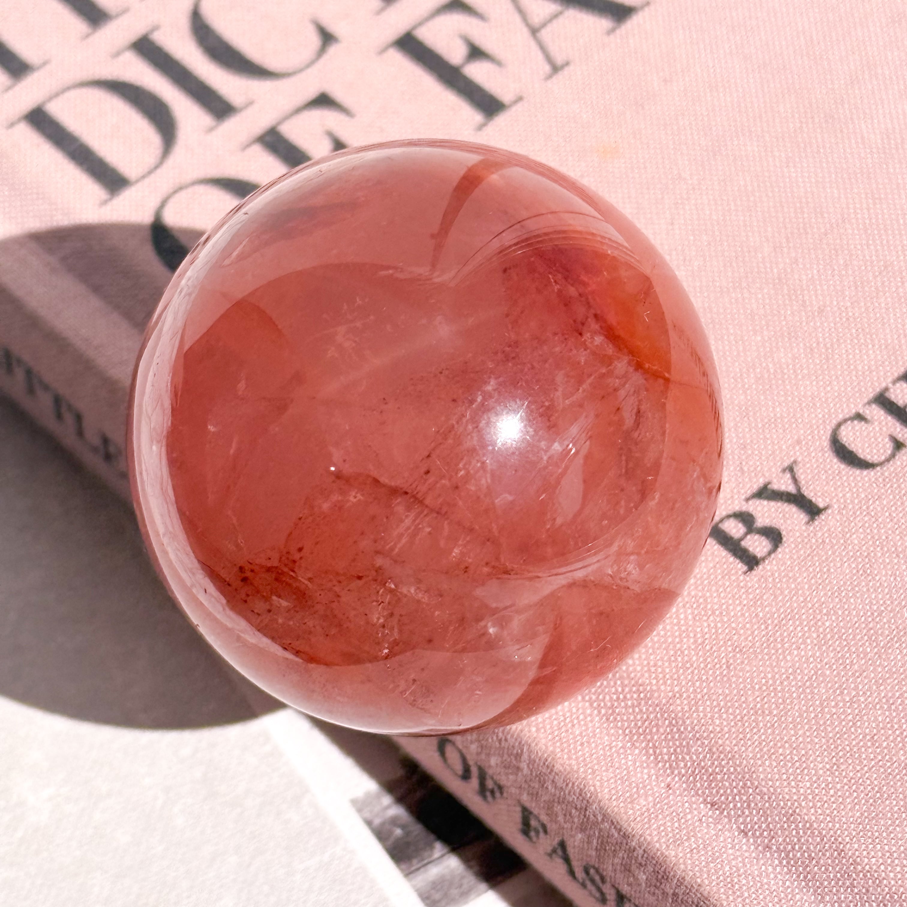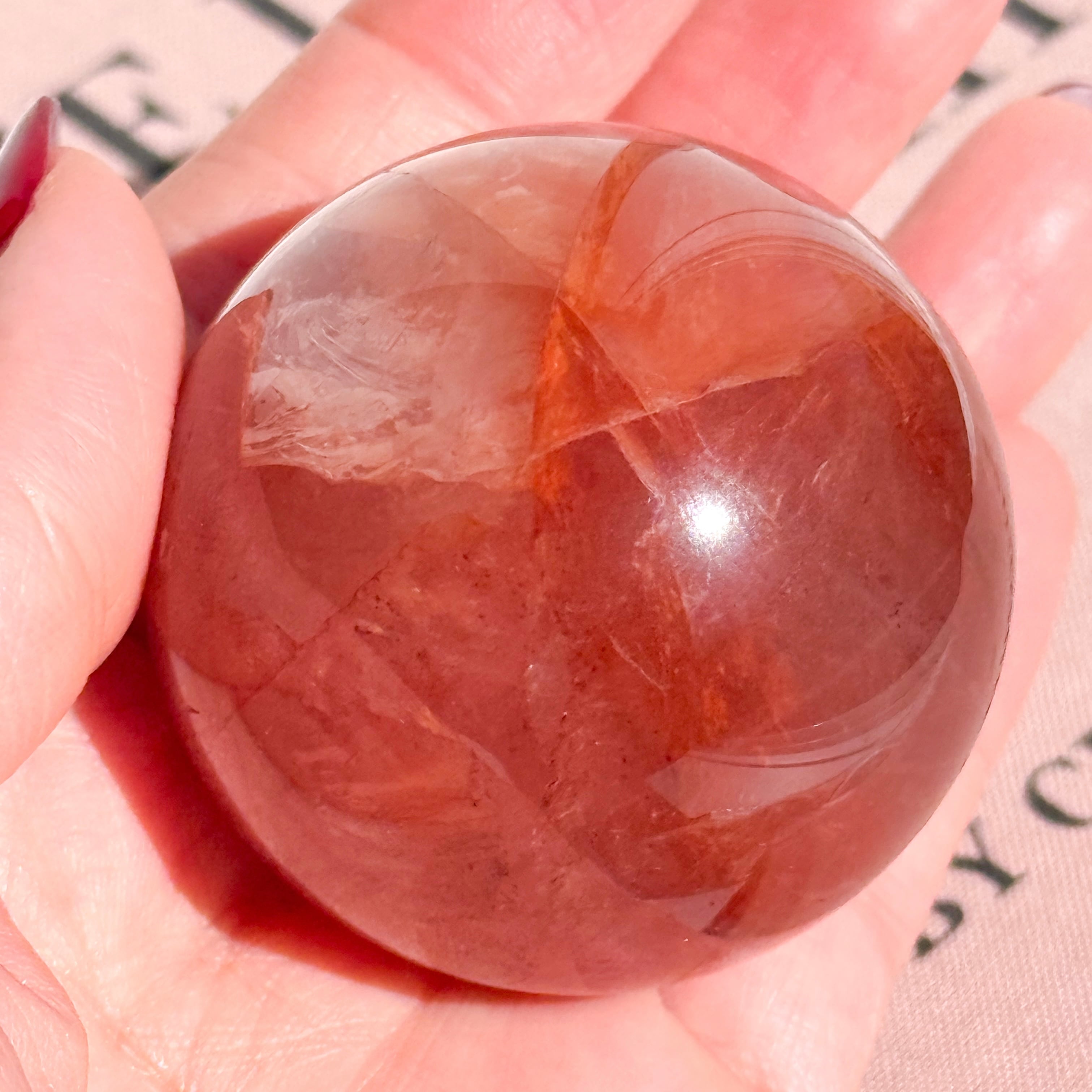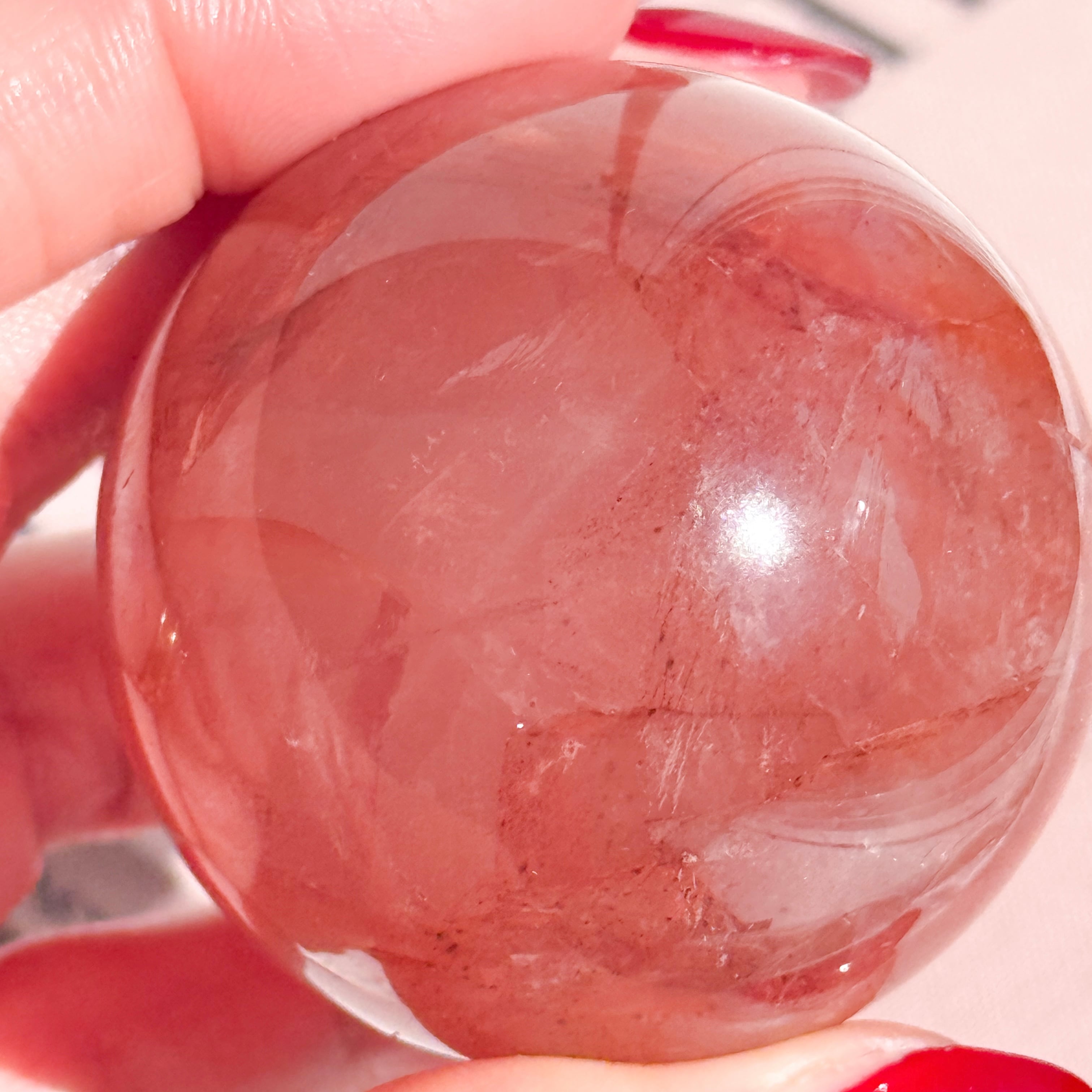赤い炎を内包した、エネルギッシュなファイアクォーツ。 6条の大きめなスターが美しく入ります。 写真で上手く確認できないので、お問い合わせ頂けましたら動画でのご紹介も可能です。 お気軽にメッセージくださいませ。 Measurements: 約 48mm (直径) Weight 約 157g タンザニア産