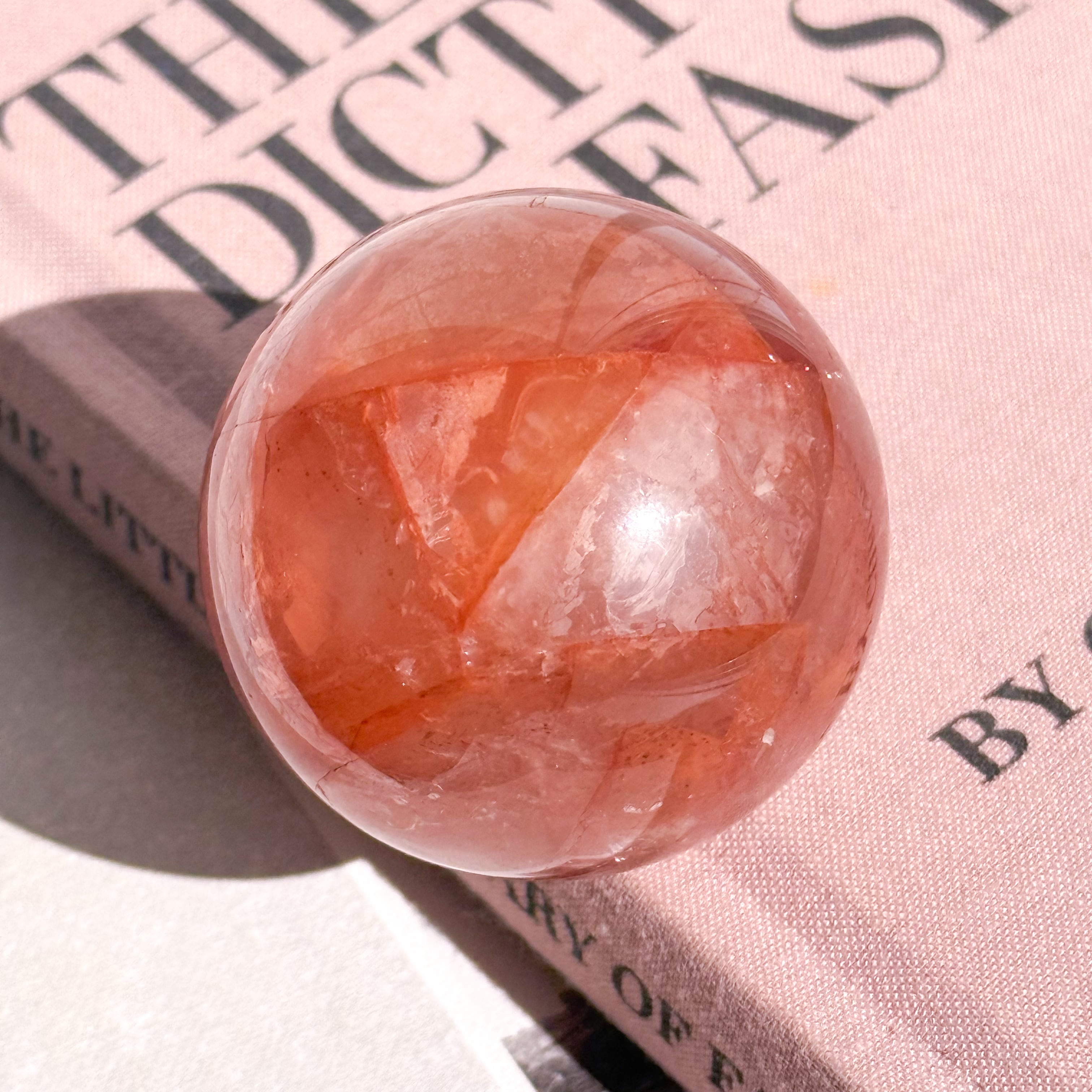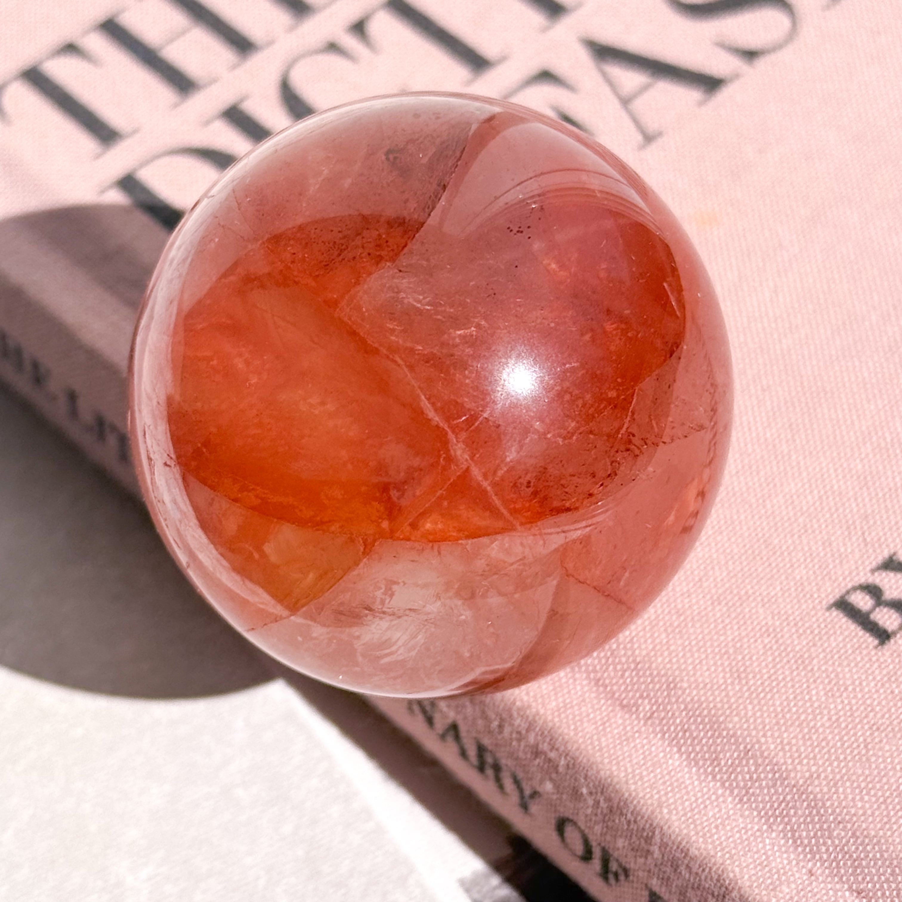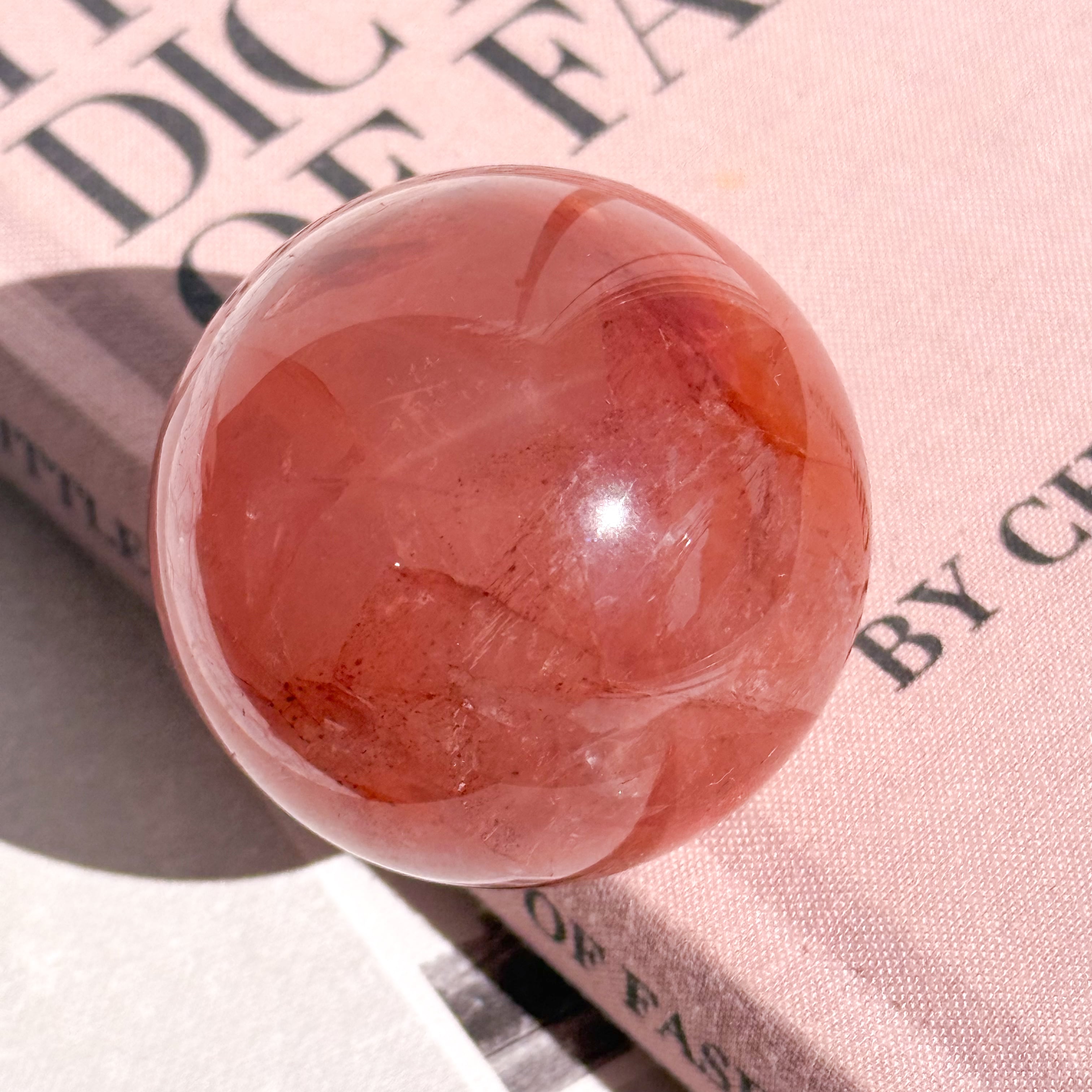 赤い炎を内包した、エネルギッシュなファイアクォーツ。 6条の大きめなスターが美しく入ります。 写真で上手く確認できないので、お問い合わせ頂けましたら動画でのご紹介も可能です。 お気軽にメッセージくださいませ。 Measurements: 約 48mm (直径) Weight 約 157g タンザニア産