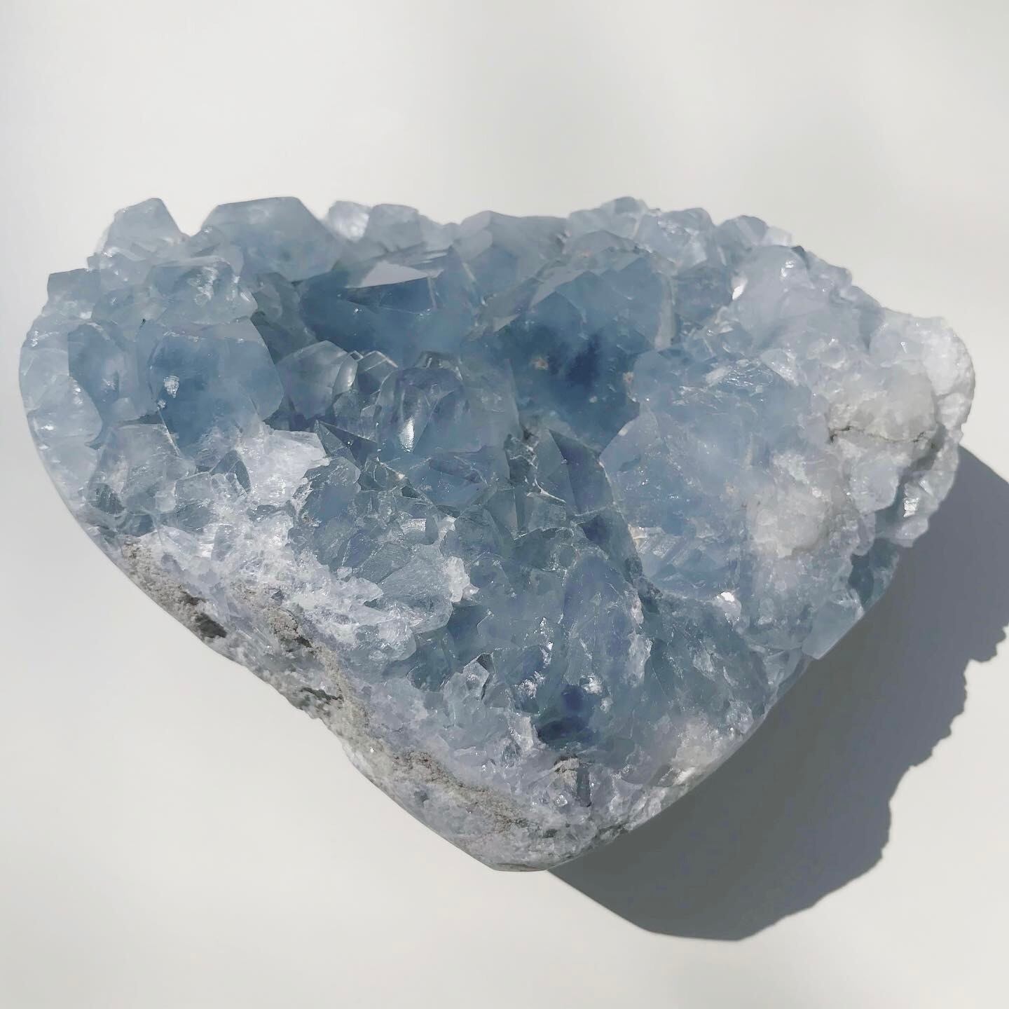 「セレスタイト(Celestine)」は和名で「天晴石」や「天青石」とも書き、語源はラテン語のcaelestisで、”天国のような石”や"空の色"という意味ですが、このクラスターの結晶は透明度もよく、のぞきこんでいると海の中を思わせるピース。儚くて優しいブルーです。