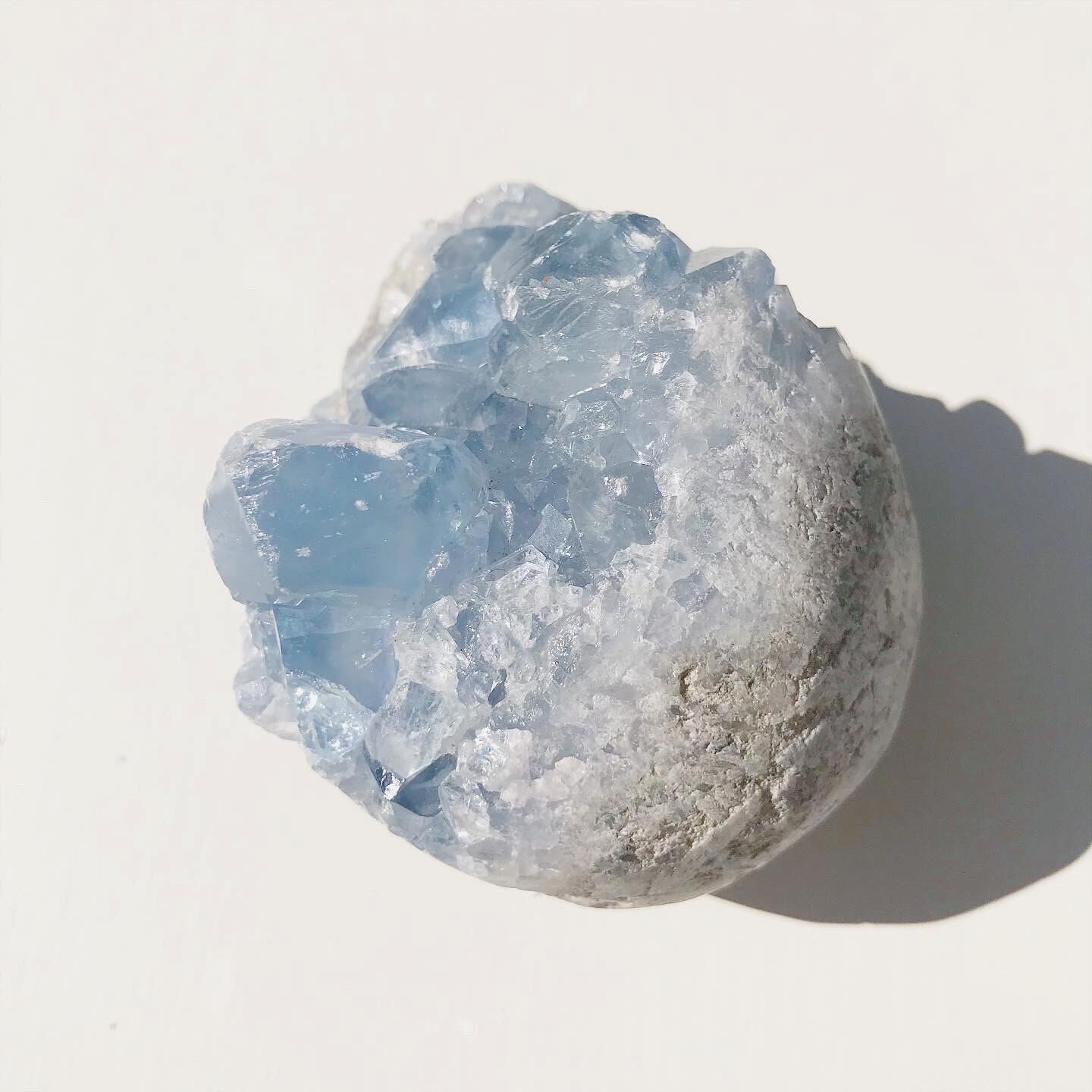 「セレスタイト(Celestine)」は和名で「天晴石」や「天青石」とも書き、語源はラテン語のcaelestisで、”天国のような石”という意味です。
