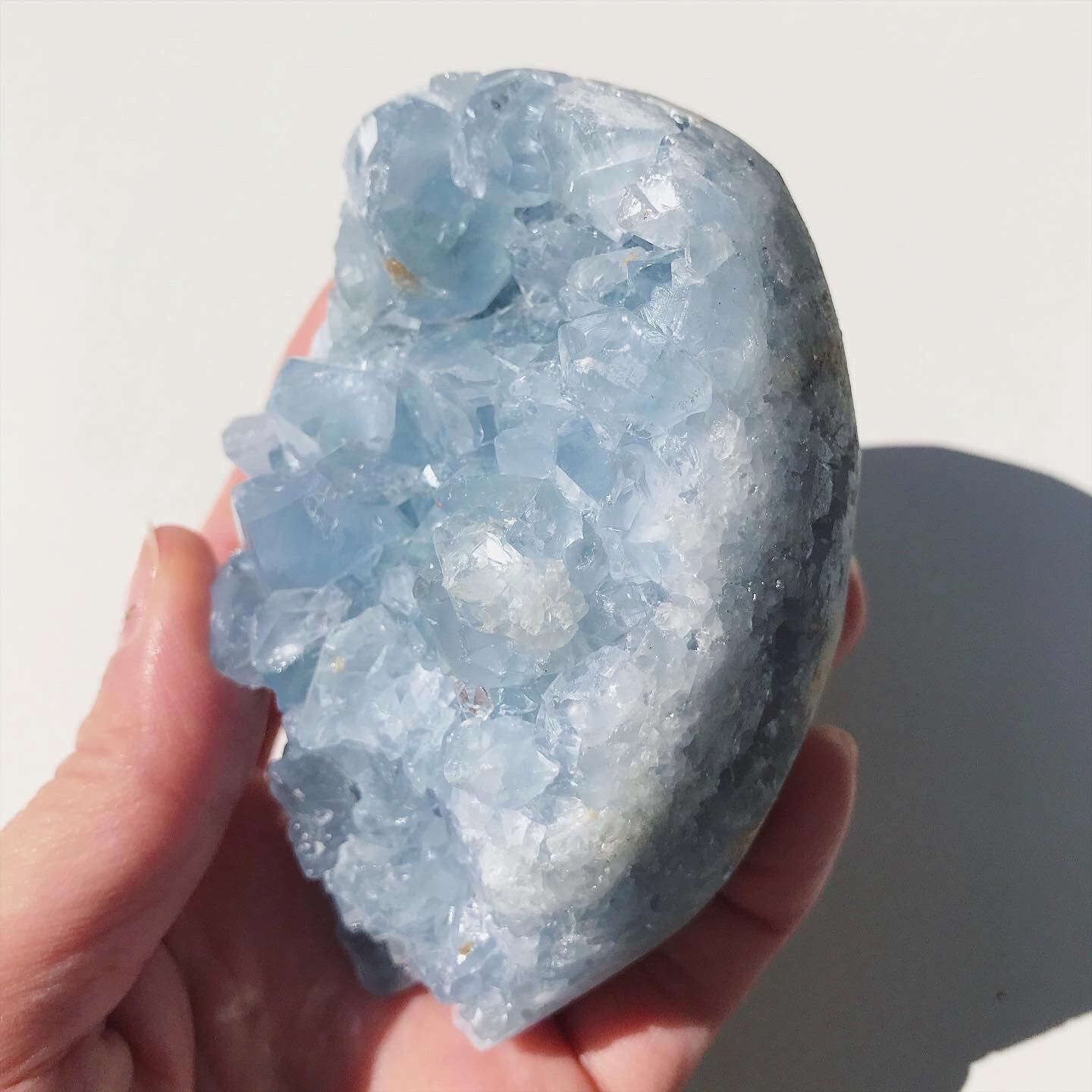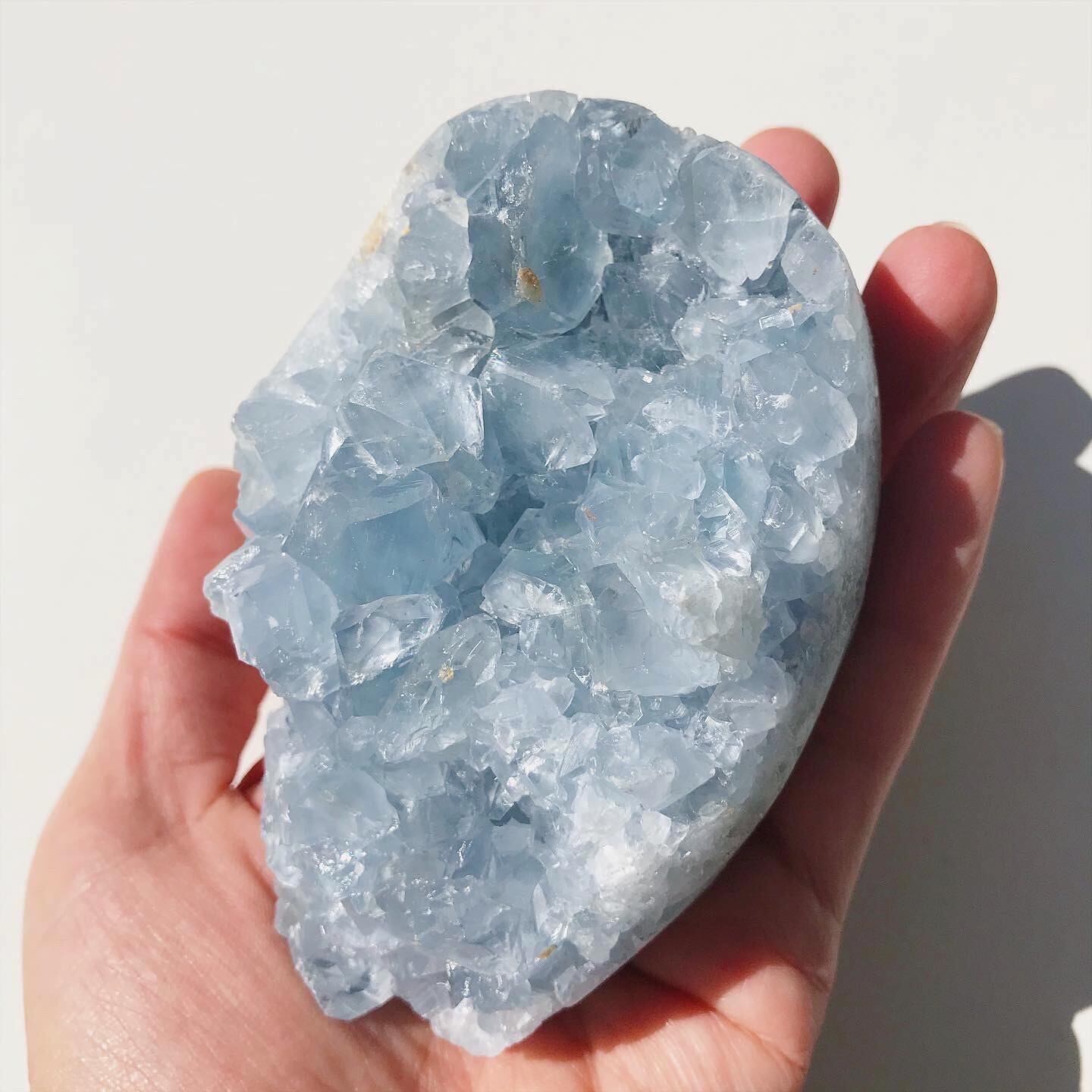 「セレスタイト(Celestine)」は和名で「天晴石」や「天青石」とも書き、語源はラテン語のcaelestisで、”天国のような石”という意味です。