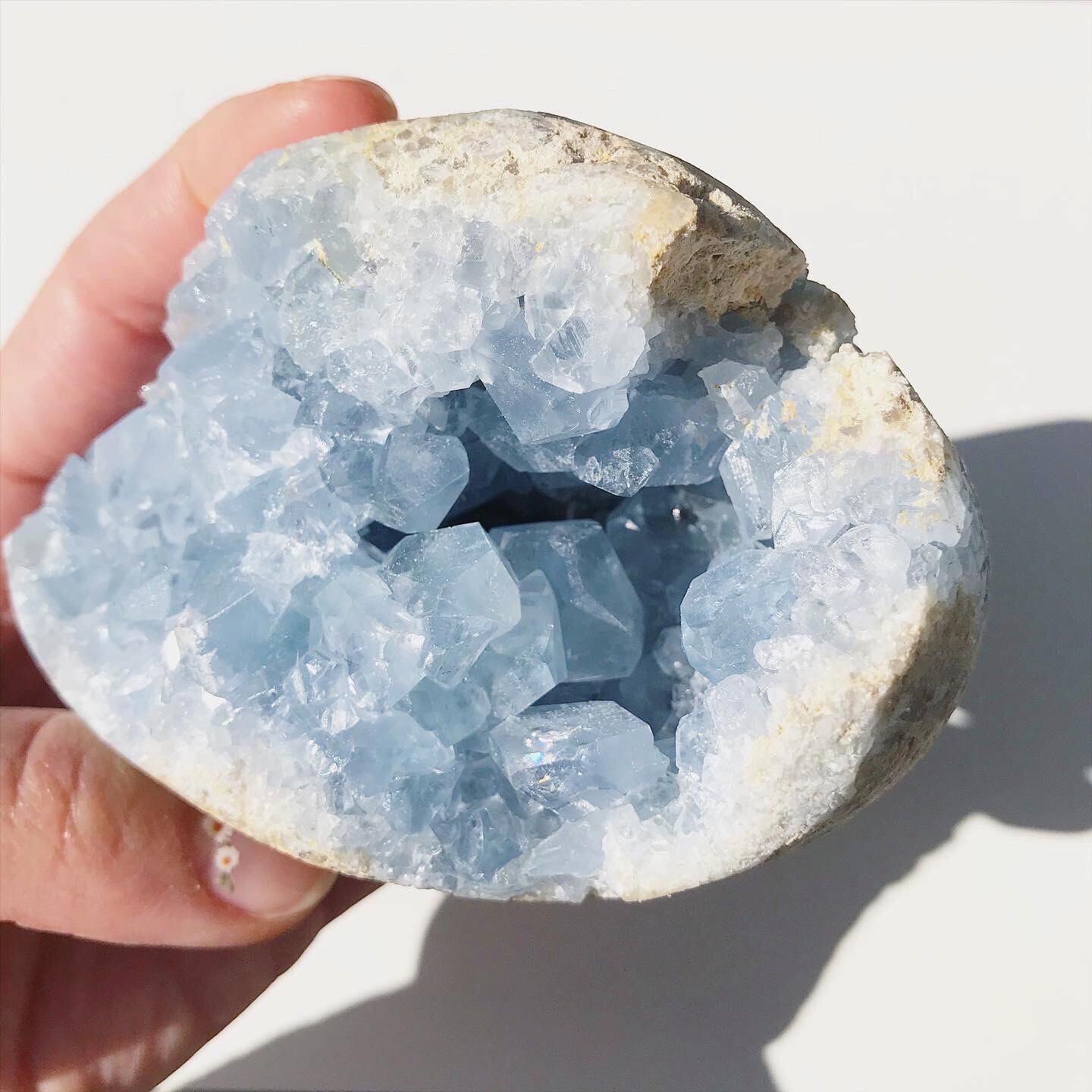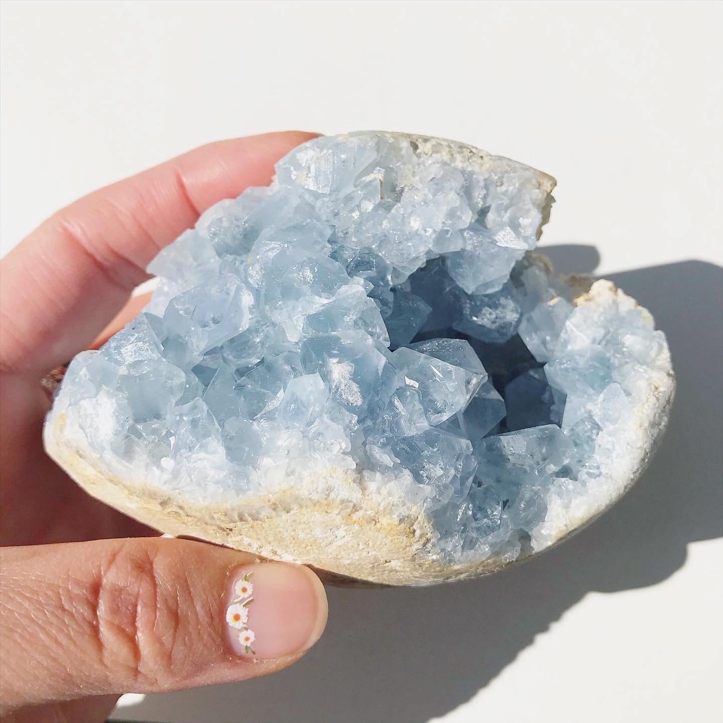 「セレスタイト(Celestine)」は和名で「天晴石」や「天青石」とも書き、語源はラテン語のcaelestisで、”天国のような石”という意味です。