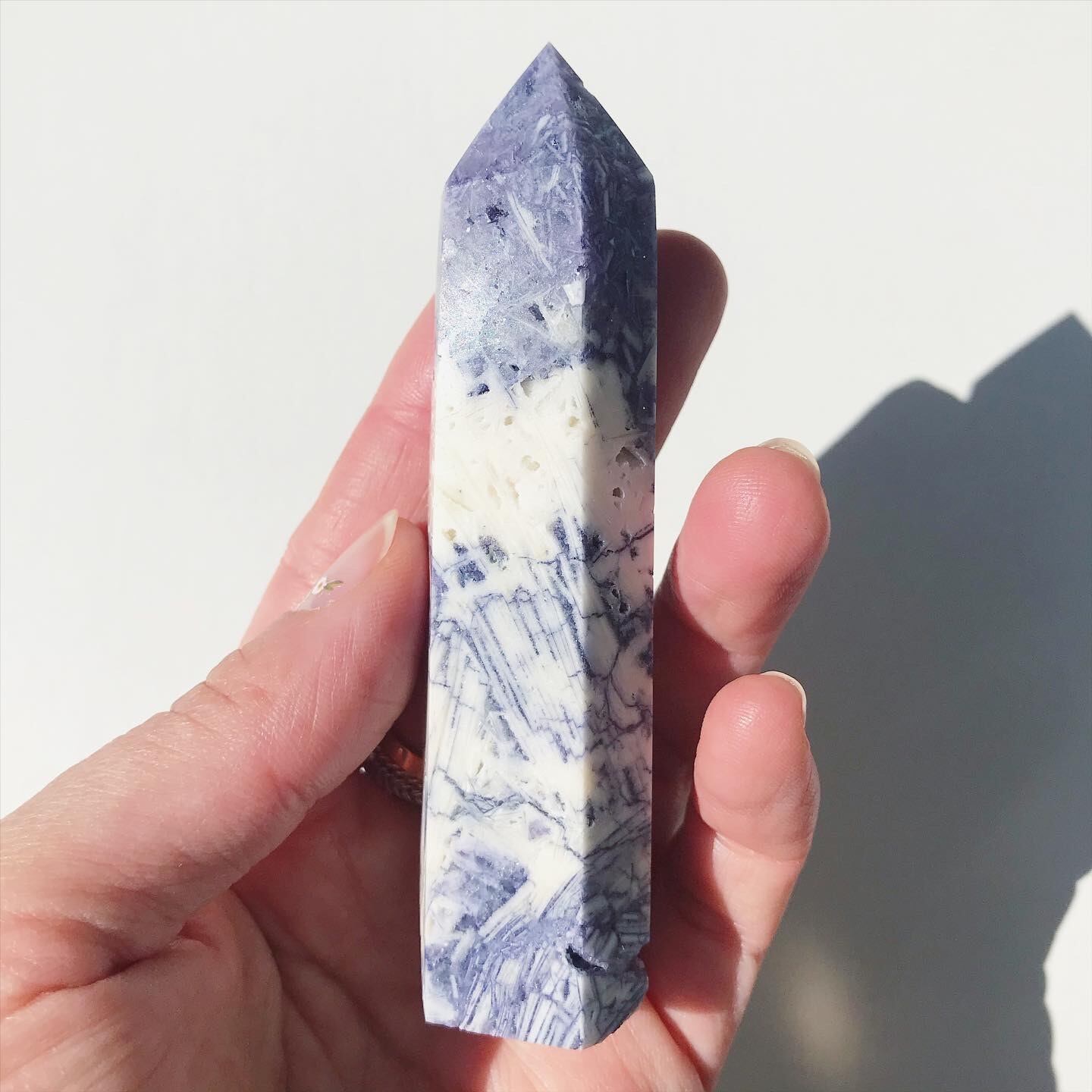 ブルーバイオレットカラーとホワイトのコントラストが美しいピースです。