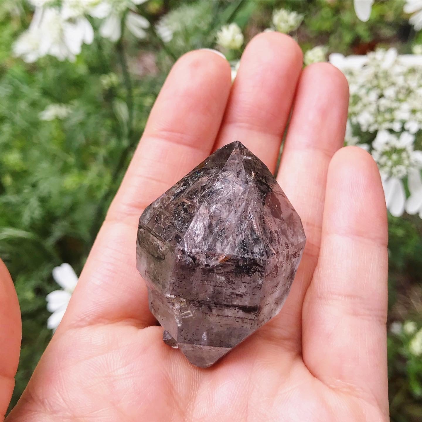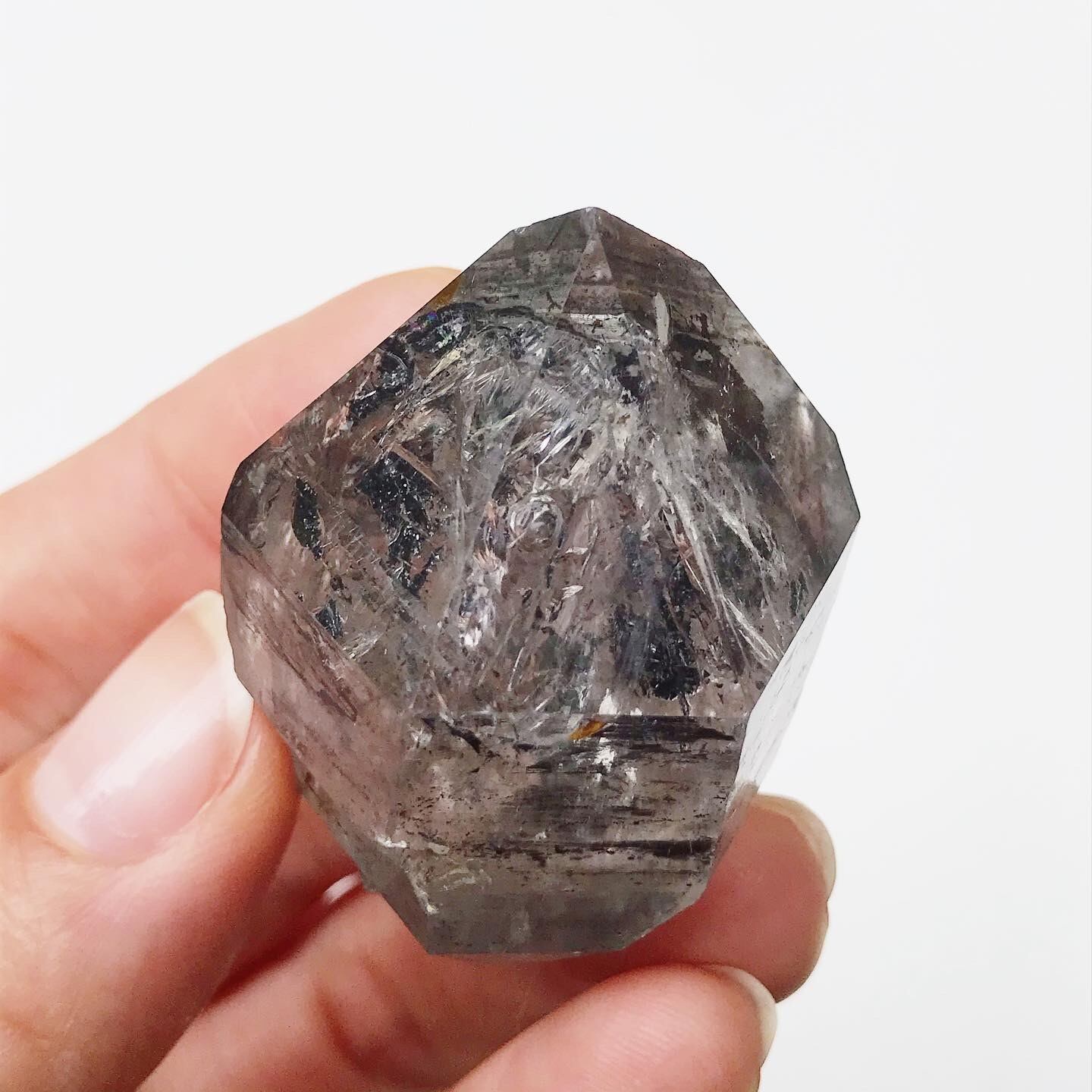 珍しい、水と流砂が入ったクリアクオーツのハーフポリッシュのポイント。