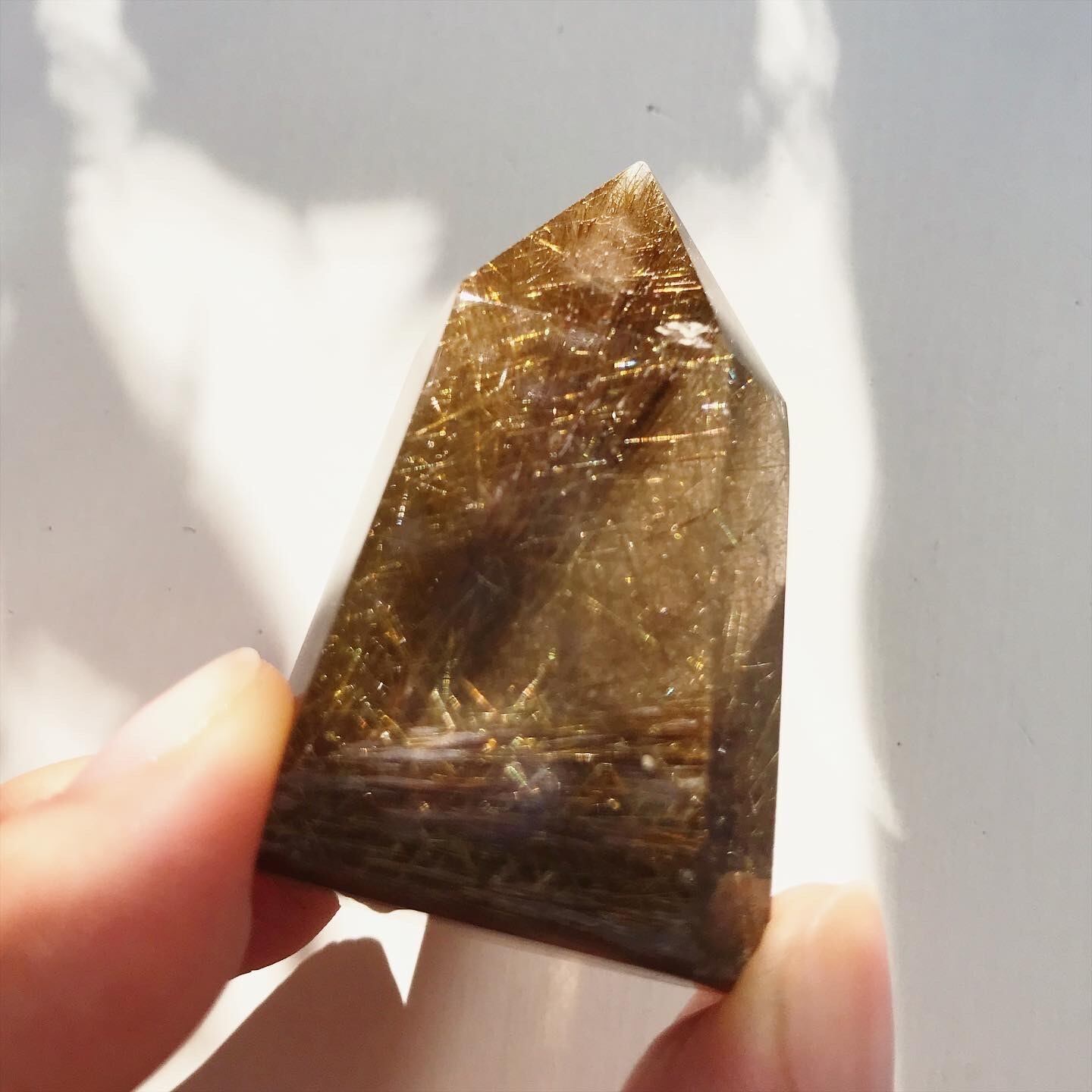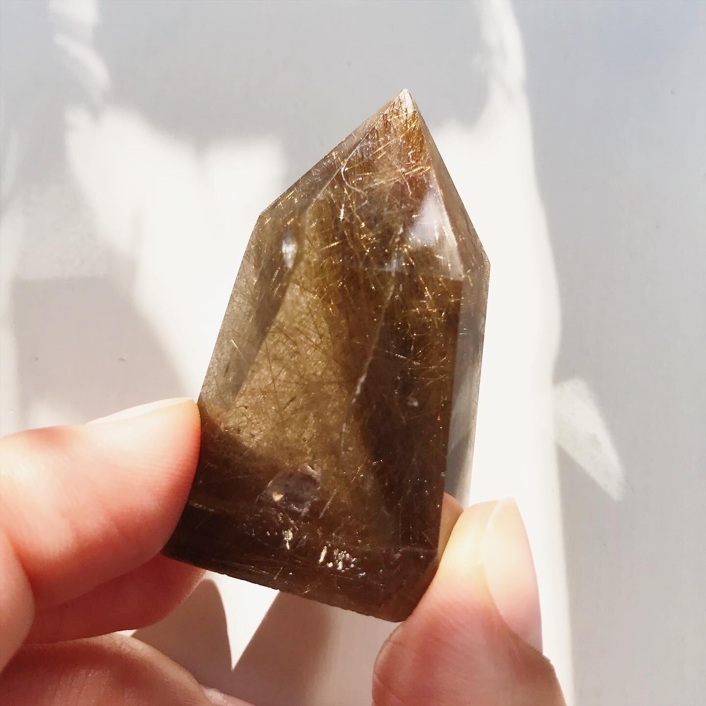 太陽光に透かすとルチルの少ない部分とのコントラストがまた、美しいです。