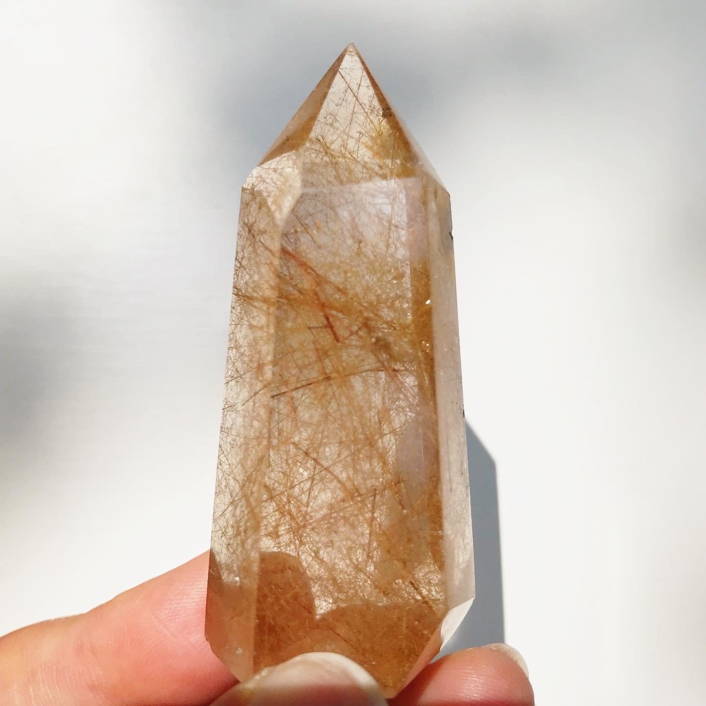 ボディ自体の透明度が高いため、太陽光が差し込むと、内部までルチルが美しく煌めきます。