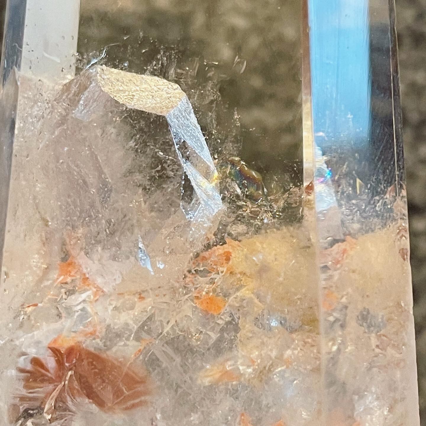 大きめの貫入水晶と、虹がしっかりと見える美しいピース。