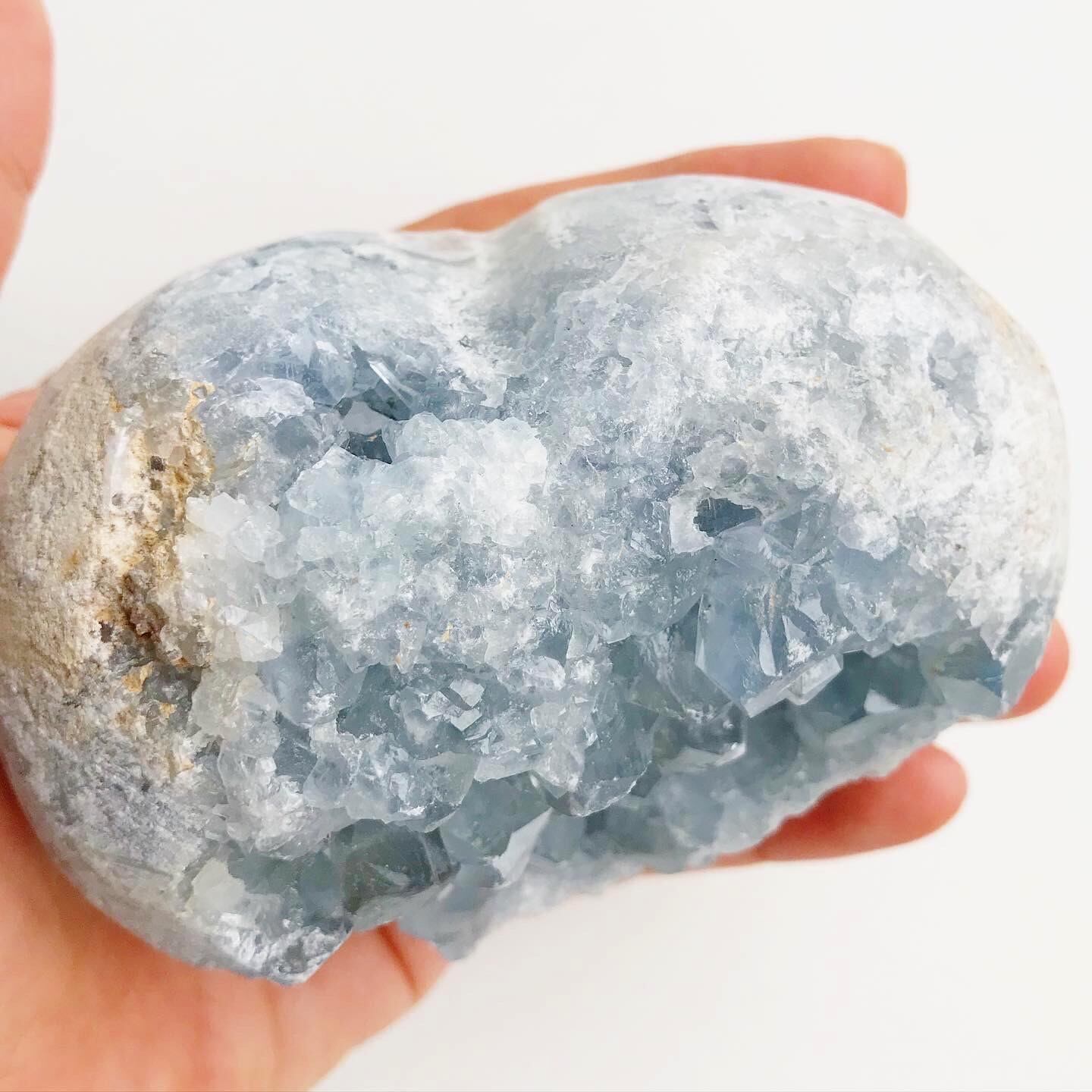 「セレスタイト(Celestine)」は和名で「天晴石」や「天青石」とも書き、語源はラテン語のcaelestisで、”天国のような石”という意味です。