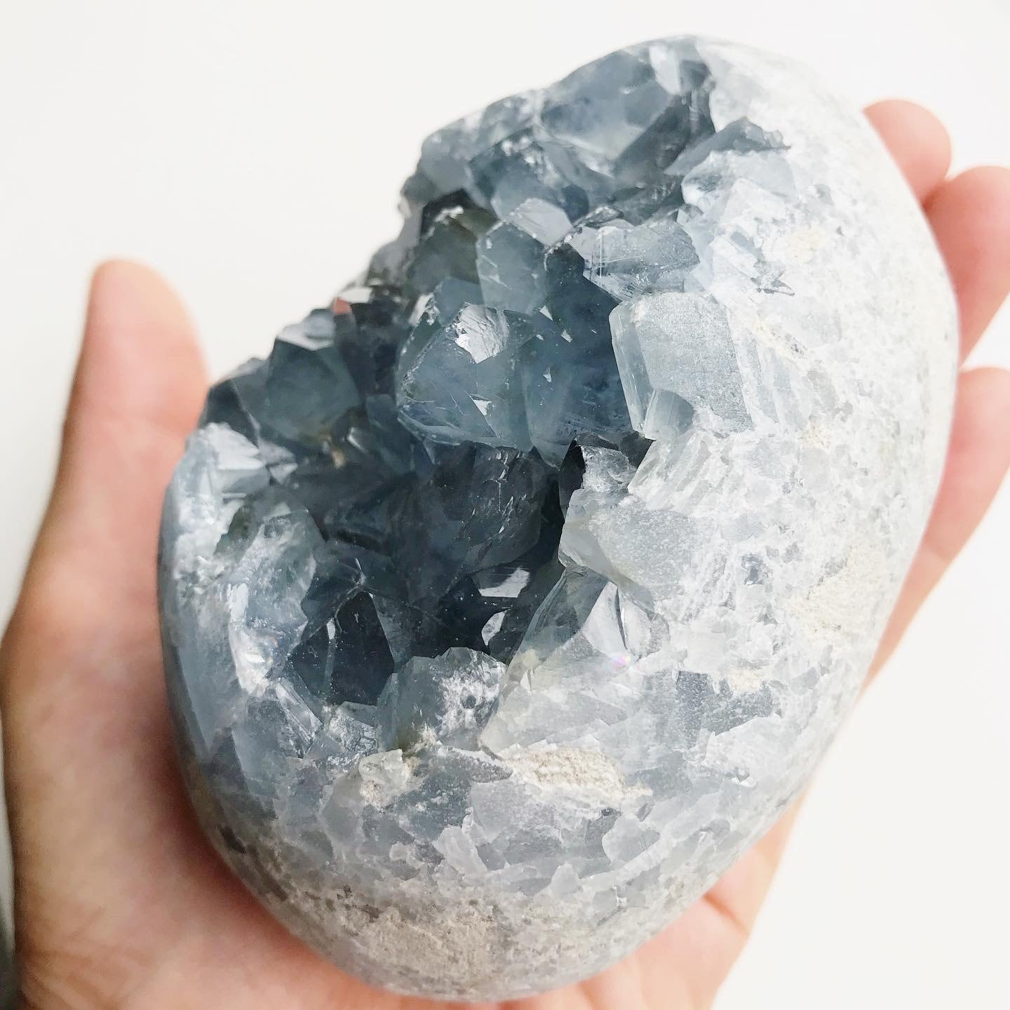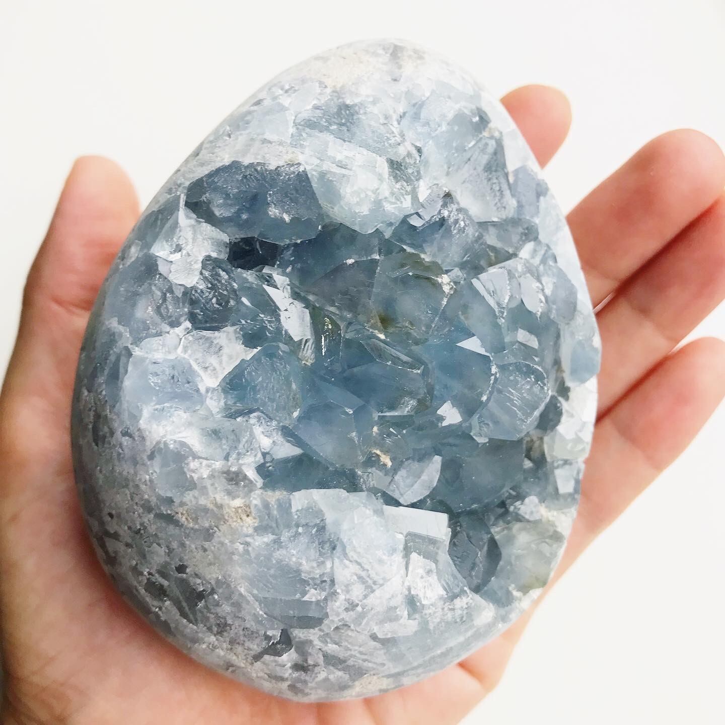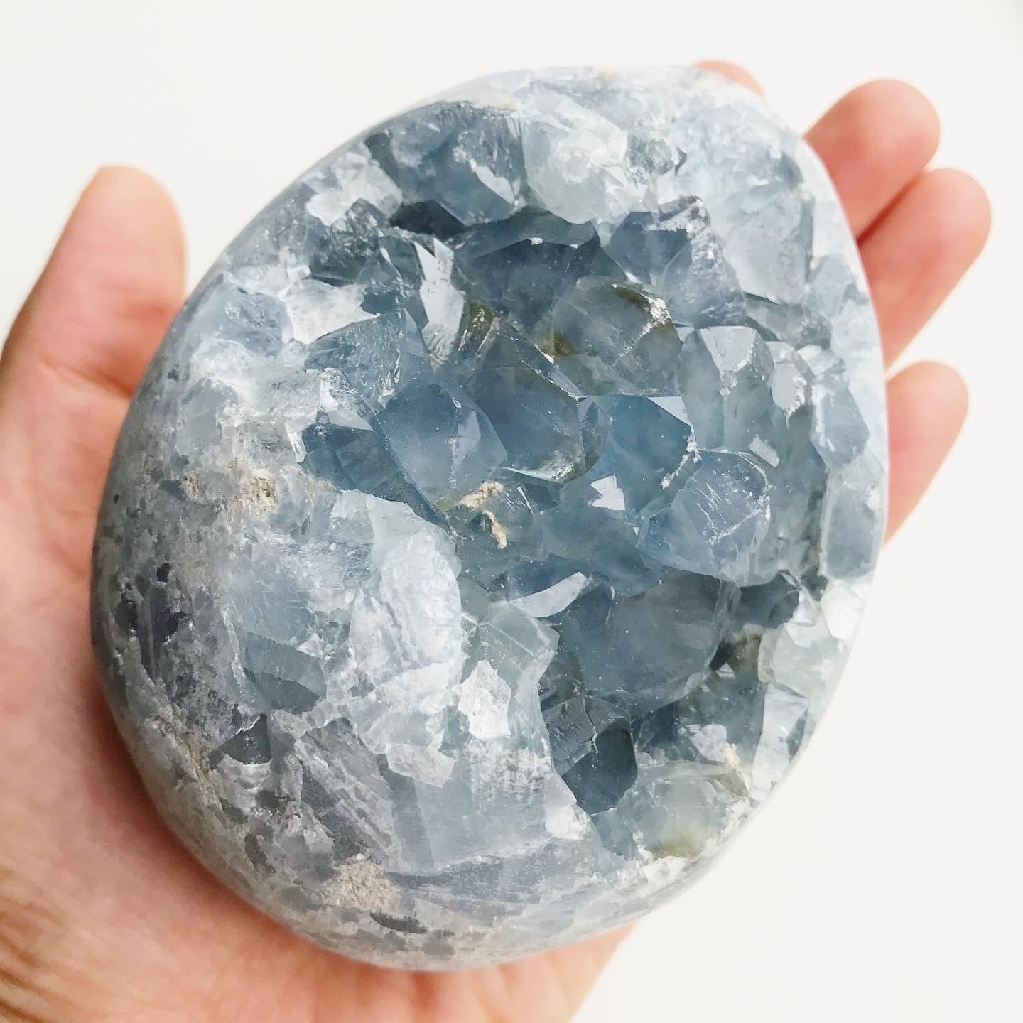 淡くて優しいブルーの結晶が美しい、たまご型の素敵なピースです。