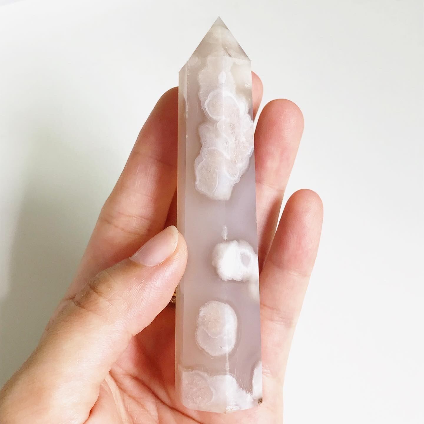 桜色の模様が特徴的なフラワーアゲートのポイント。