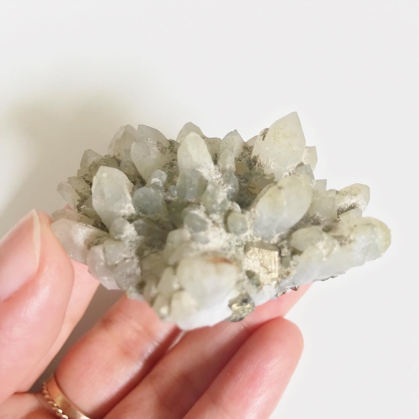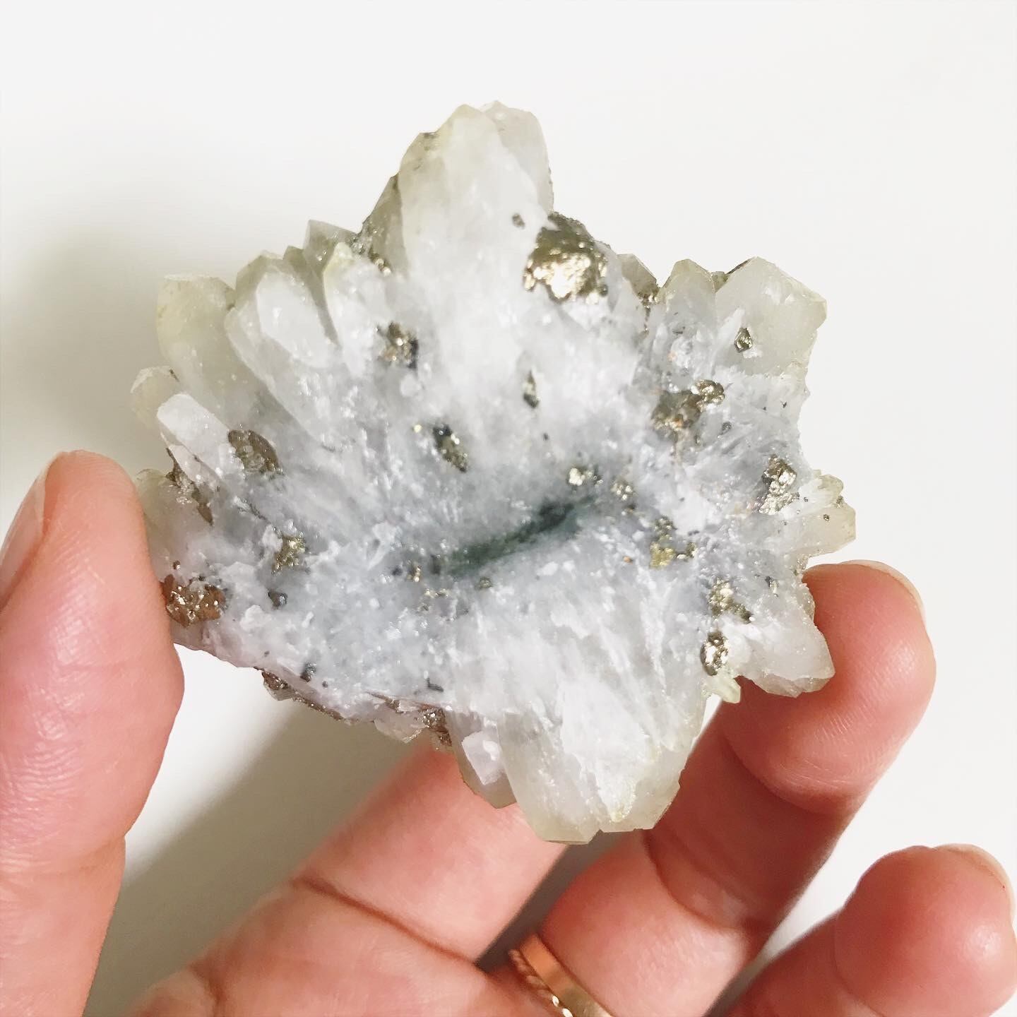 珍しいマットな質感のクオーツの隙間から、シャンパンゴールドカラーのパイライトが顔をのぞかせます♡
