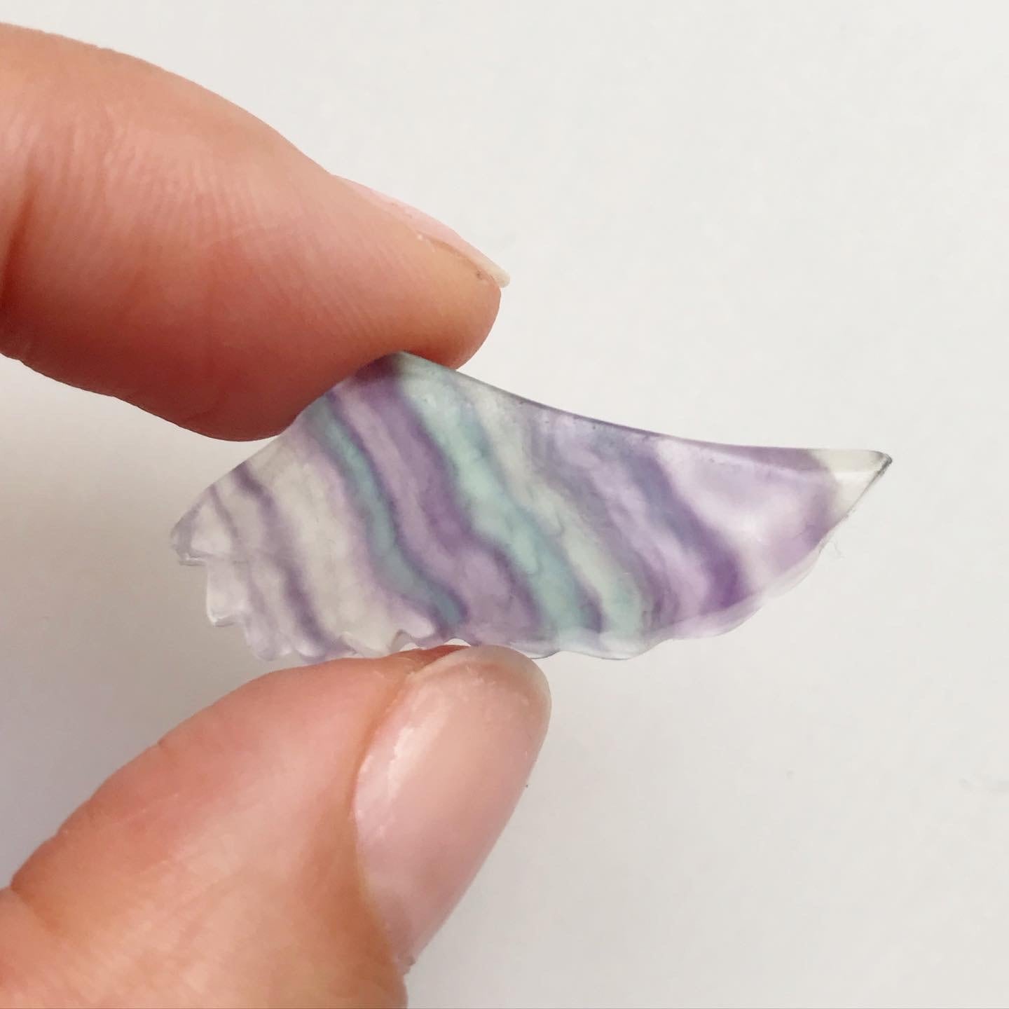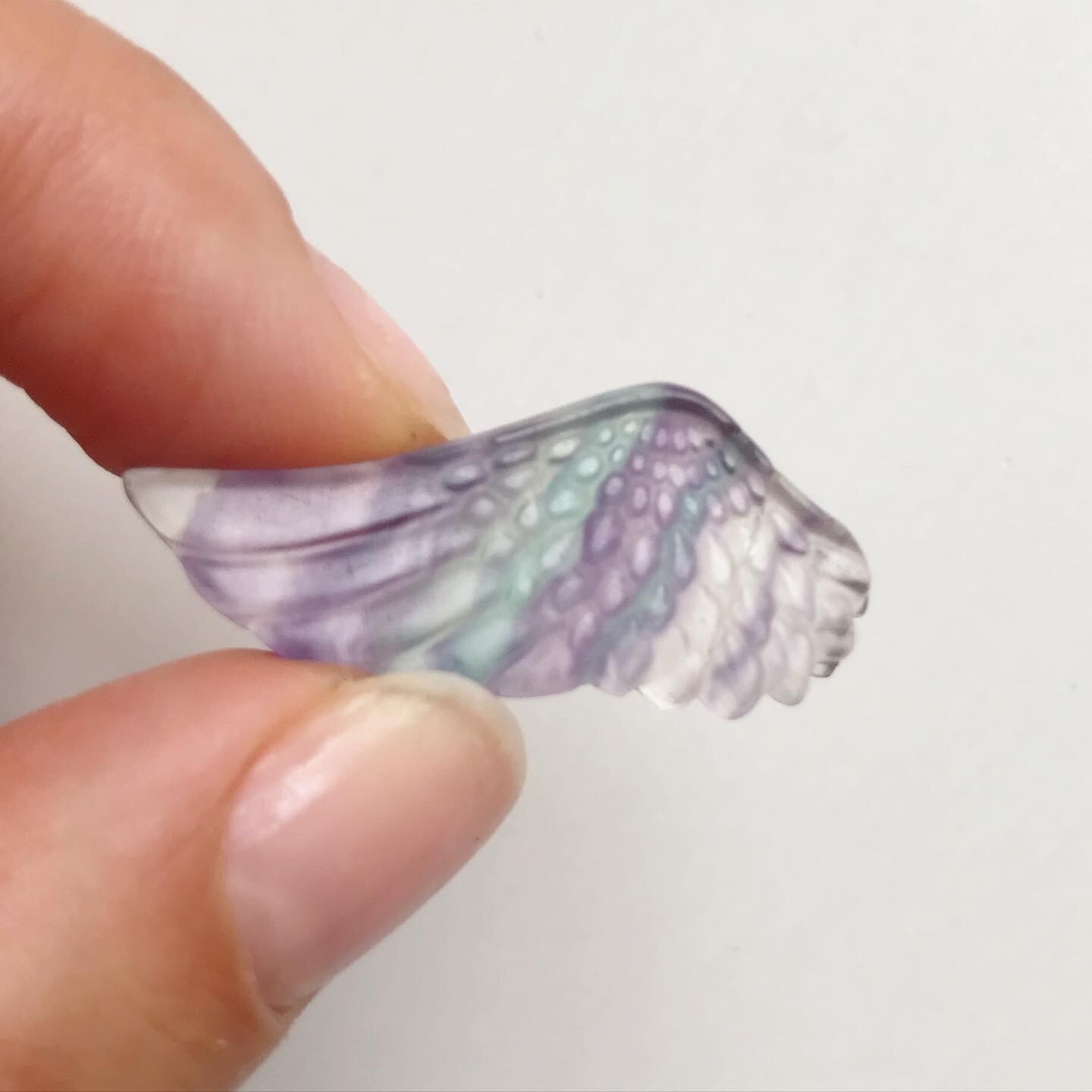 繊細なカーヴィングと、フローライト特有の色の層がとても可愛らしいピース。