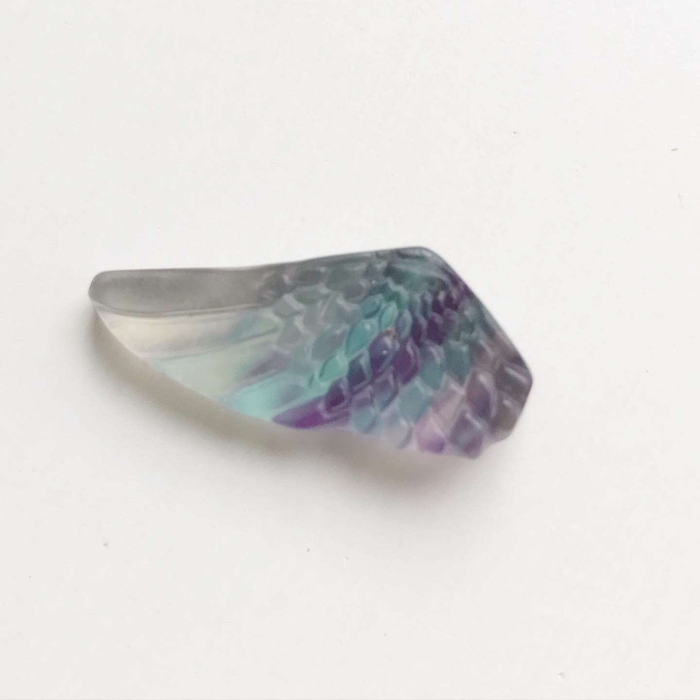 繊細なカーヴィングと、フローライト特有の色の層がとても可愛らしいピース。