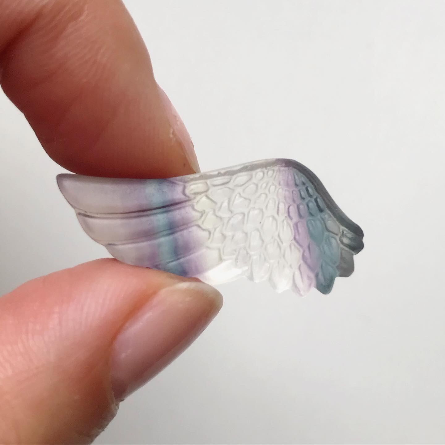 繊細なカーヴィングと、フローライト特有の色の層がとても可愛らしいピース。