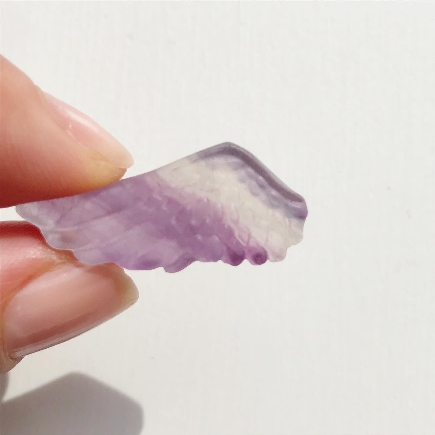 繊細なカーヴィングと、フローライト特有の色の層がとても可愛らしいピース。