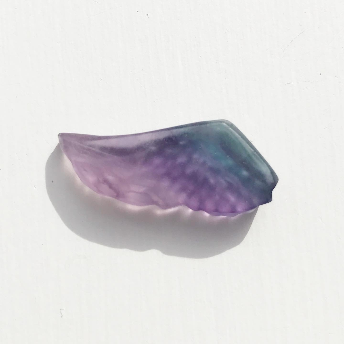 繊細なカーヴィングと、フローライト特有の色の層がとても可愛らしいピース。