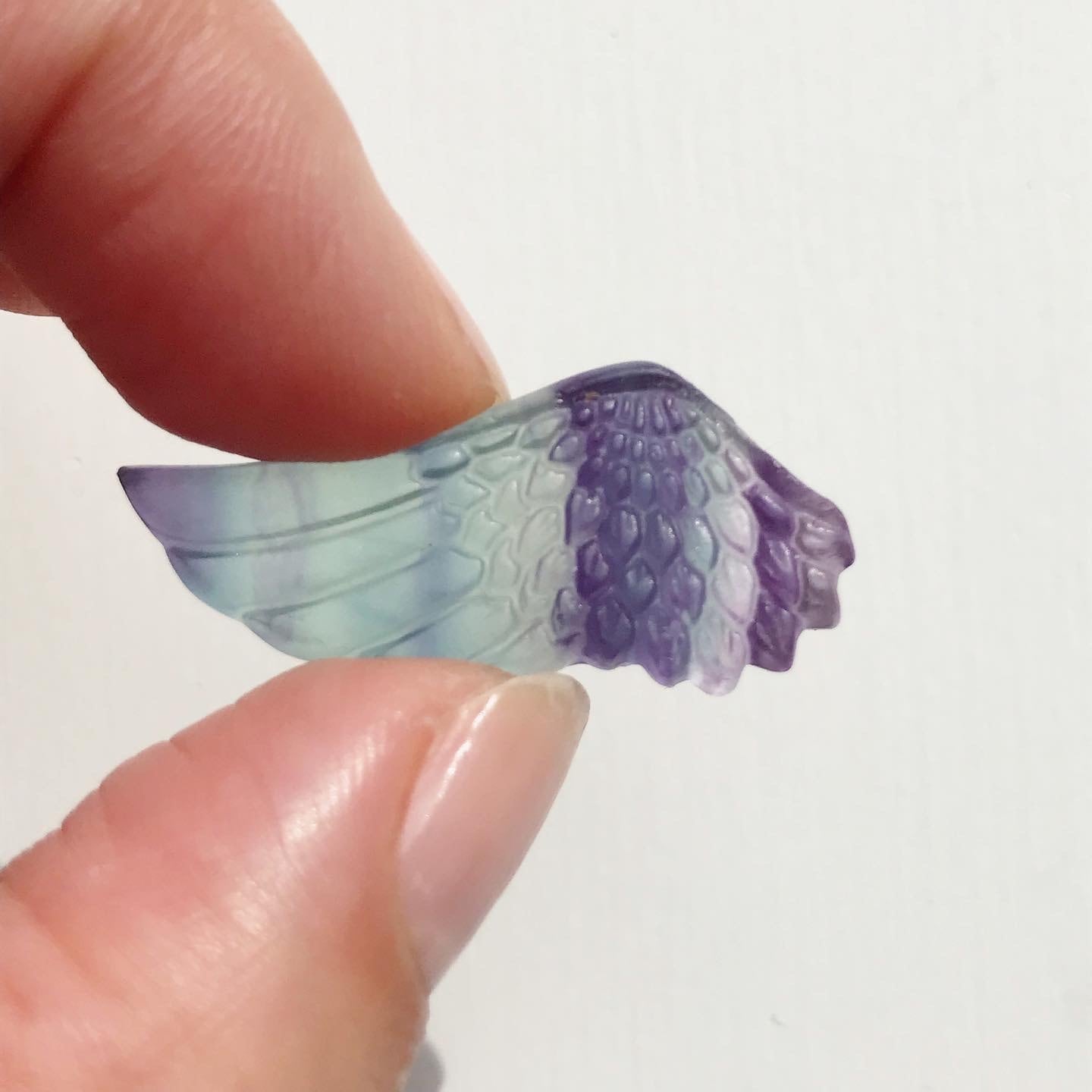 繊細なカーヴィングと、フローライト特有の色の層がとても可愛らしいピース。