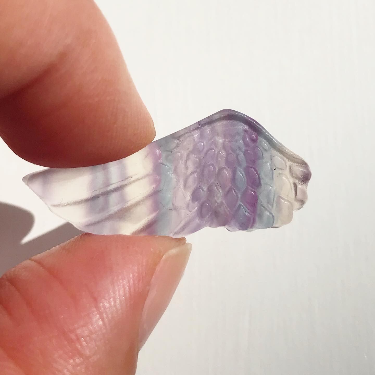 繊細なカーヴィングと、フローライト特有の色の層がとても可愛らしいピース。