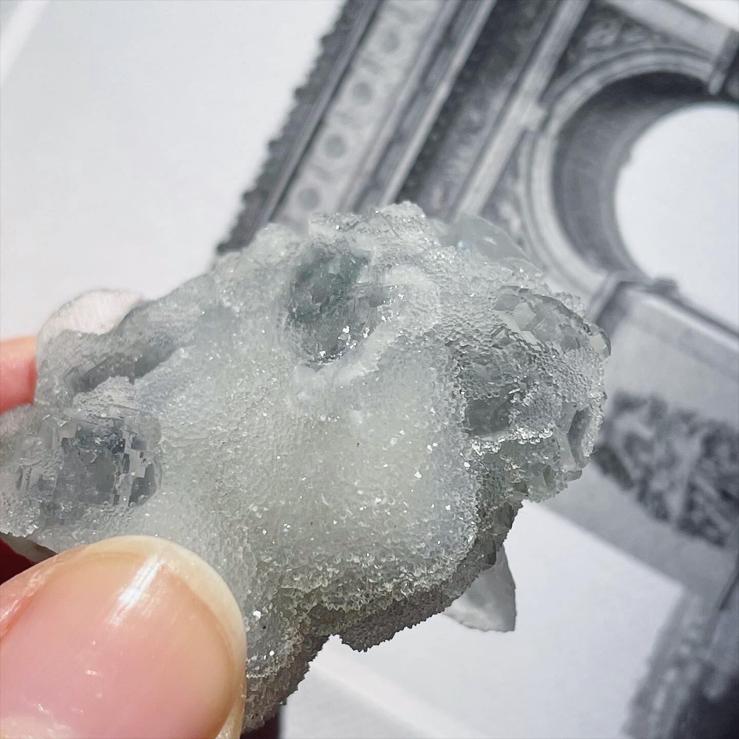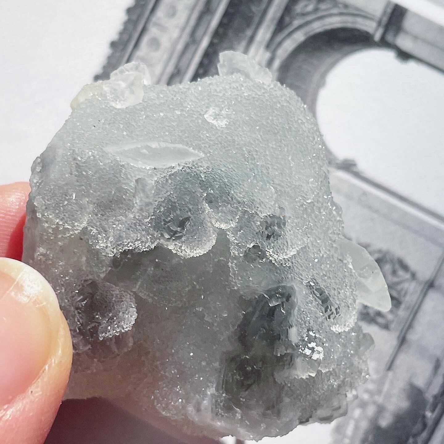 じっくりみていただくと、フローライトのキューブ状の結晶もしっかりと見られます。