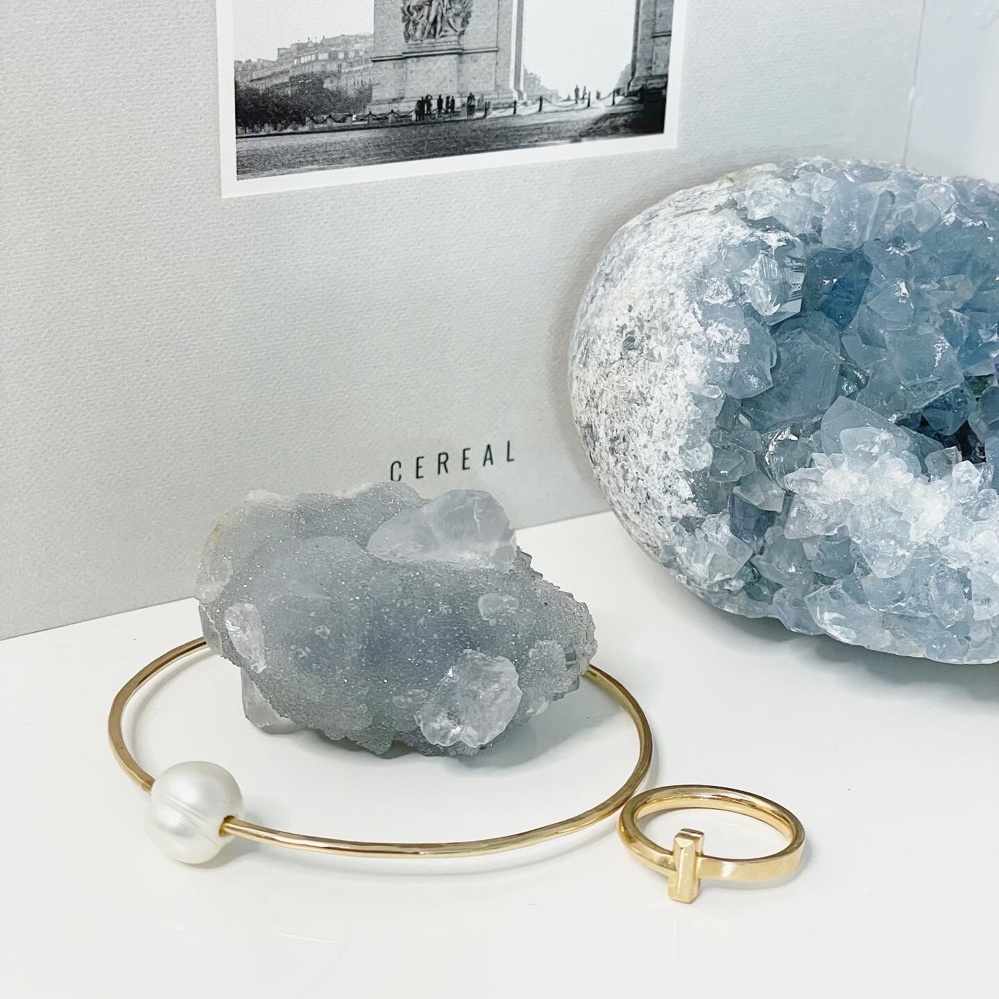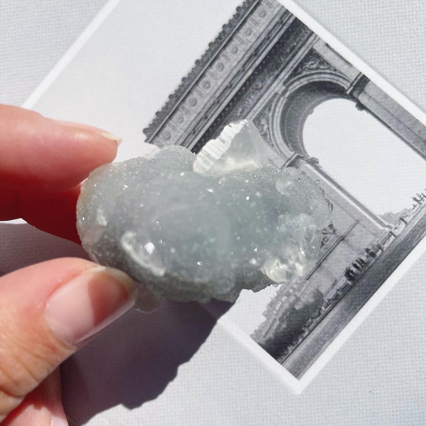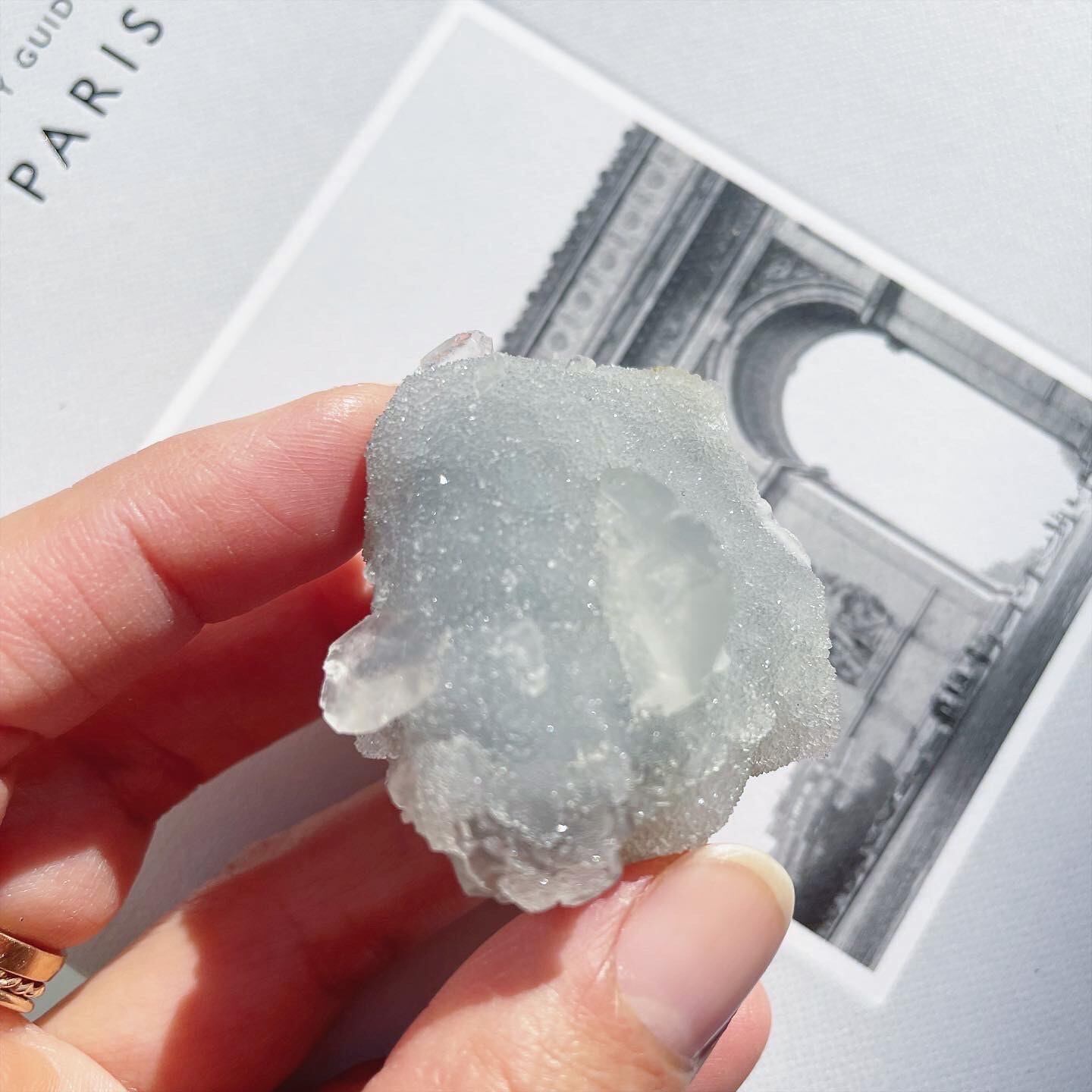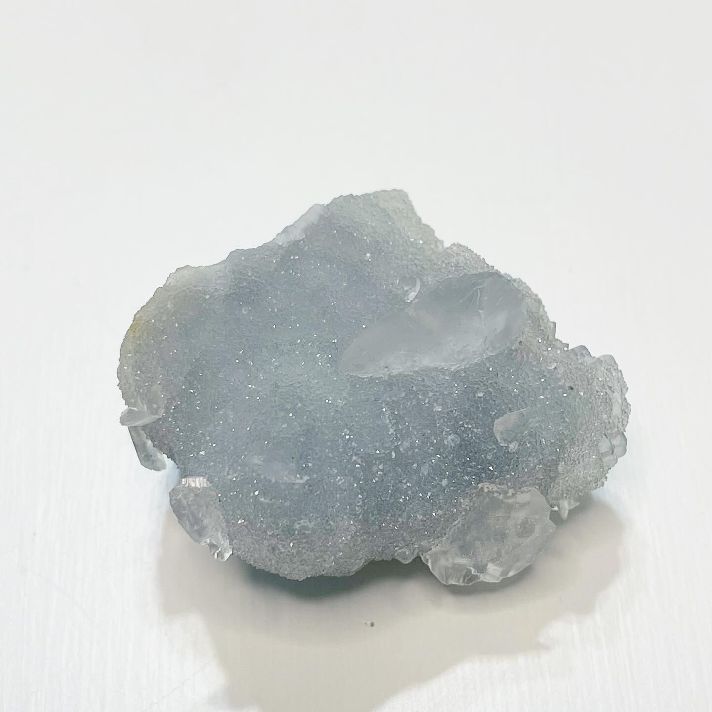 全体がキラキラと煌き、カルサイトの扇のような結晶と、ブルーグレイのカラーが魅力的です。