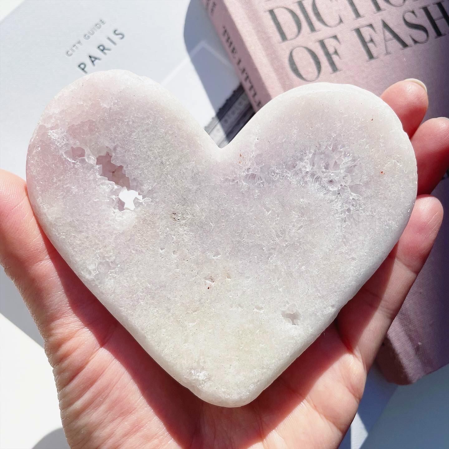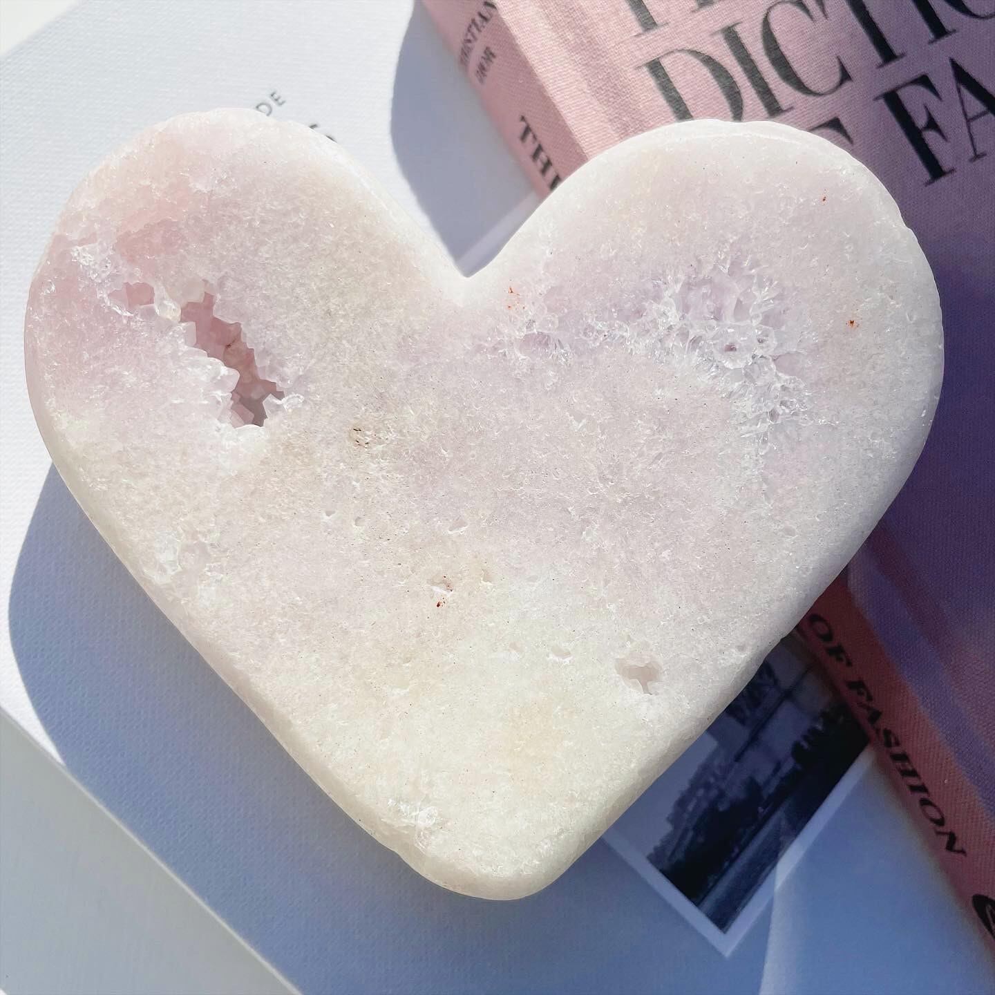 柔らかいピンクからラベンダーへのグラデーション、そしてドゥルージーポケットから覗く可愛らしい結晶が魅力のピースです。