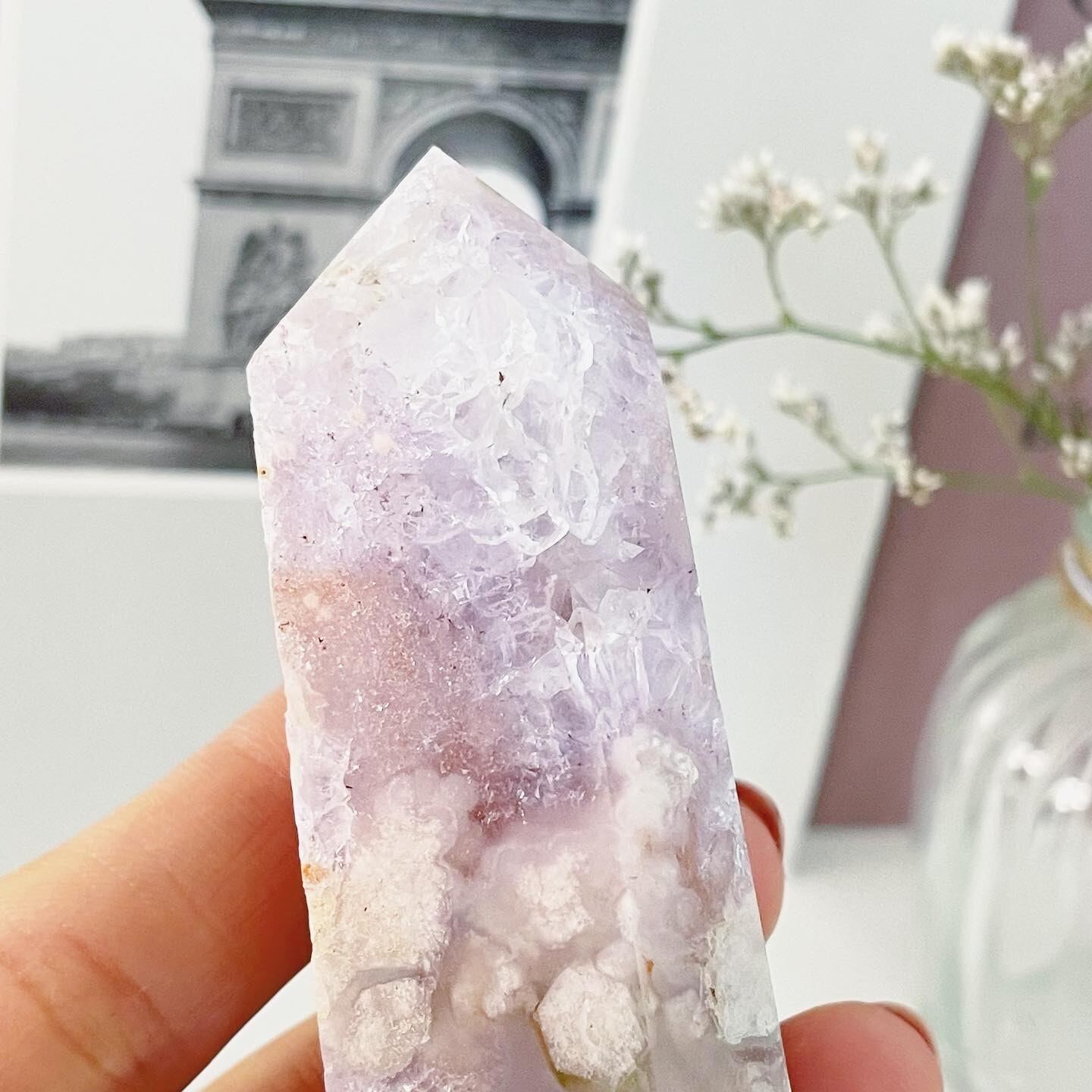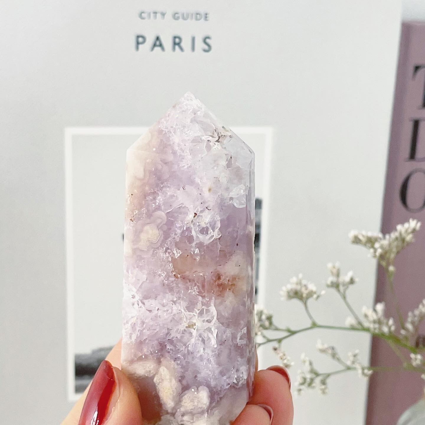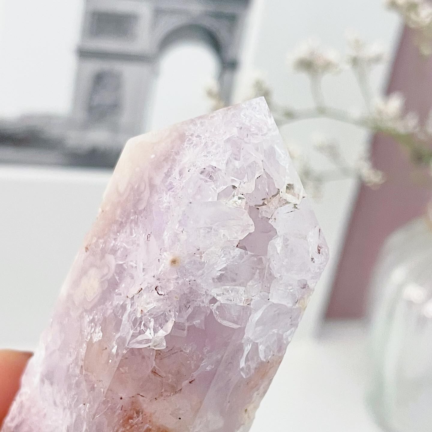 アメジストとフラワーアゲートが共生している珍しいポイント。