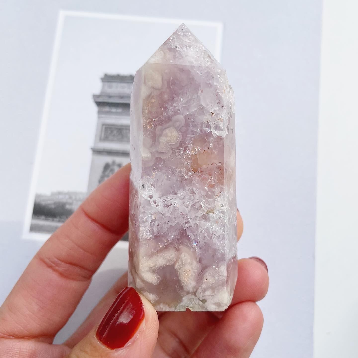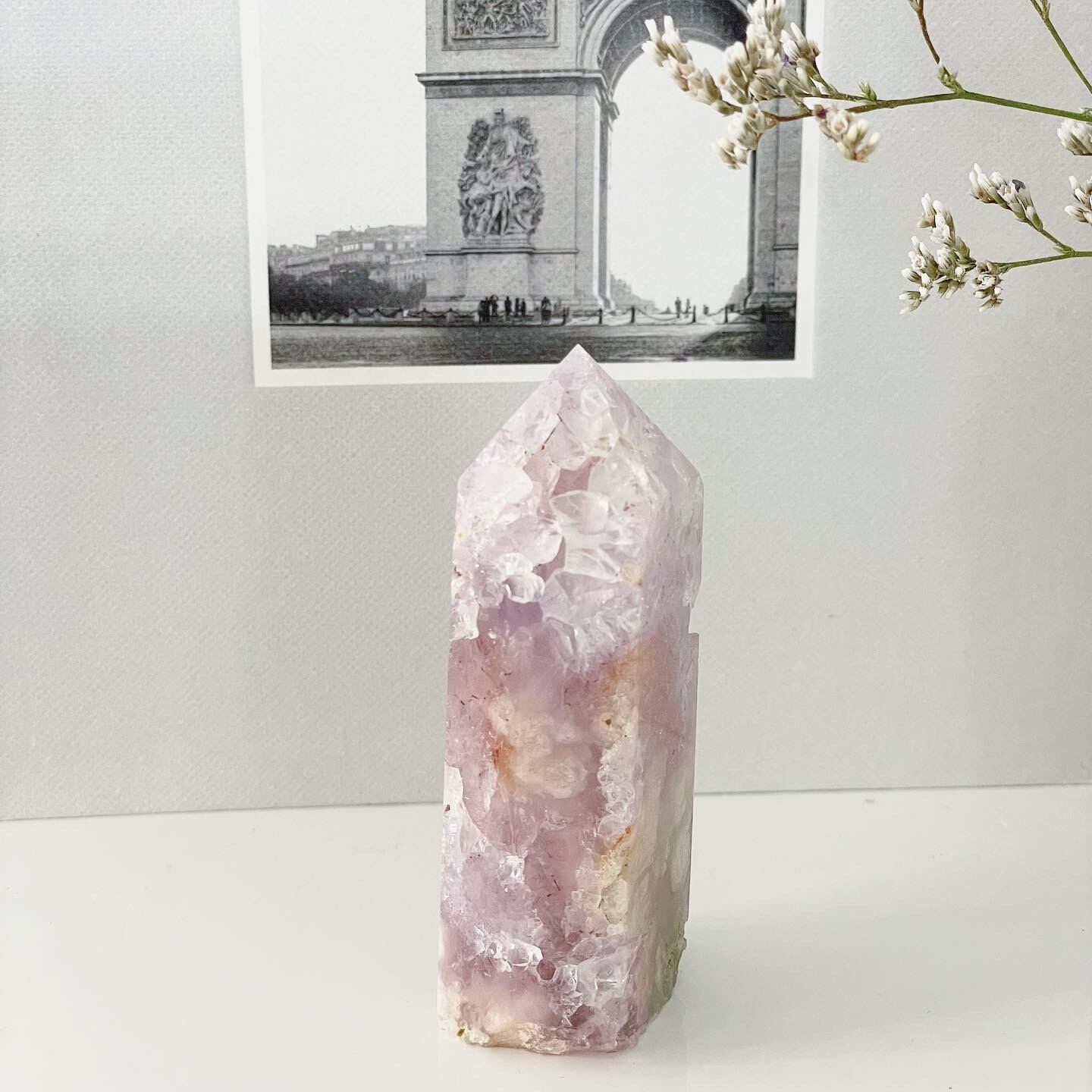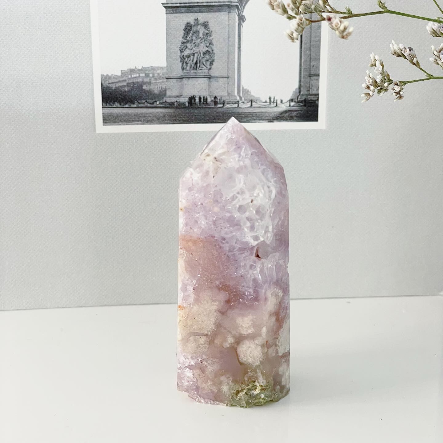 アメジストとフラワーアゲートが共生している珍しいポイント。