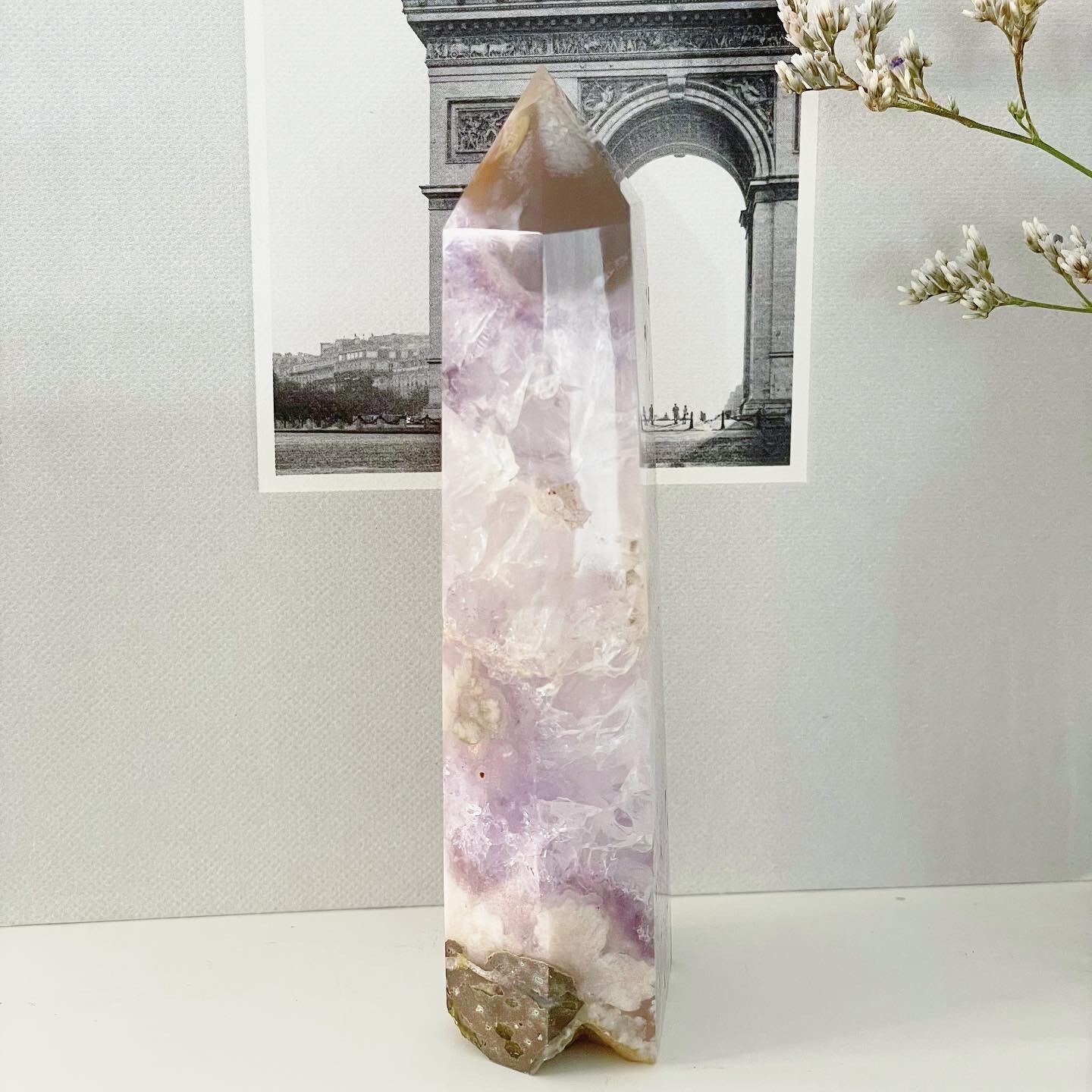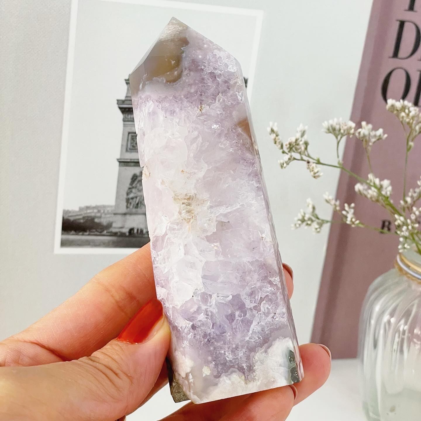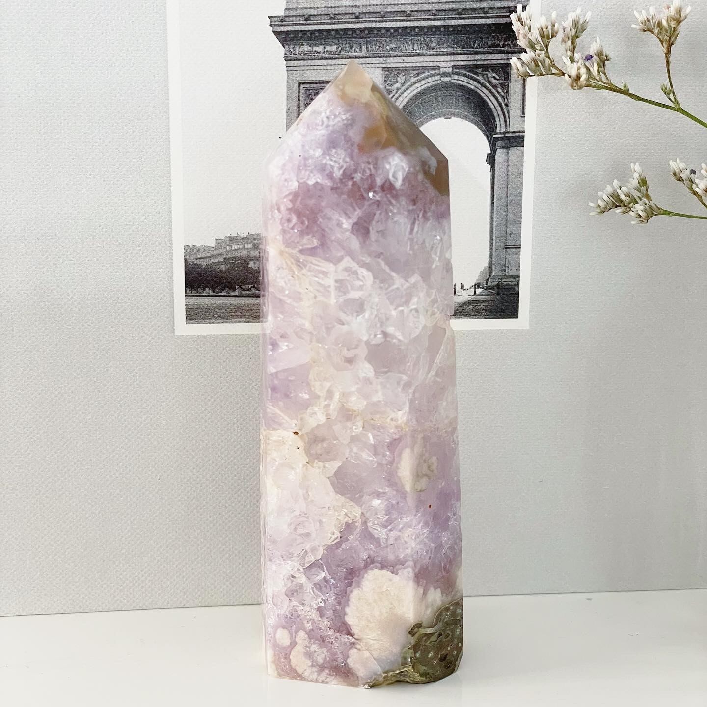 アメジストとフラワーアゲートが共生している珍しいポイント。