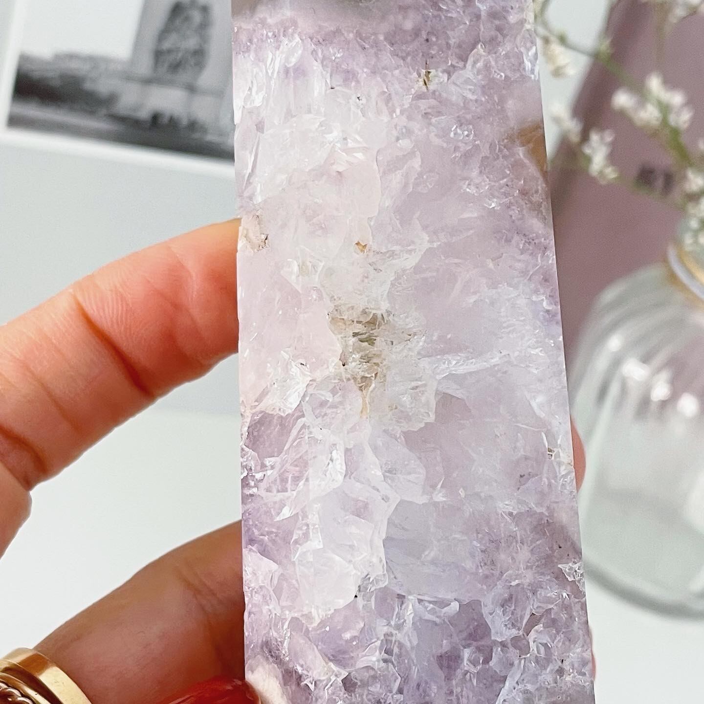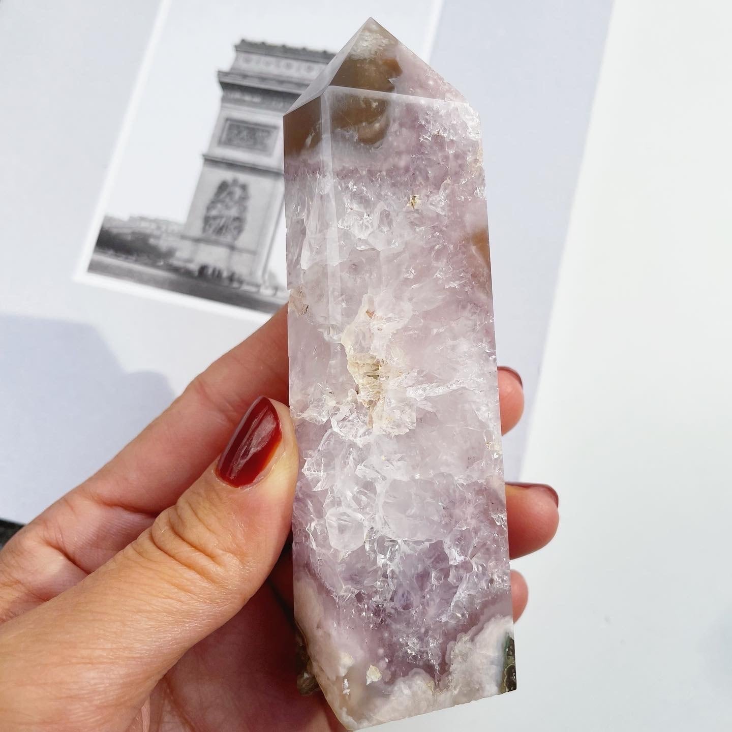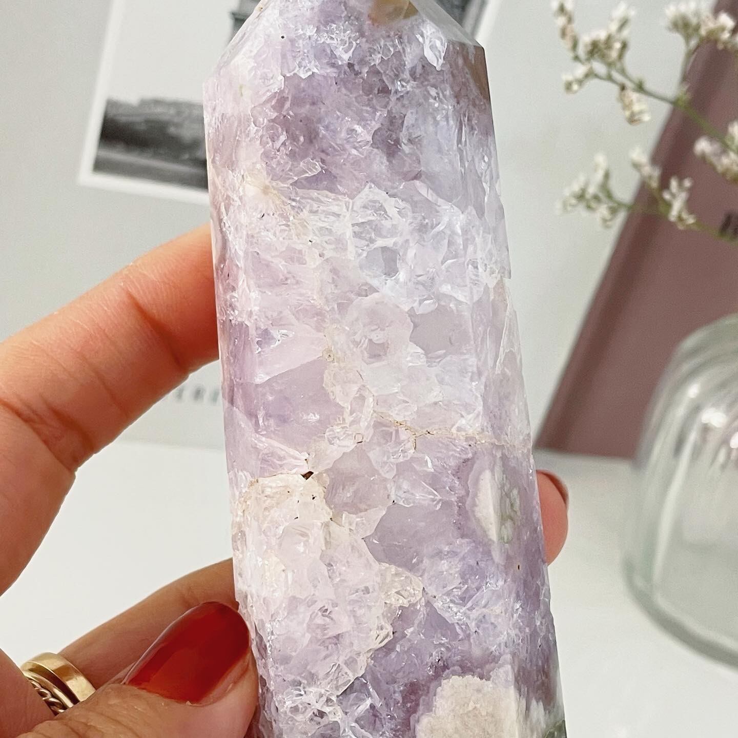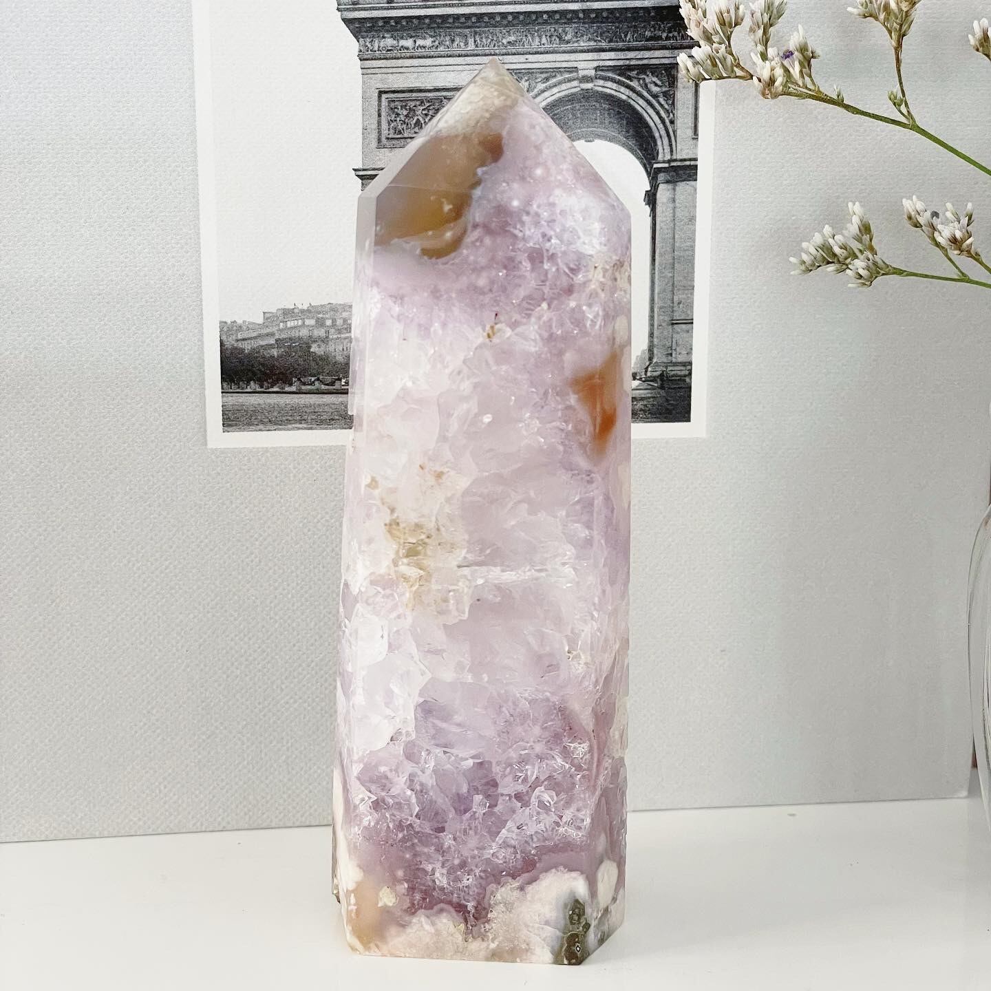 アメジストとフラワーアゲートが共生している珍しいポイント。