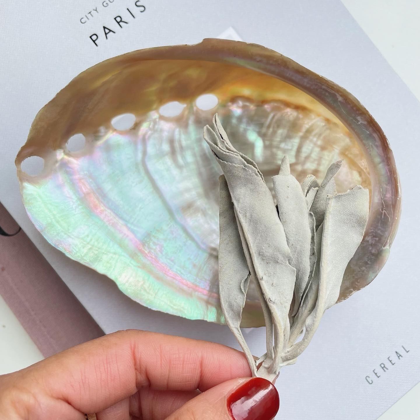 そのまま天然石を入れて飾っても素敵ですし、セージを焚く受け皿としても♡