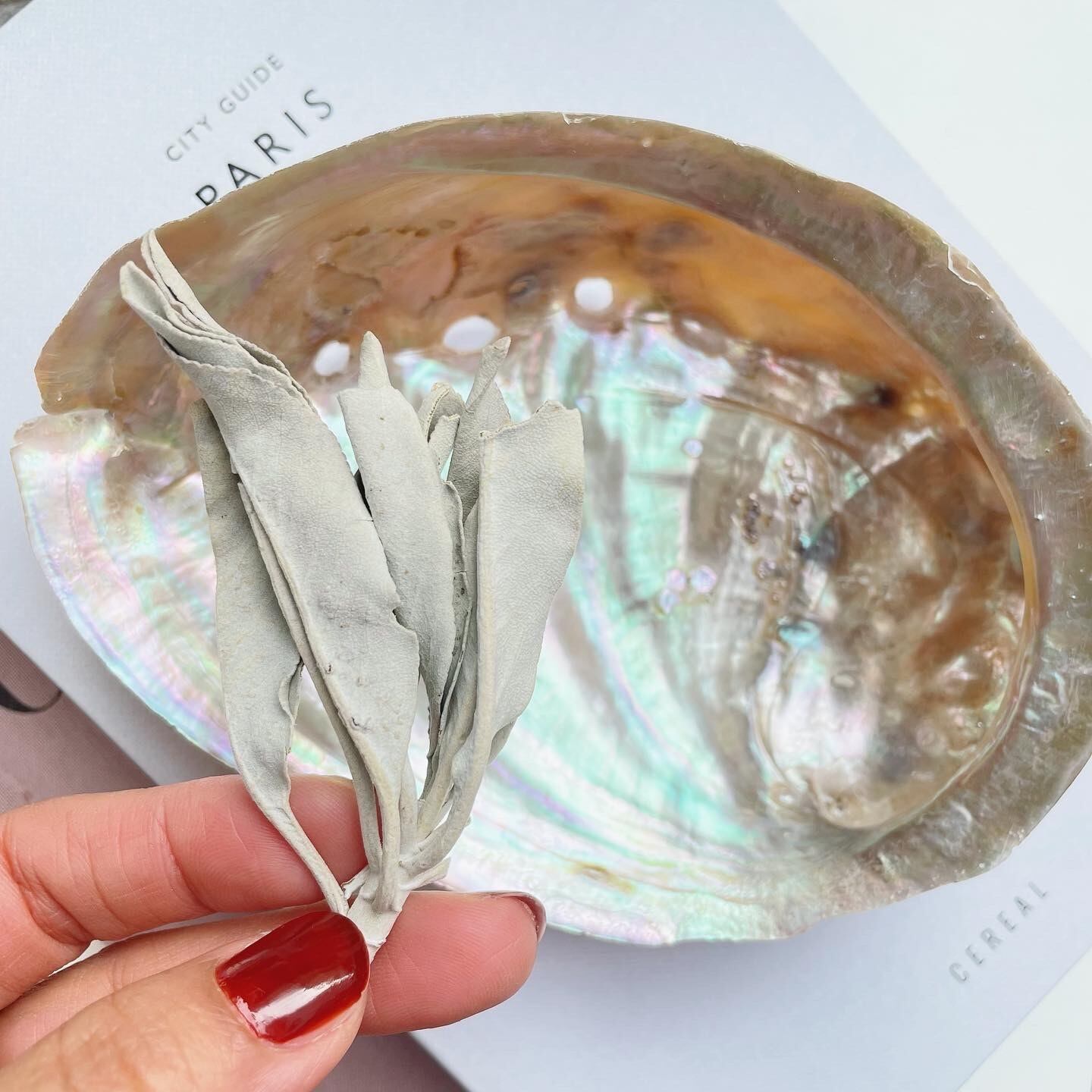 そのまま天然石を入れて飾っても素敵ですし、セージを焚く受け皿としても♡