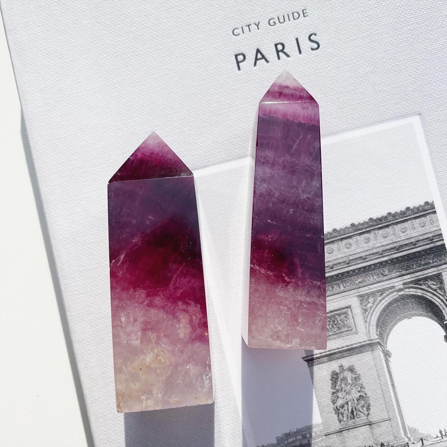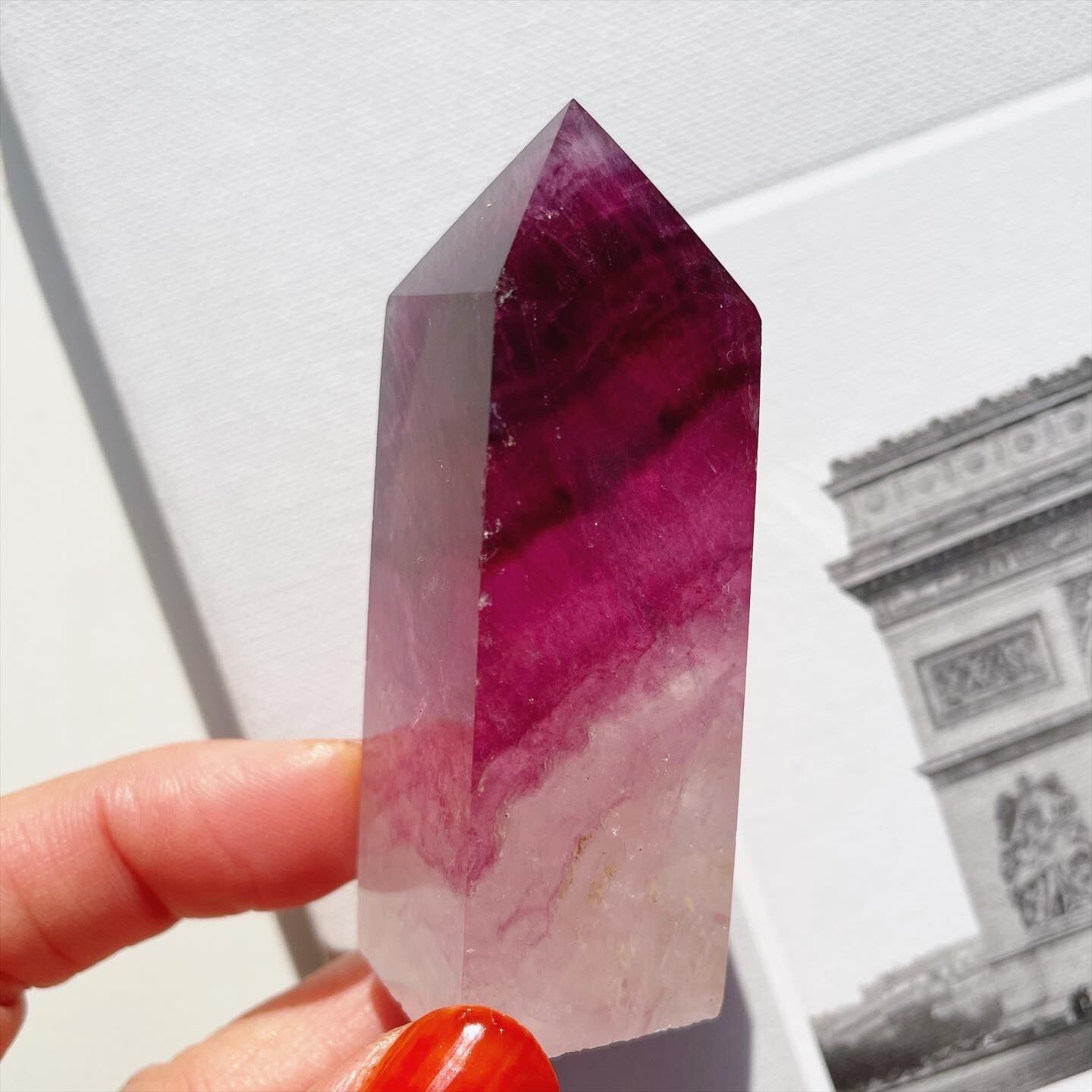 濃いめのマゼンダ〜ホワイトへのグラデーションが美しいフローライト。