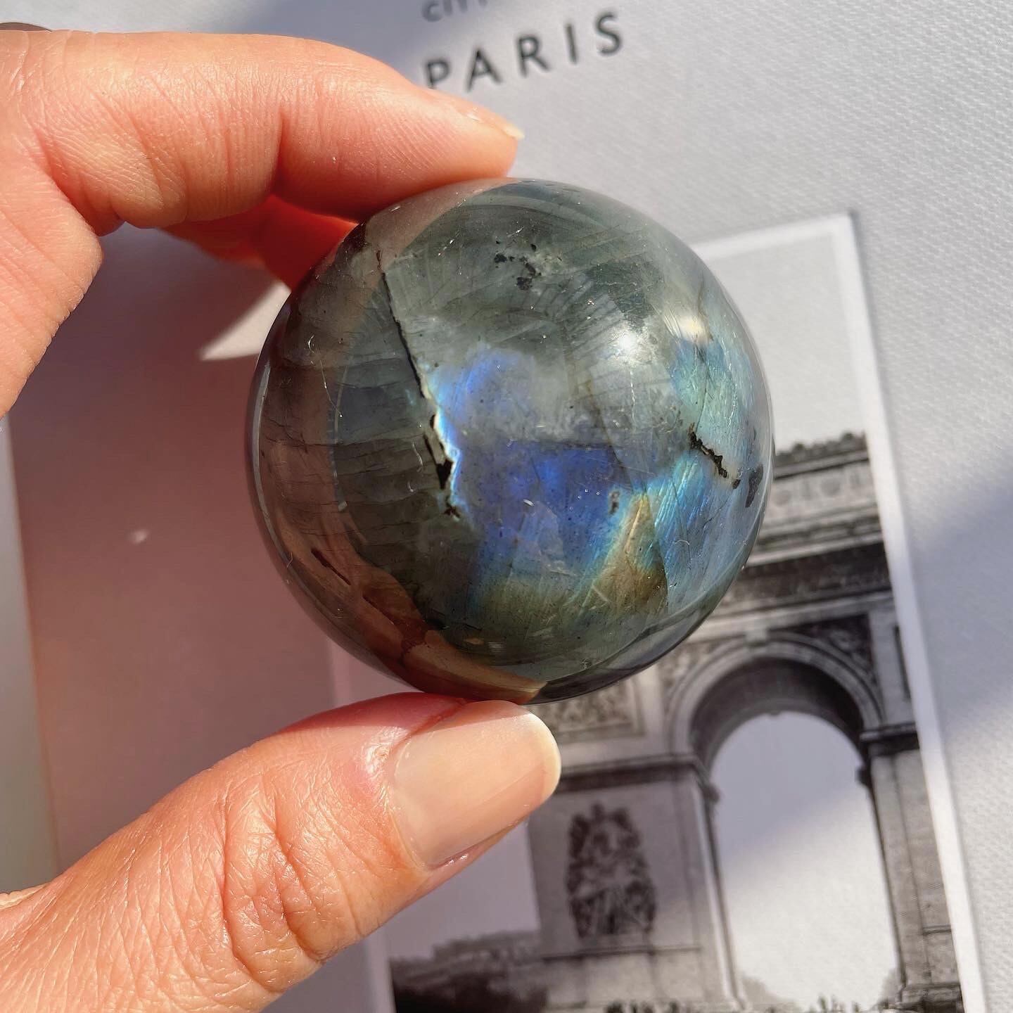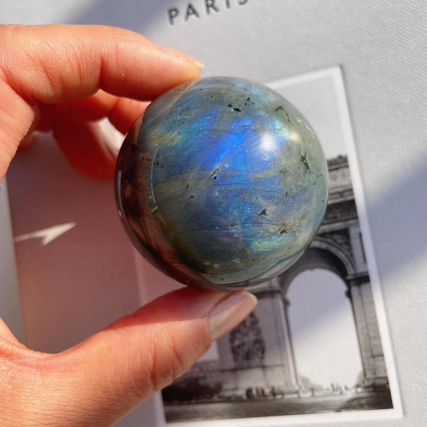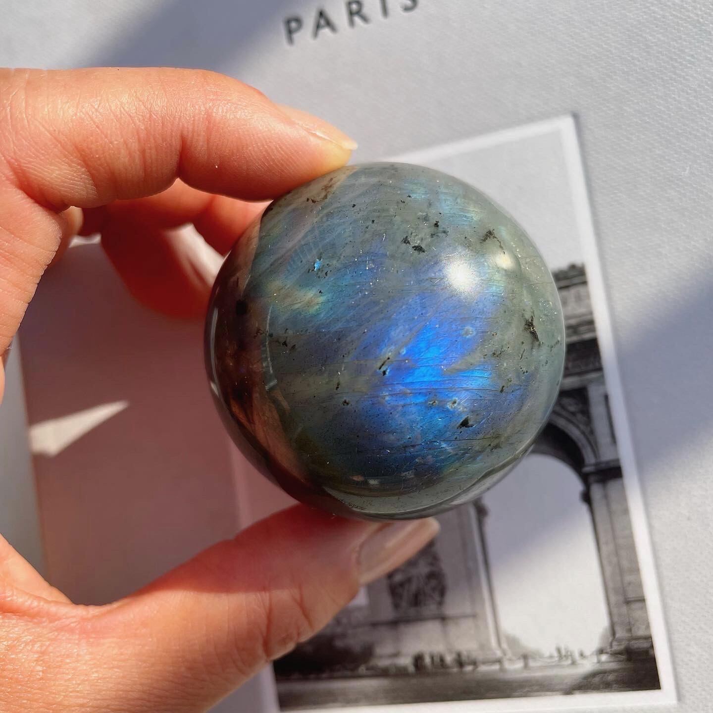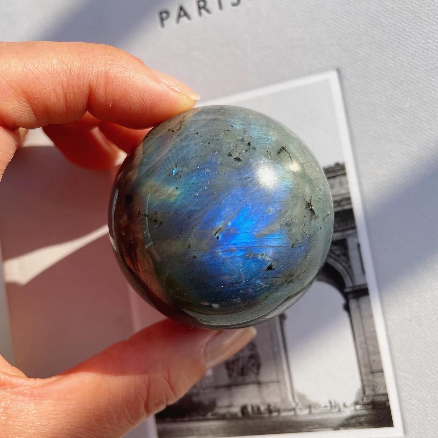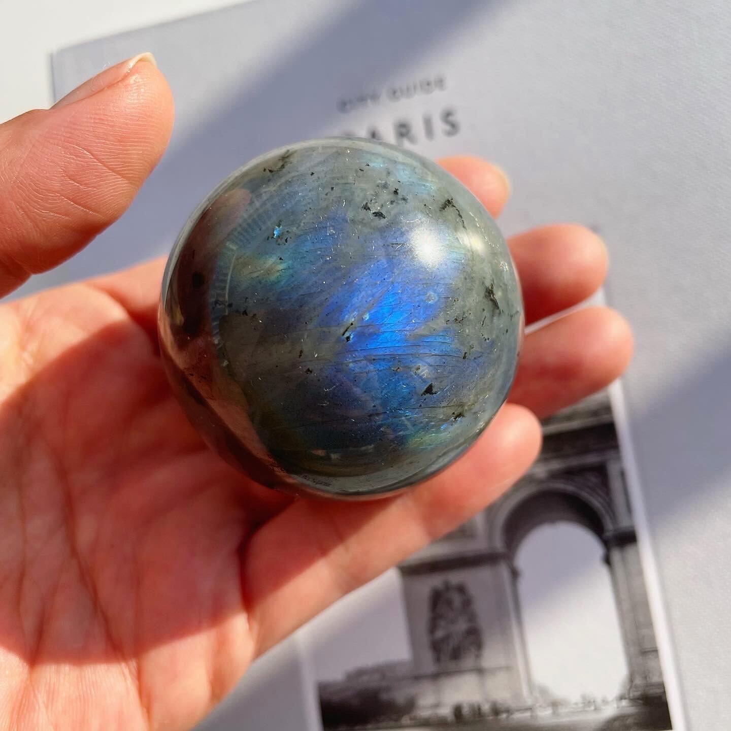 グレイに青いシラーがしっかりと入った、神秘的で新月のようなスフィア。