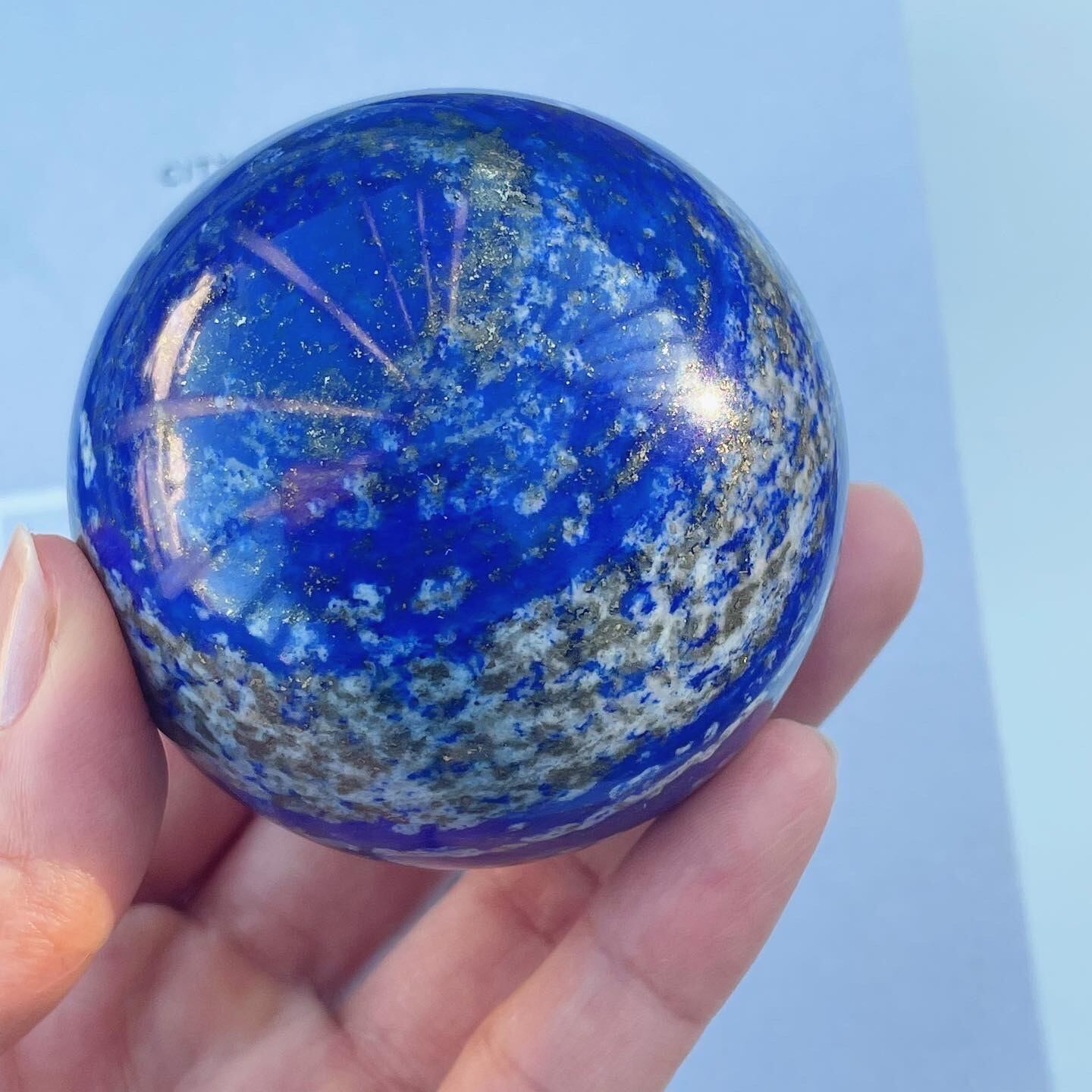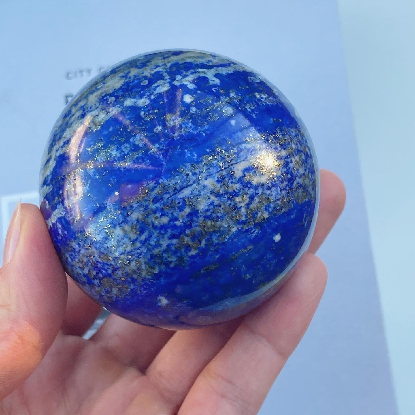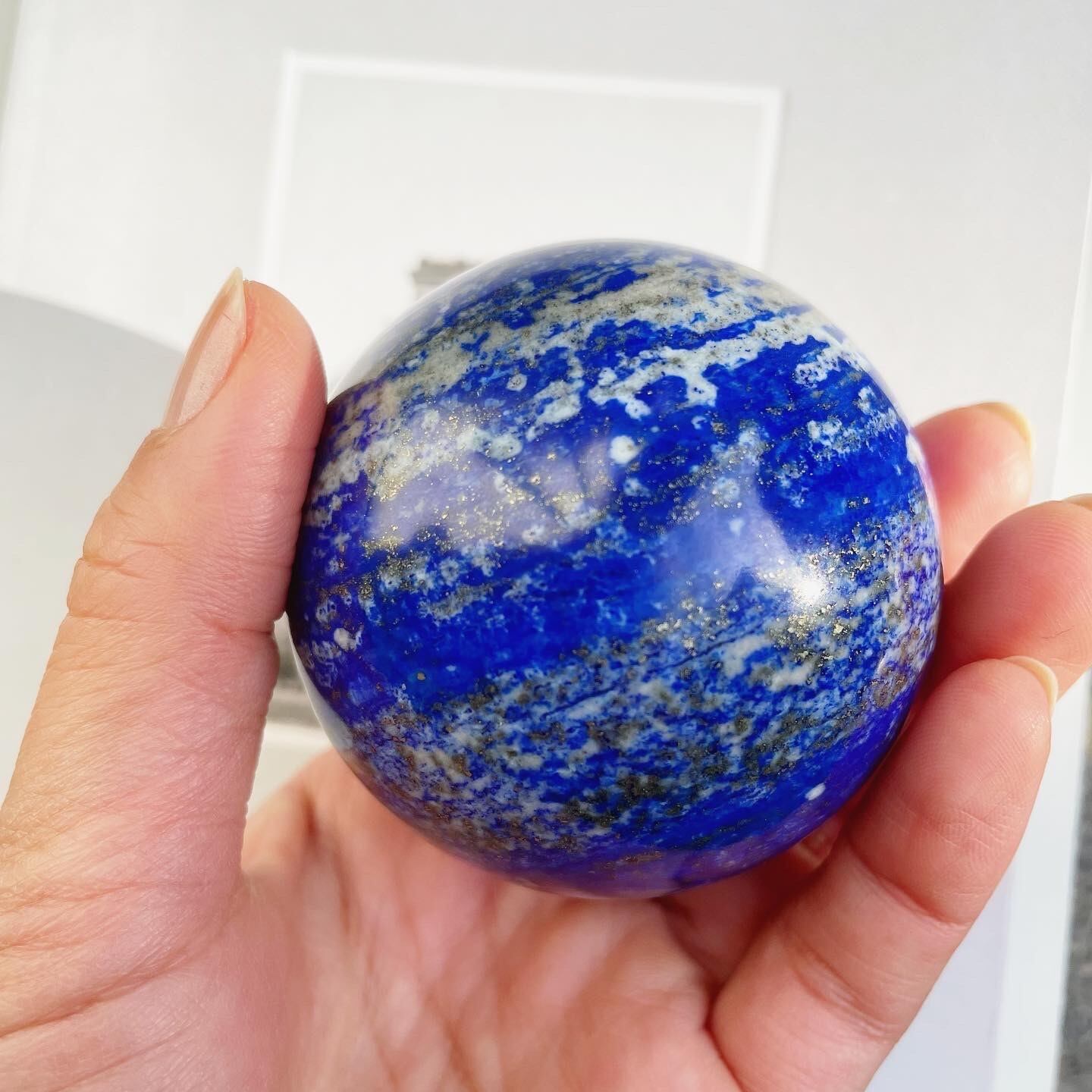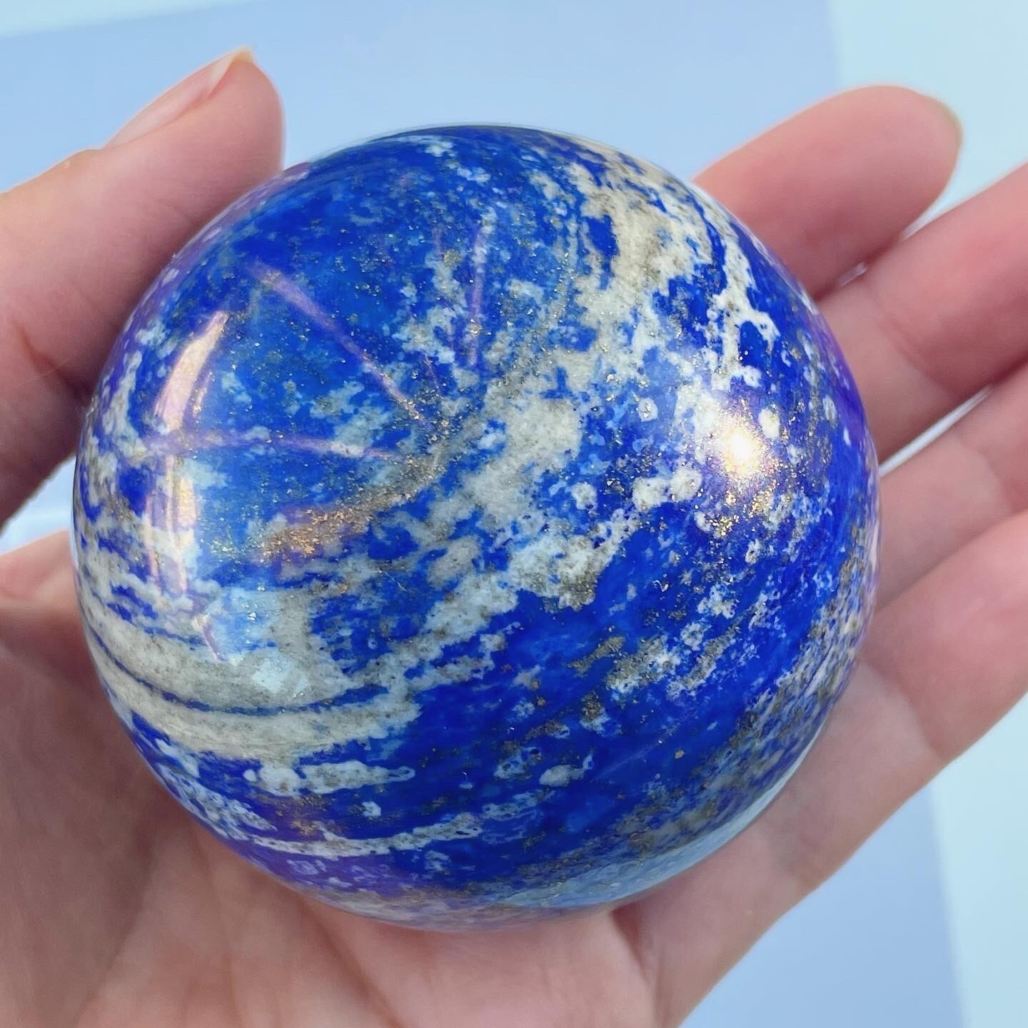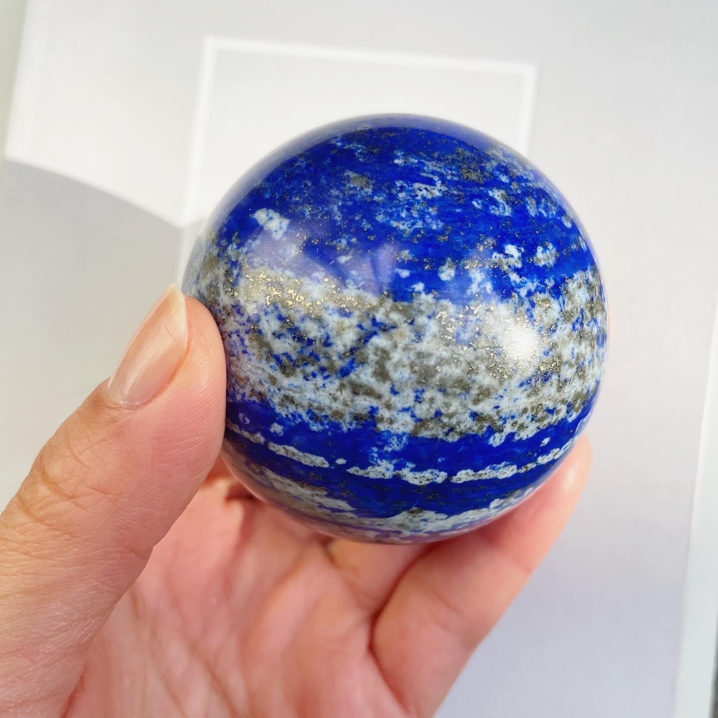 鮮やかな発色。深いブルーの中に、ライン上に入るホワイトとパイライトのコントラストが映えるラピスラズリ♡