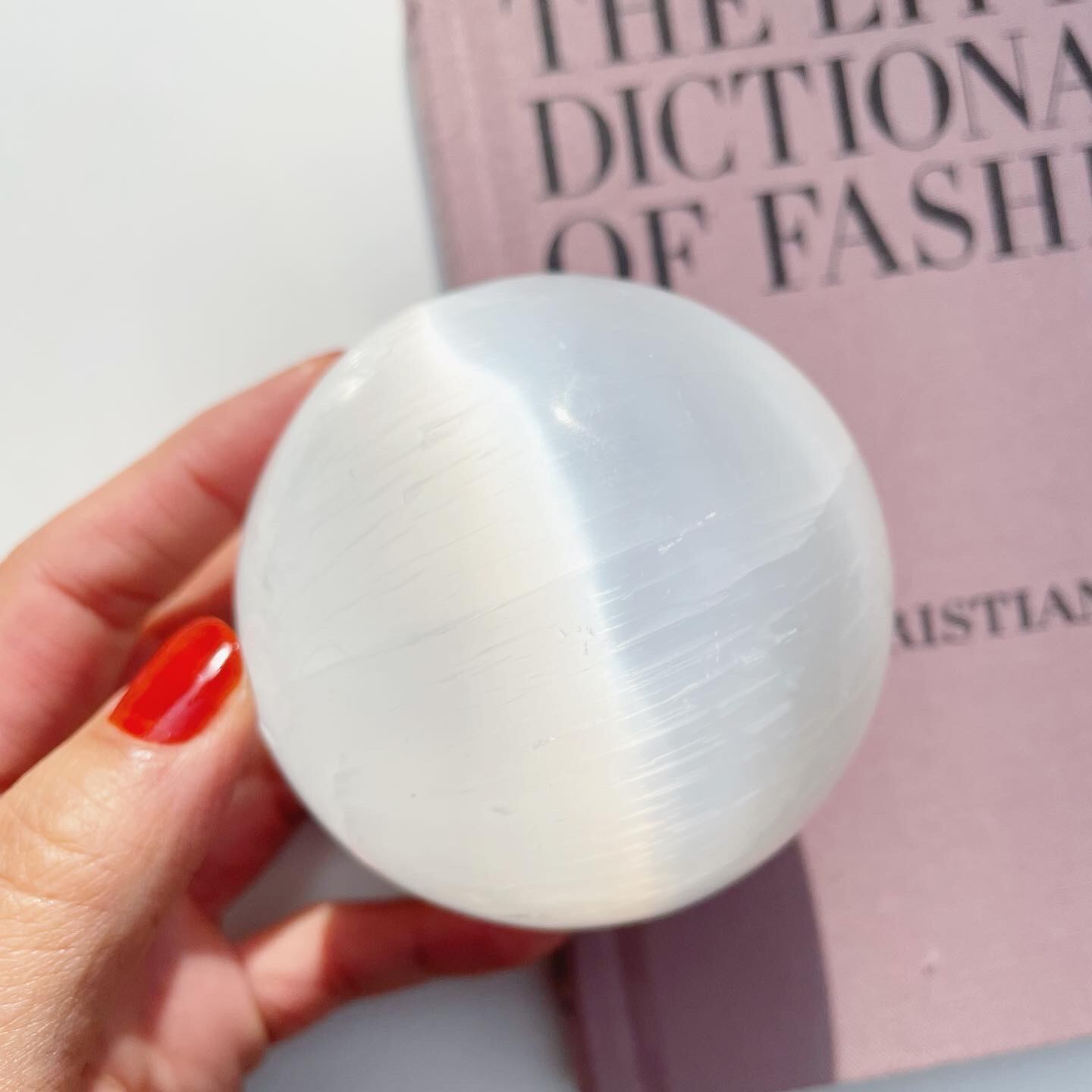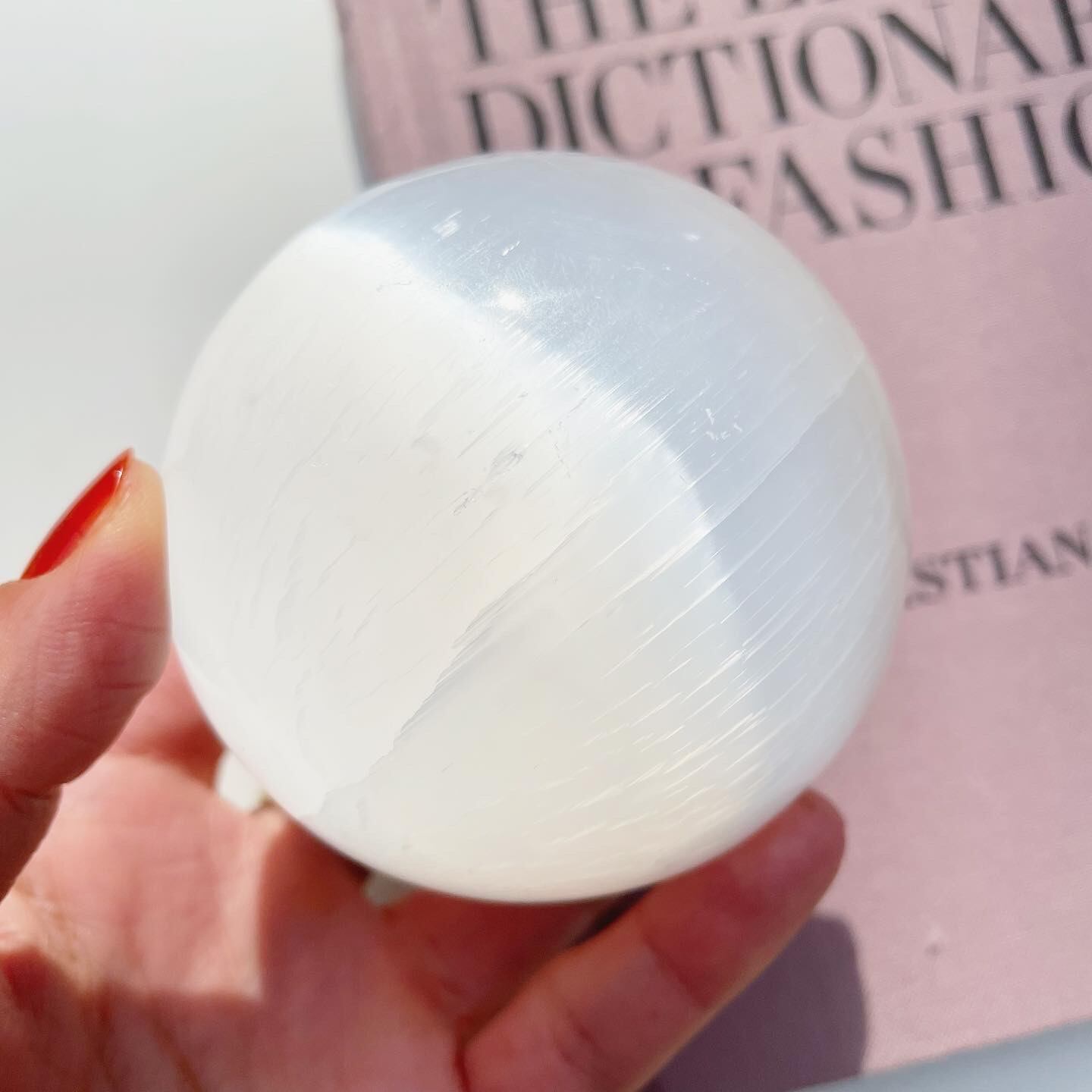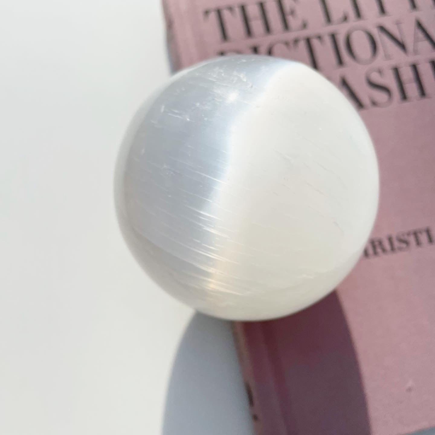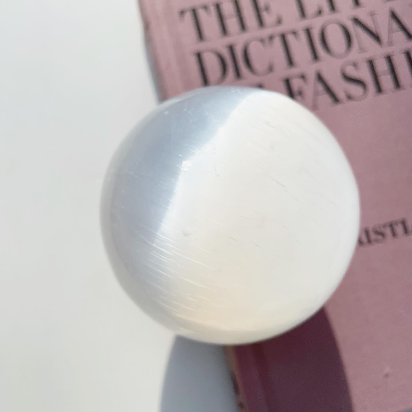 光のラインが印象的なフルムーン。 セレナイトの大きめスフィアです♡