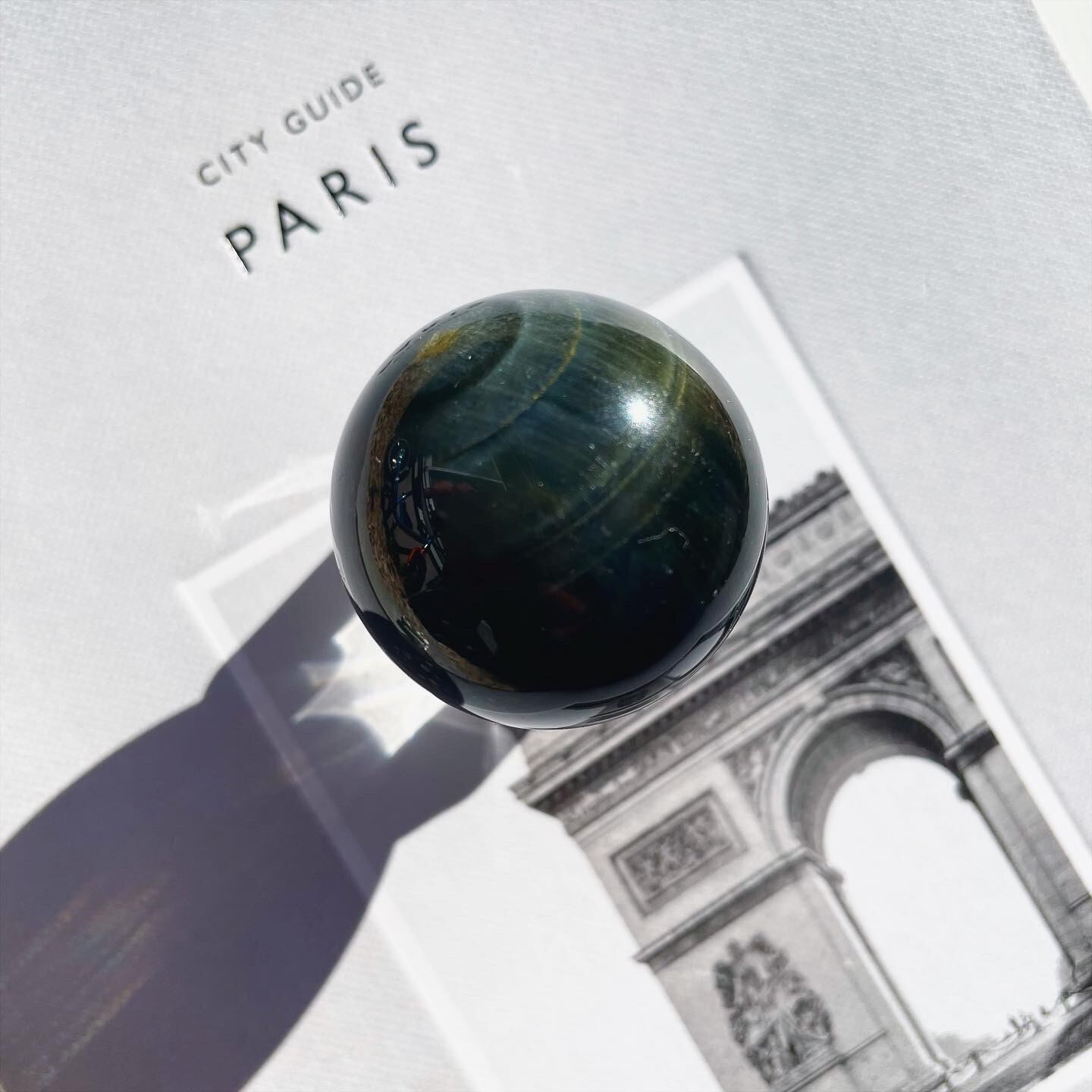 一見するとブラックのスフィアですが、角度によって、ハッとするような煌めきをみせてくれます。