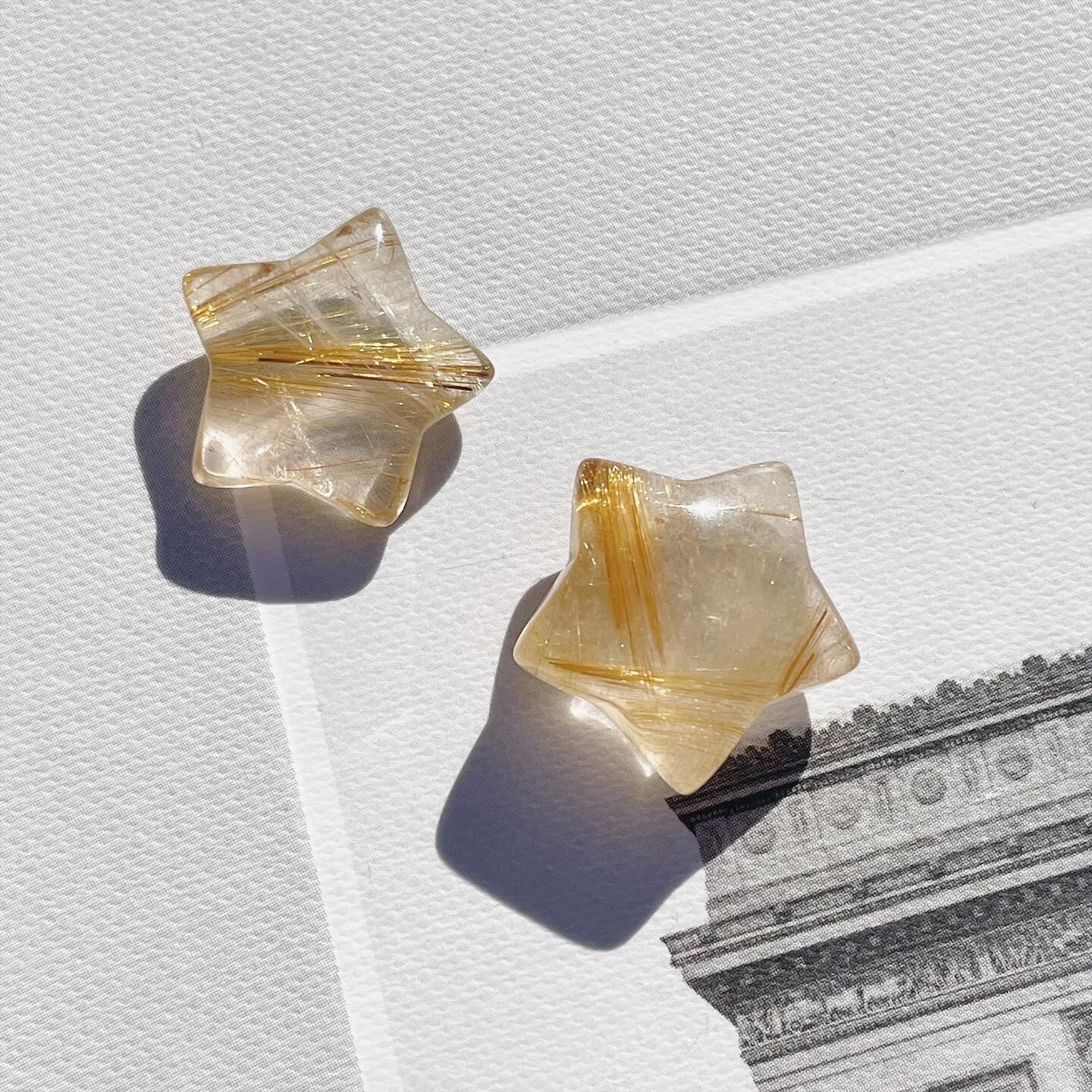 ブラジル産、クリアな星型のボディに、ゴールドルチルが入ります。