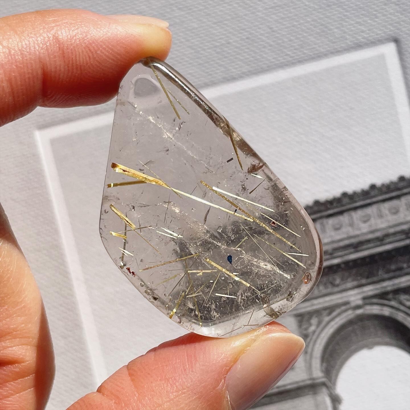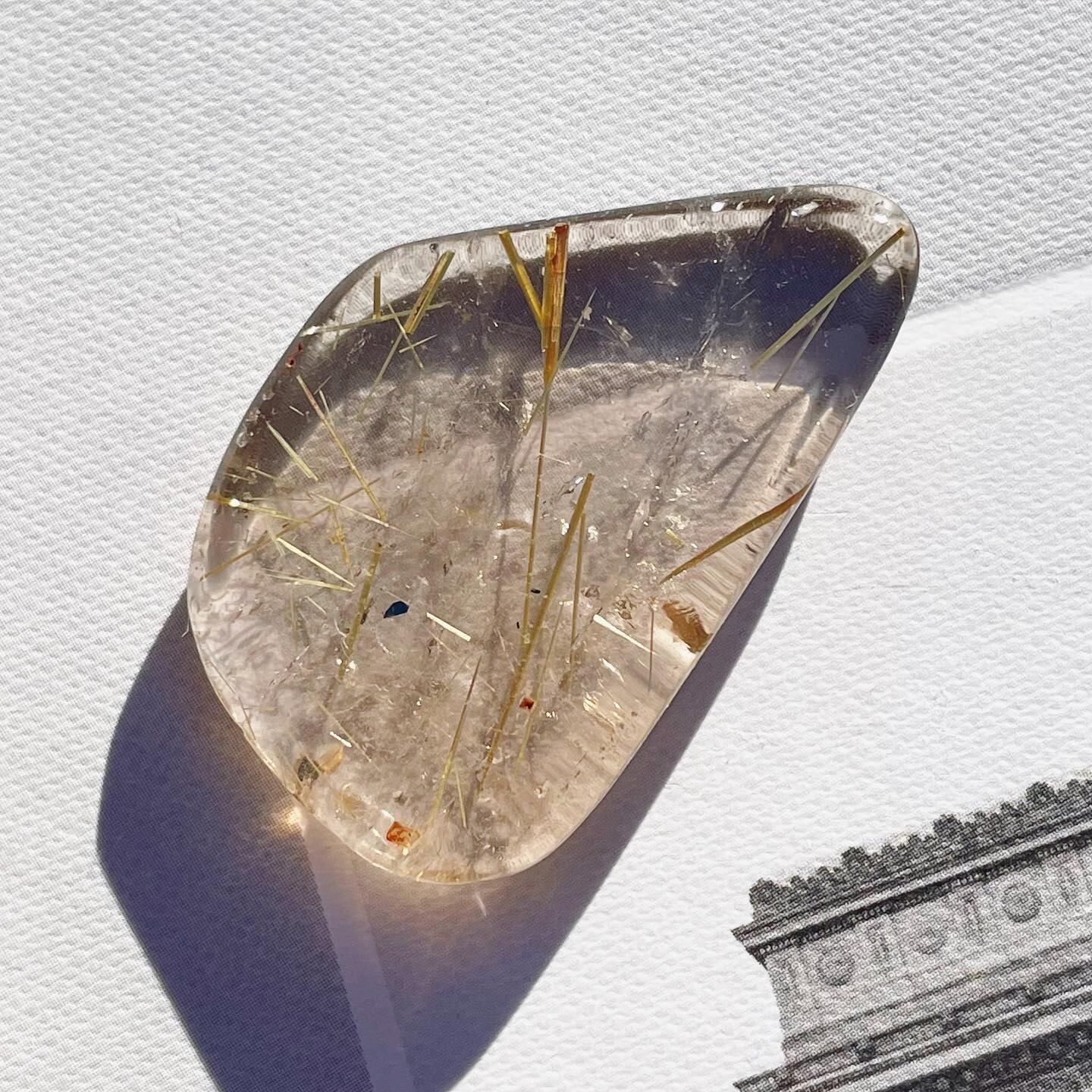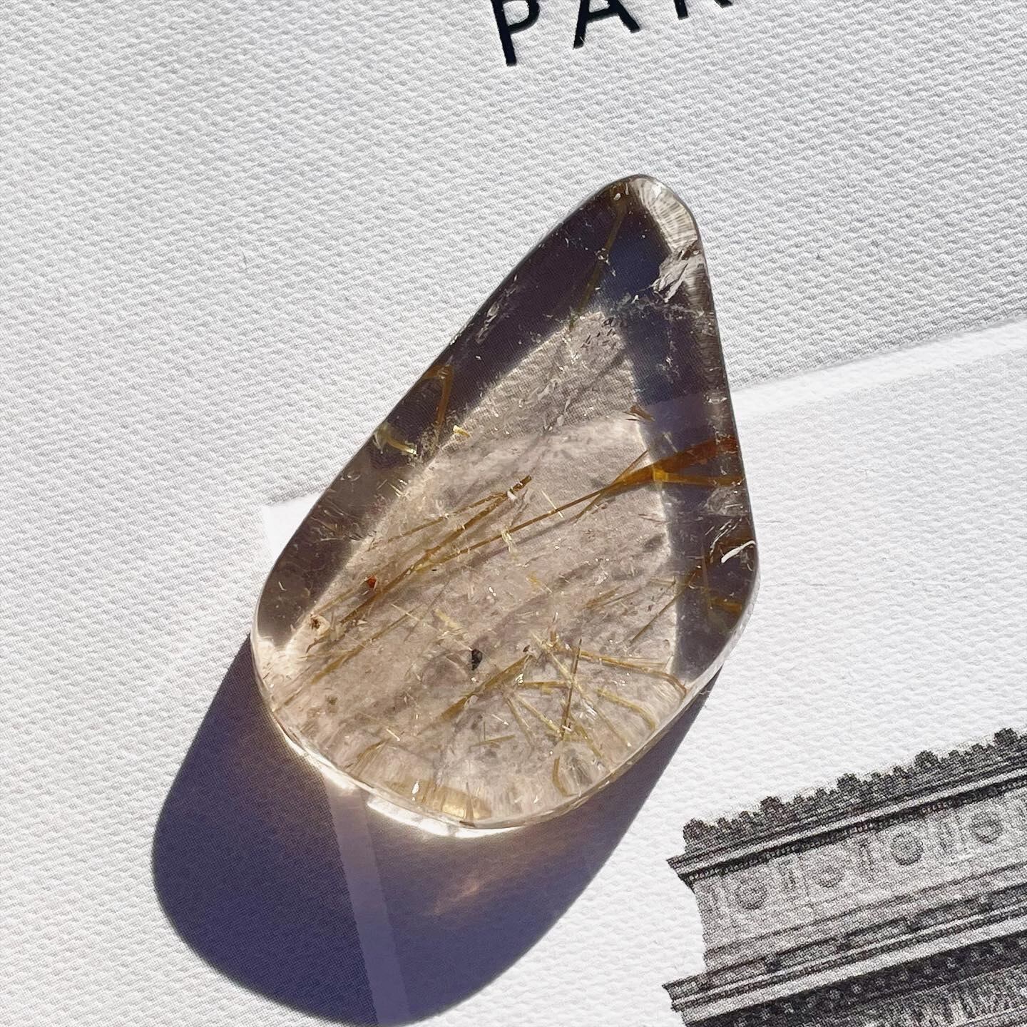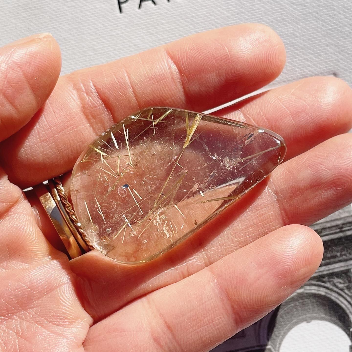 スモーキークオーツにゴールドルチルが散りばめられています。