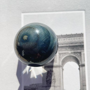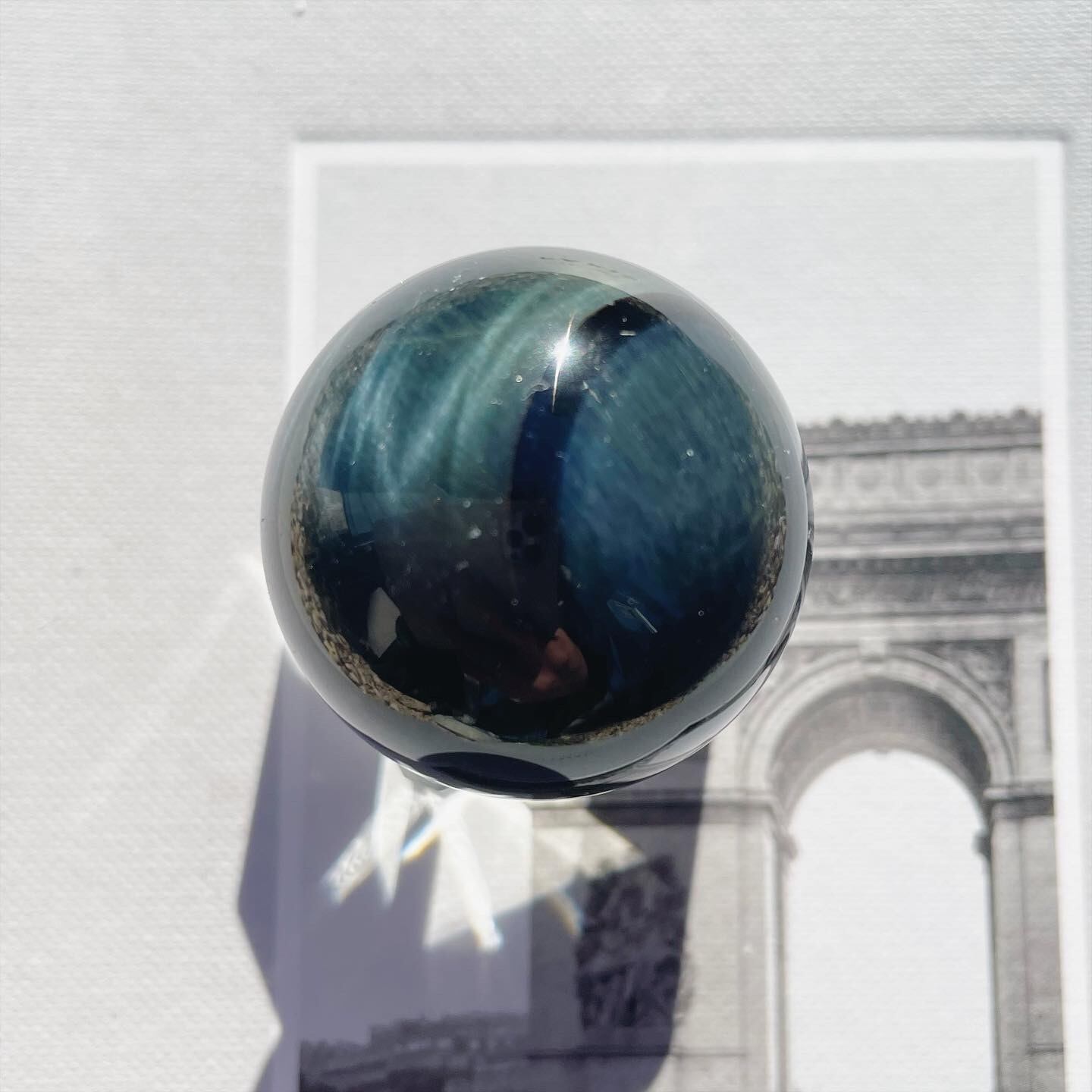 一見するとブラックのスフィアですが、角度によって、ハッとするような煌めきをみせてくれます。