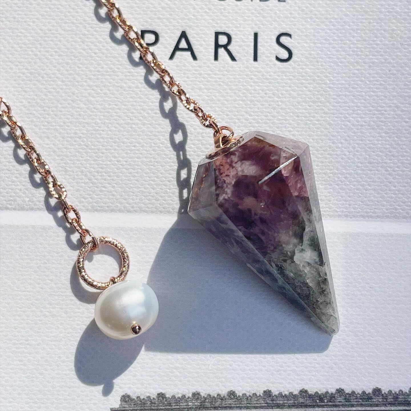 Fluxy特製、ピンクゴールドチェーンと淡水パールチャームがついた