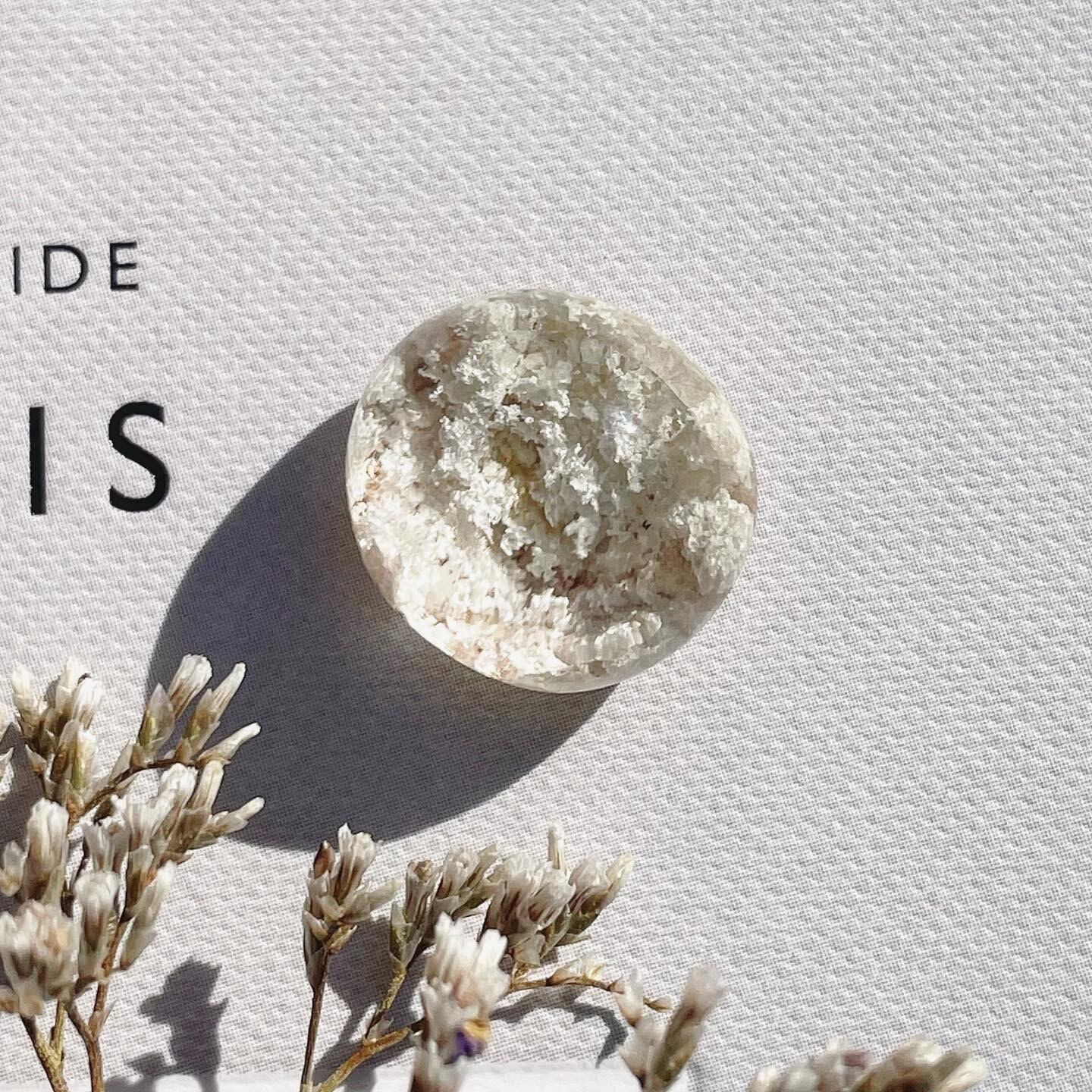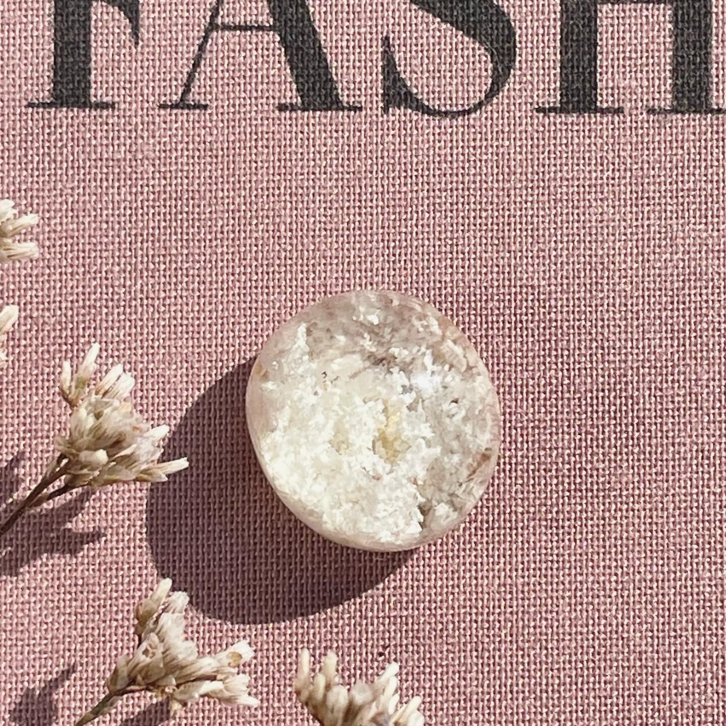 表は真っ白に少しだけイエローが入り、裏には淡いピンク。柔らかな色味のホワイトガーデンクオーツ♡
