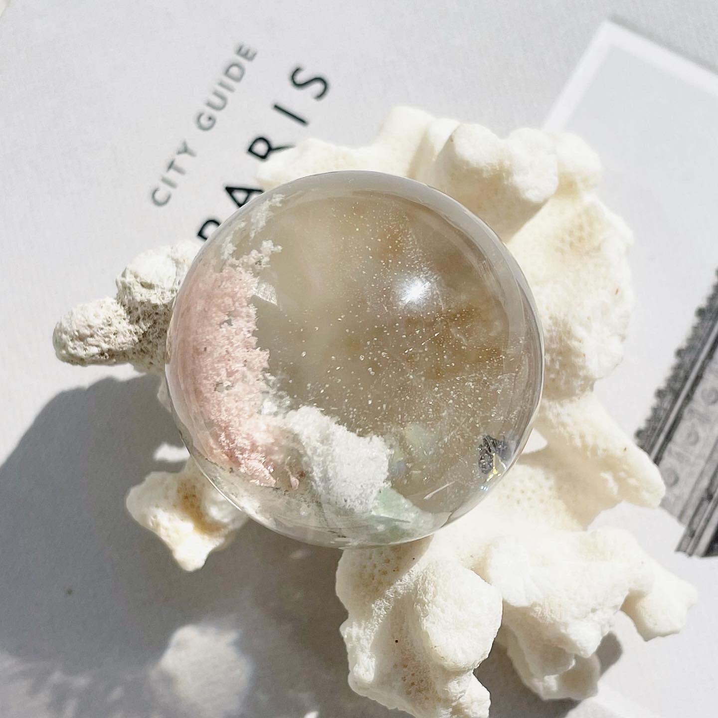 柔らかいピンク、ホワイト、グリーンの美しいカラーのインクルージョンに、