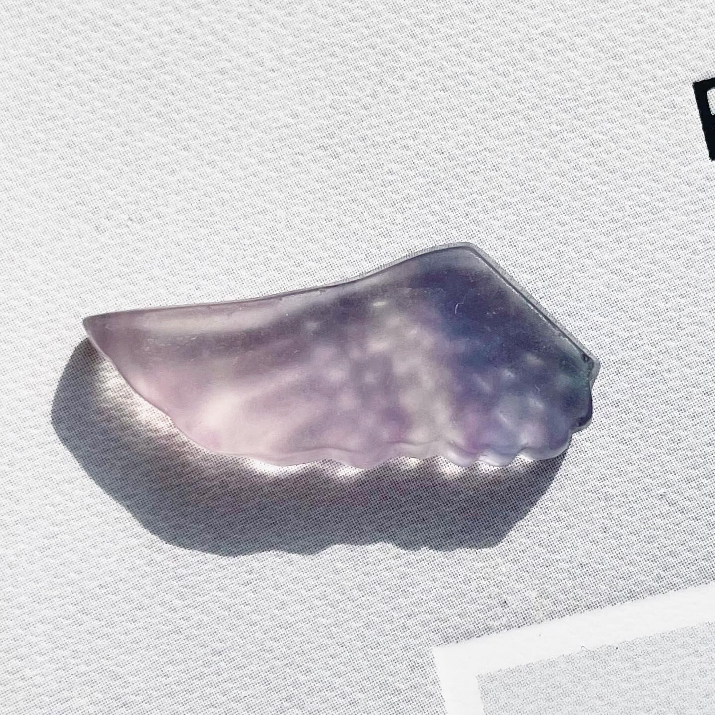 繊細なカーヴィングと、フローライト特有の色の層がとても可愛らしいピース。
