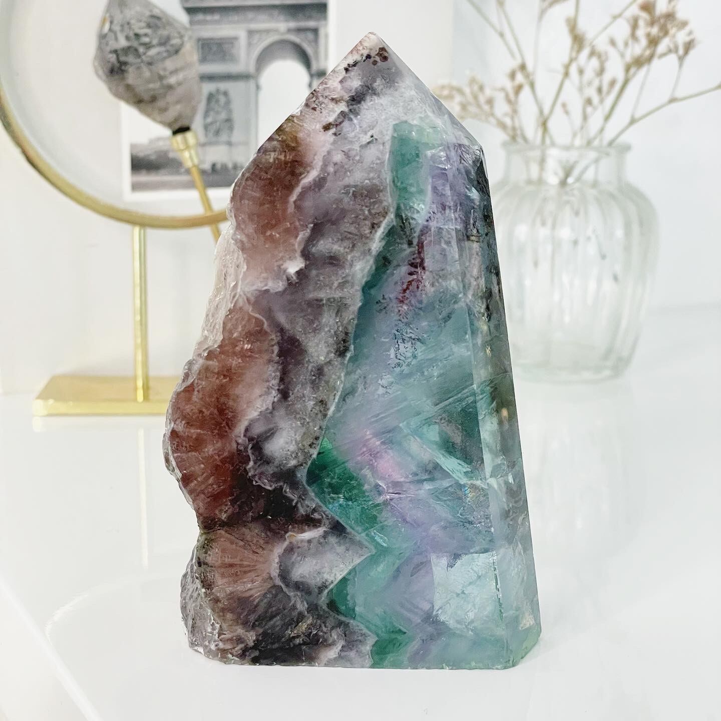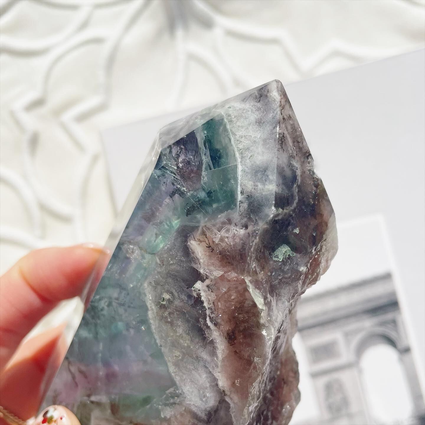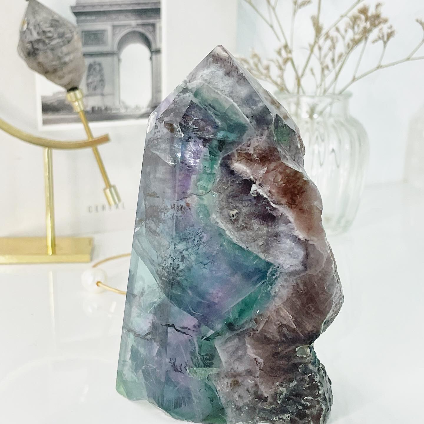 インクルージョンがこの様に植物のような美しい模様を作り出すこと自体も希少ながら、透明度の高い美しいフローライトに含有されるものは大変稀です。